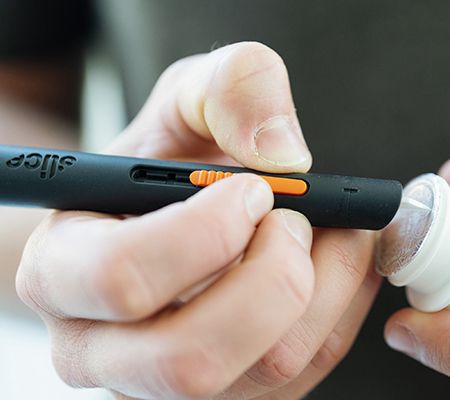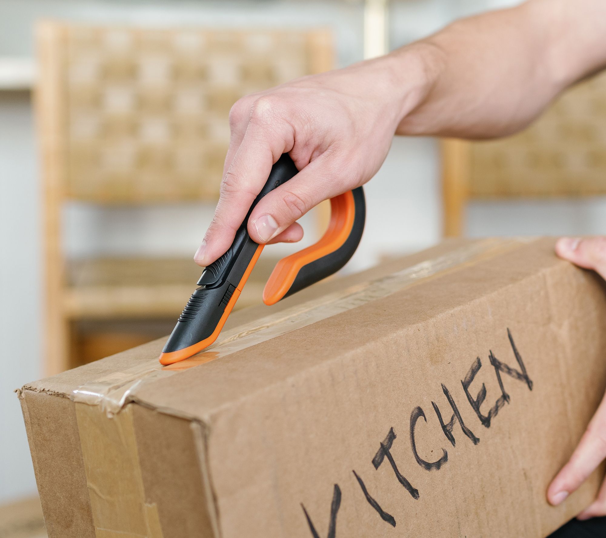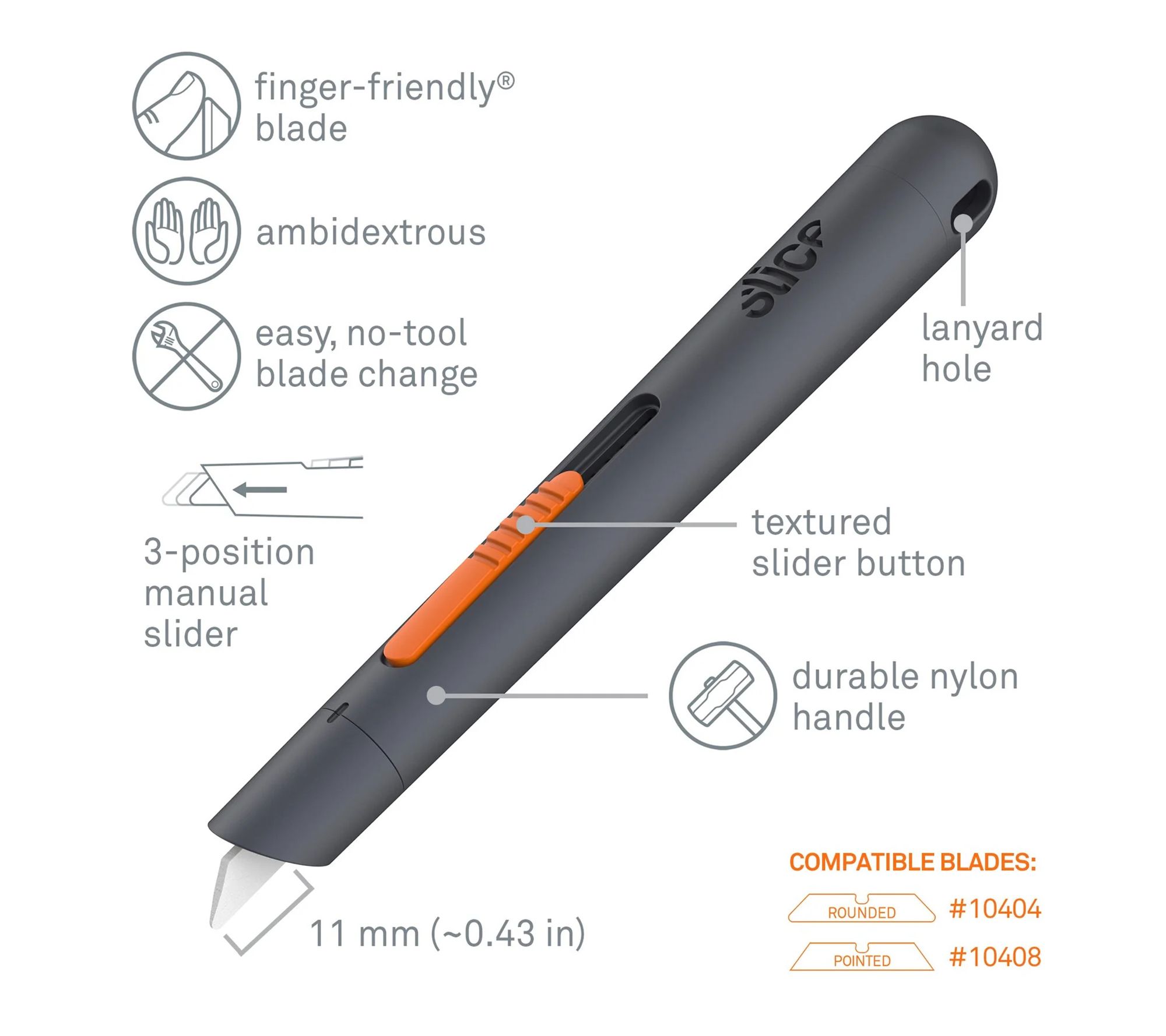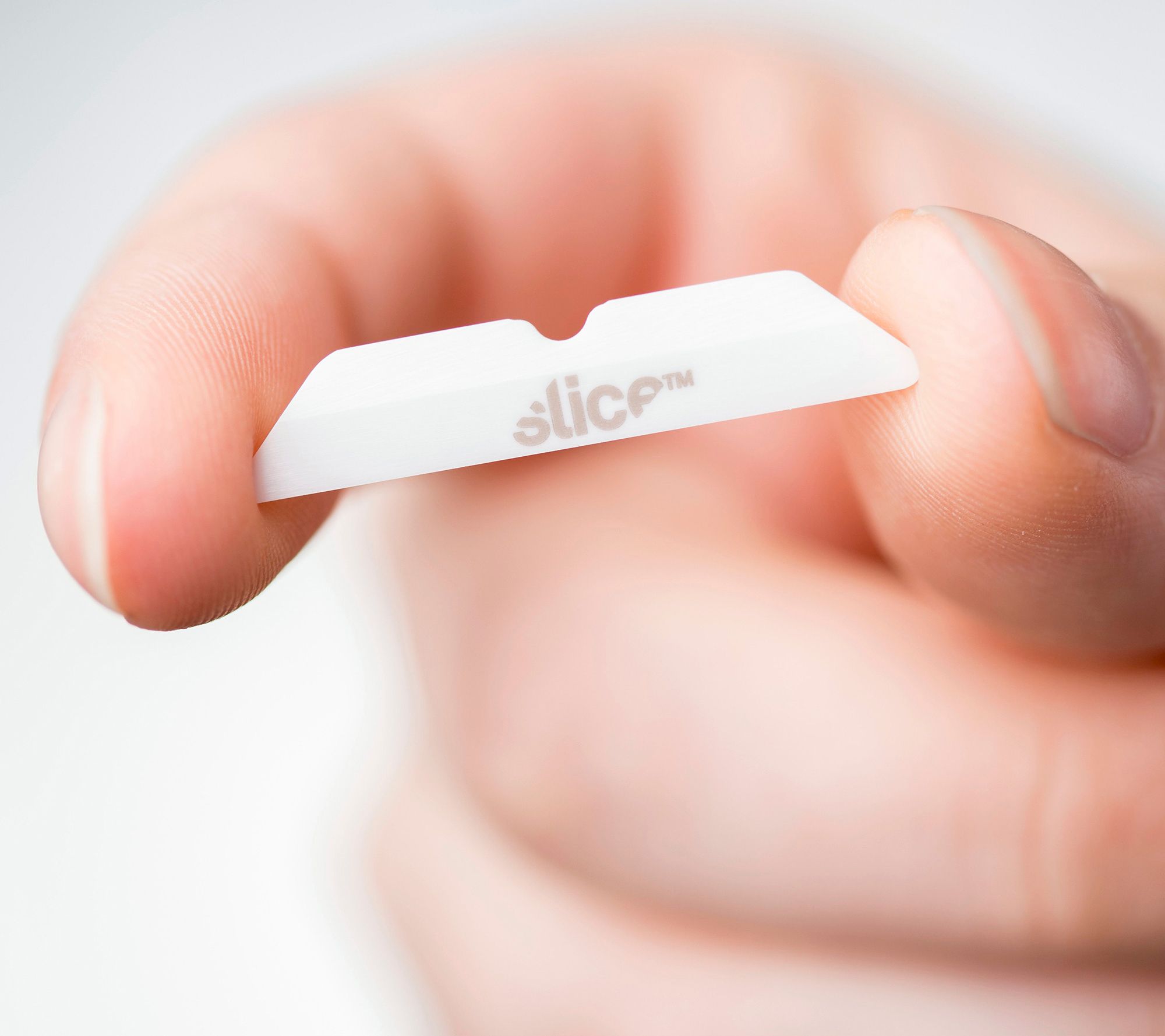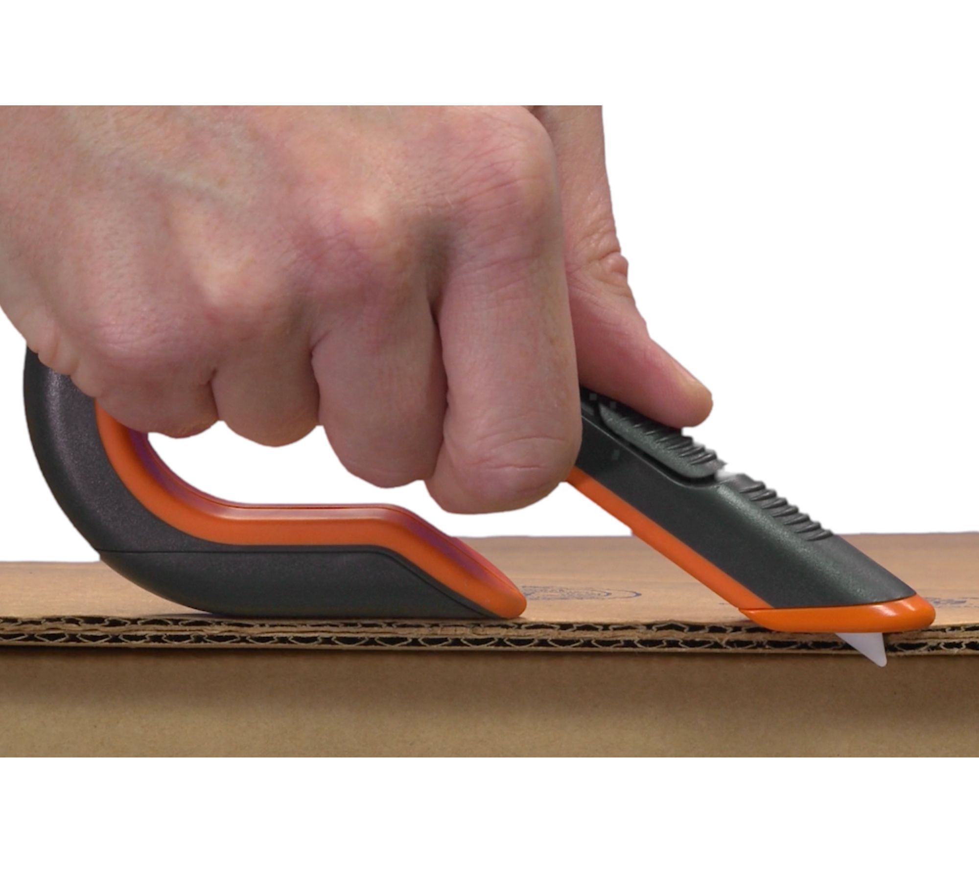 A convenient tool for tackling cardboard boxes, thick mailers, and tough clamshells, this set of two ceramic box and pen cutters features a J-shaped handle that provides comfort and control and a slim silhouette that easily slips into pockets and purses. From Slice.