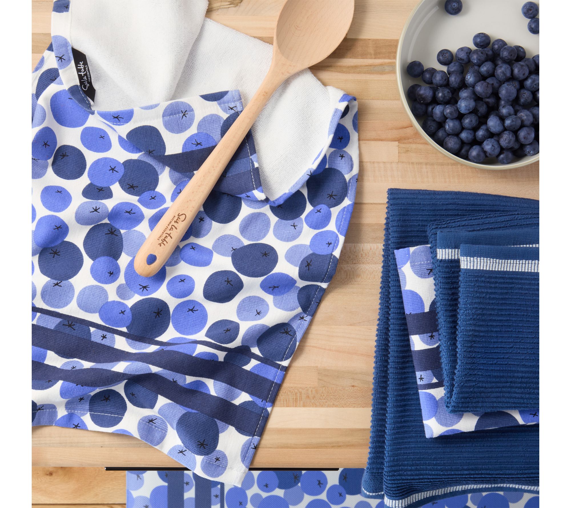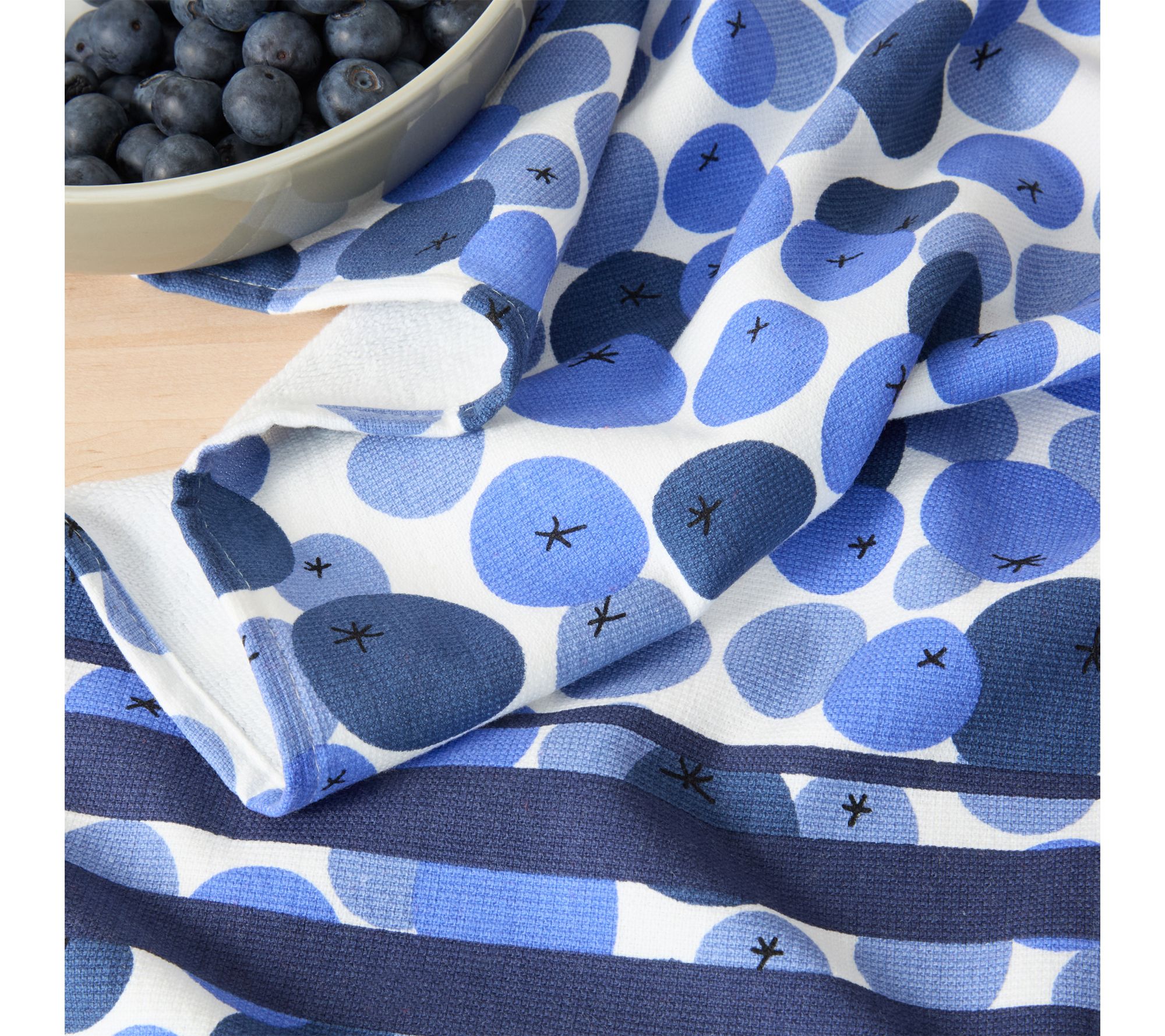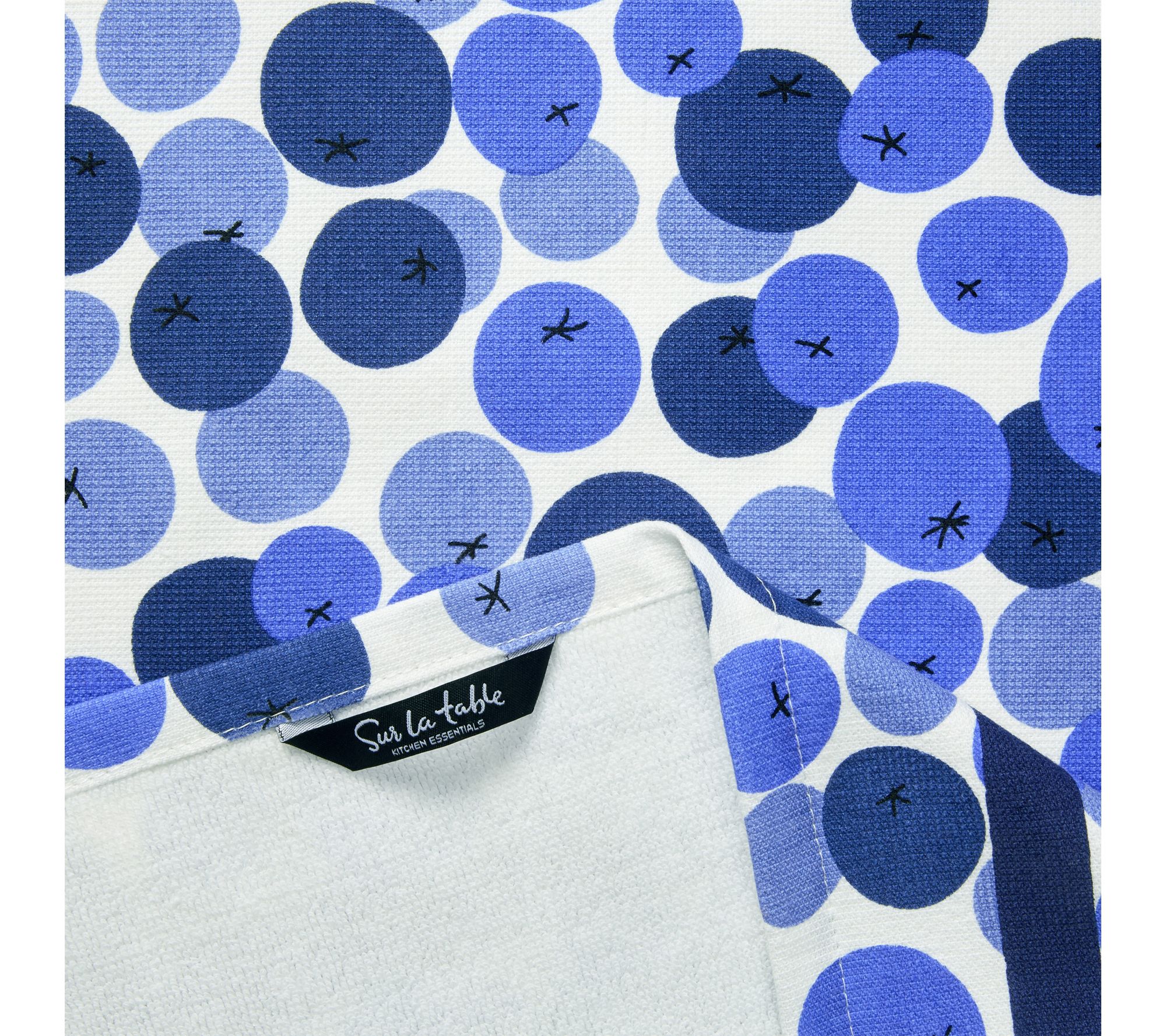 Add color and charm to daily kitchen chores with the Fresh Blueberries cotton kitchen towel set. Whether you're drying dishes after a family meal or wiping up spills during weekend baking, these soft towels offer reliable absorbency and style. Each towel features a convenient hang loop, so it's easy to grab when you need it most. From Sur La Table.