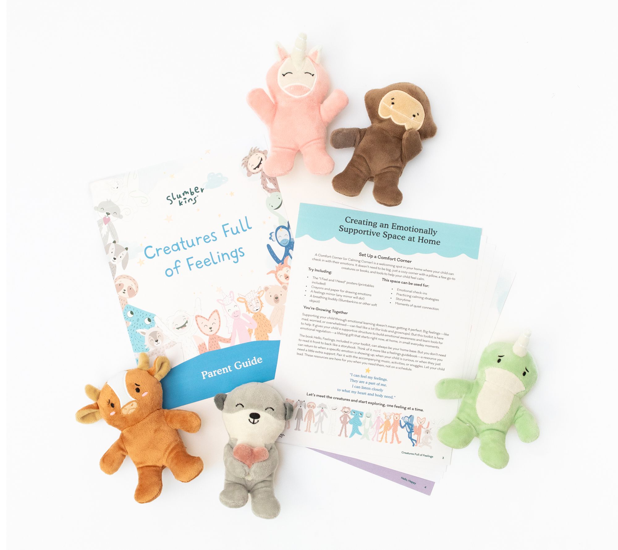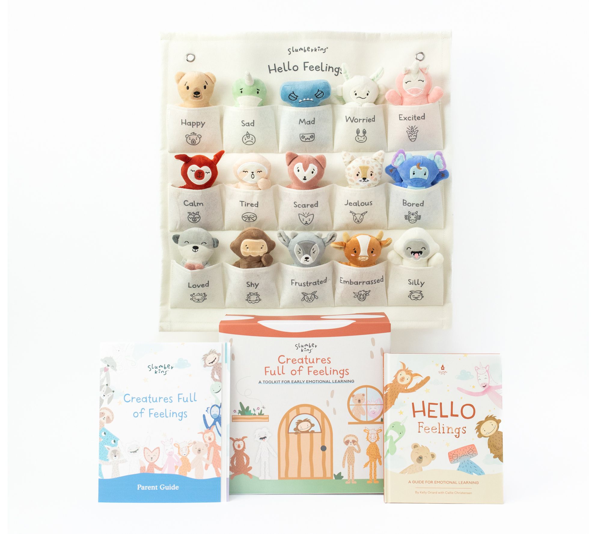 Ease emotional moments and encourage open conversations during playtime with this plush toolkit that features Slumberkins friends and a helpful hardcover book. With engaging characters, meaningful activities, and supportive guidance, it's a valuable resource for families aiming to nurture emotional growth and awareness through everyday connection. From Slumberkins.