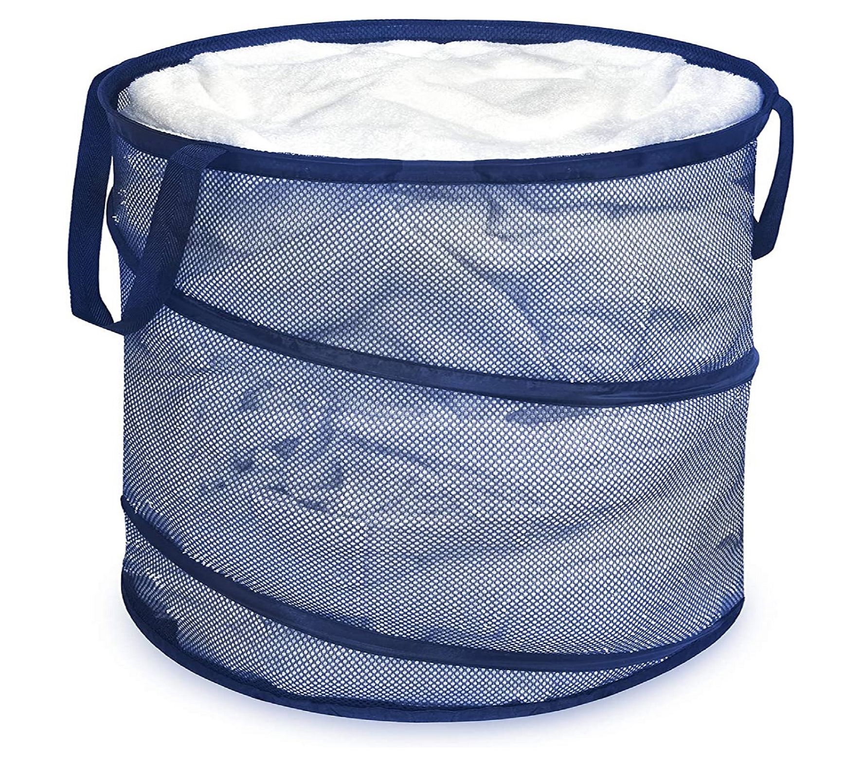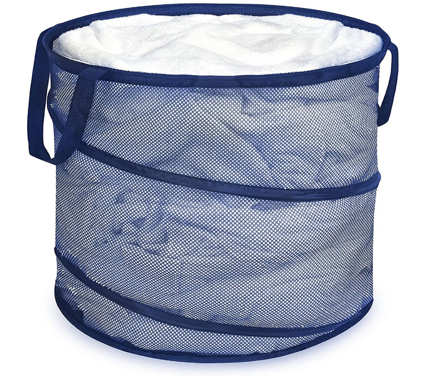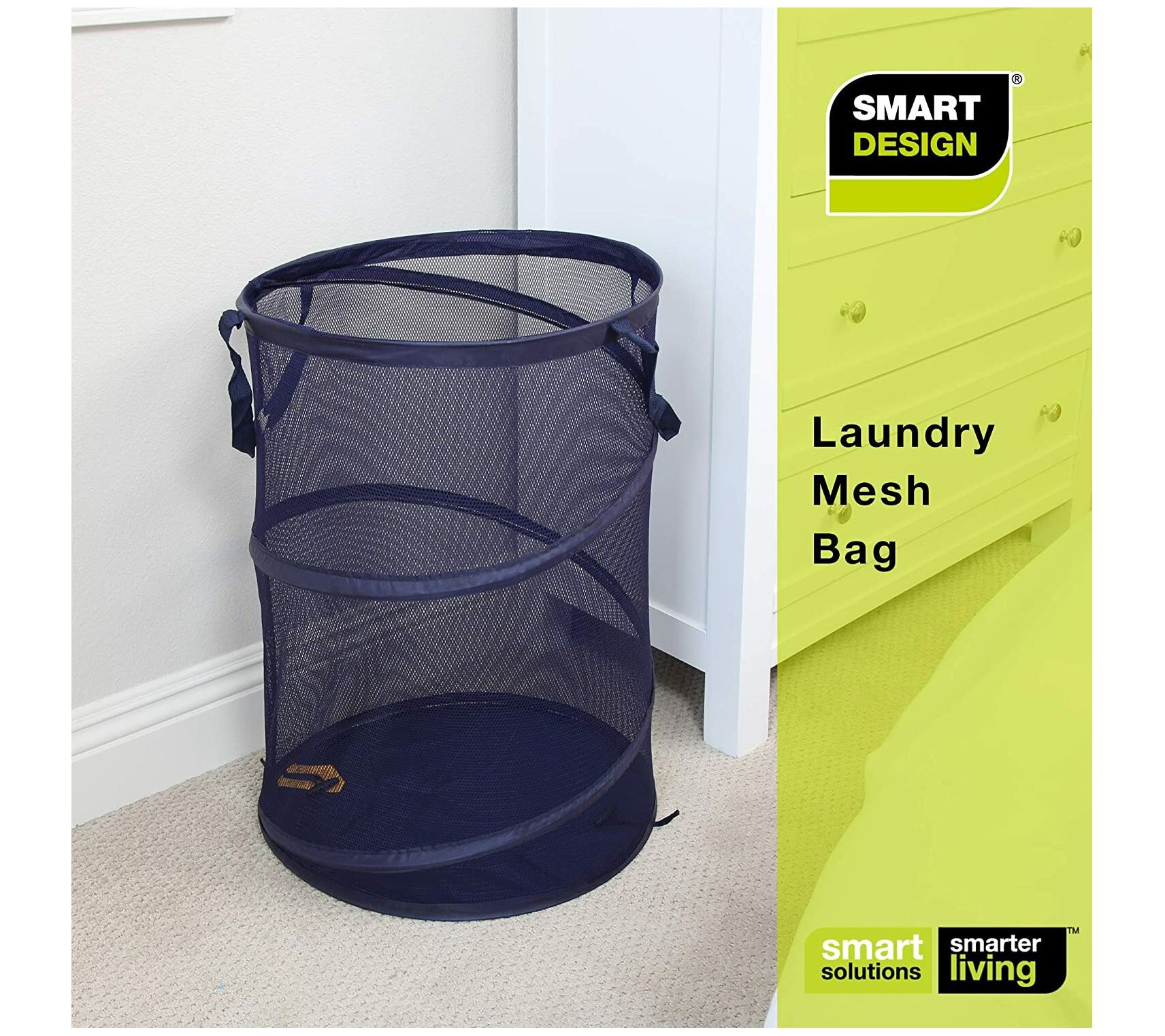 Keep laundry off the floor and organized in this mesh hamper that features a collapsible spiral design and convenient side handles for portability. From Smart Design.