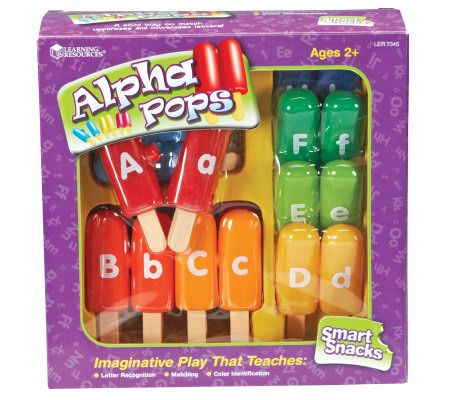 A cool way to learn the alphabet. Alpha Pops pair uppercase and lowercase letters. The colorful, double-sided pops include all 26 letters. From Learning Resources.