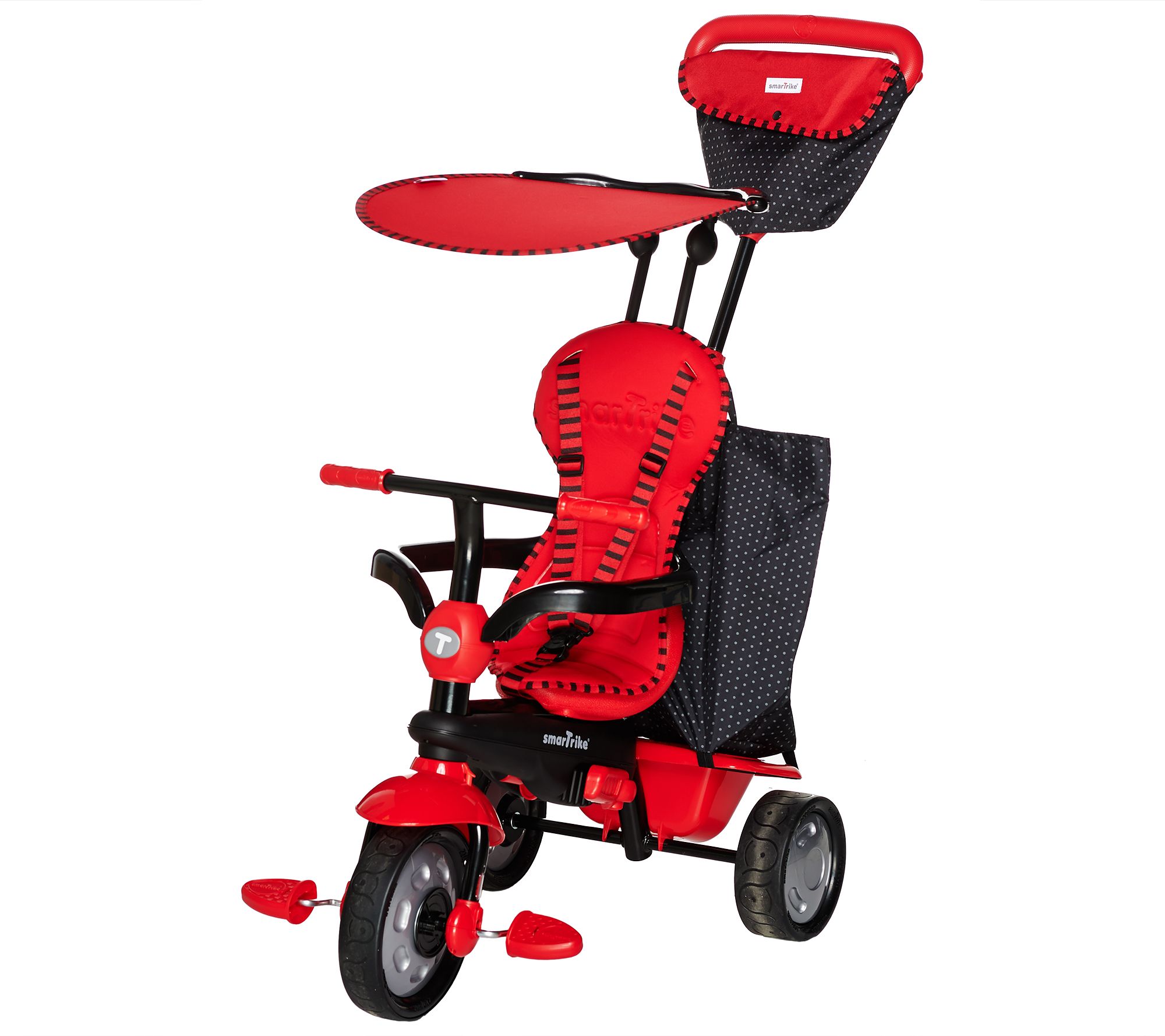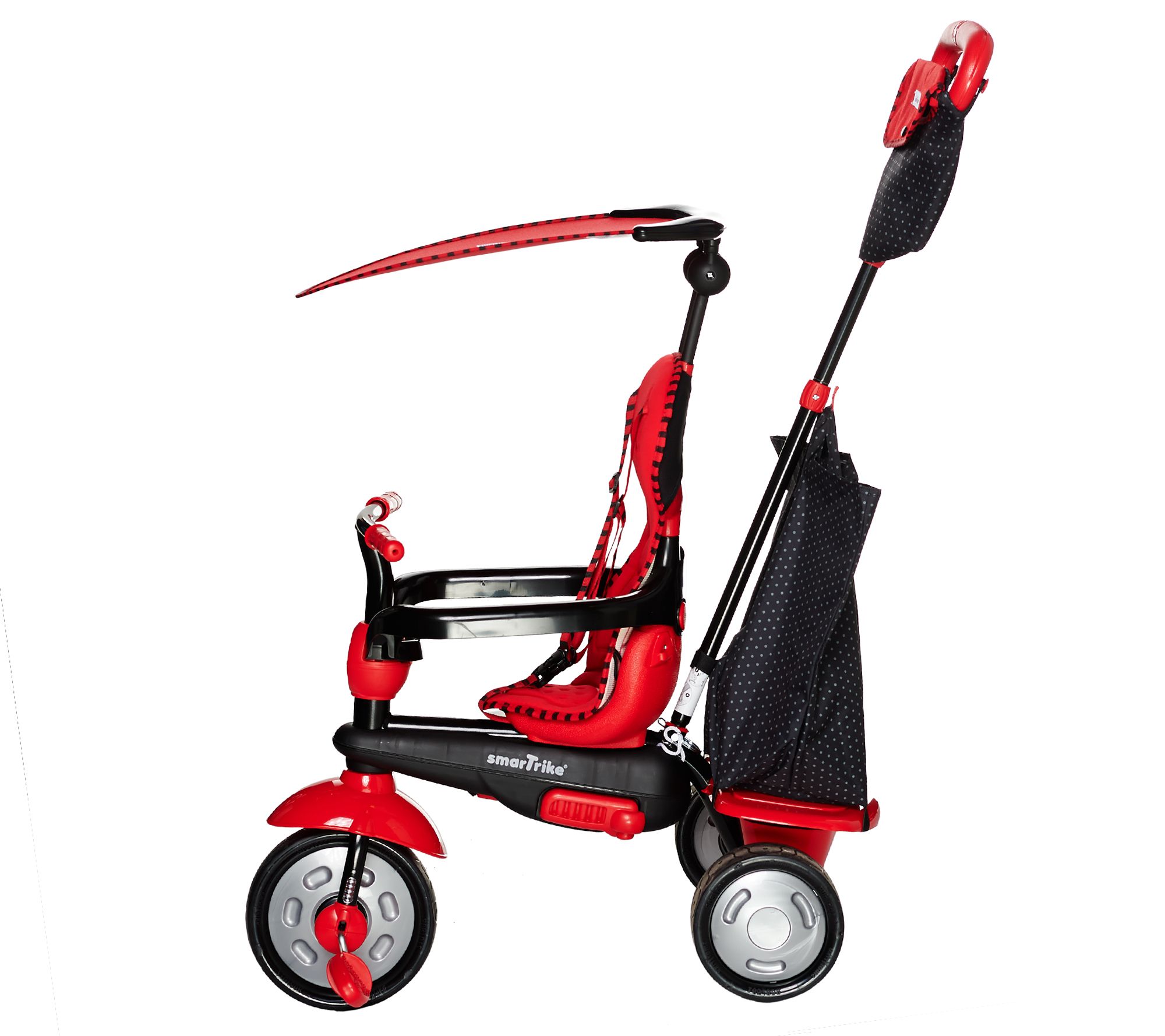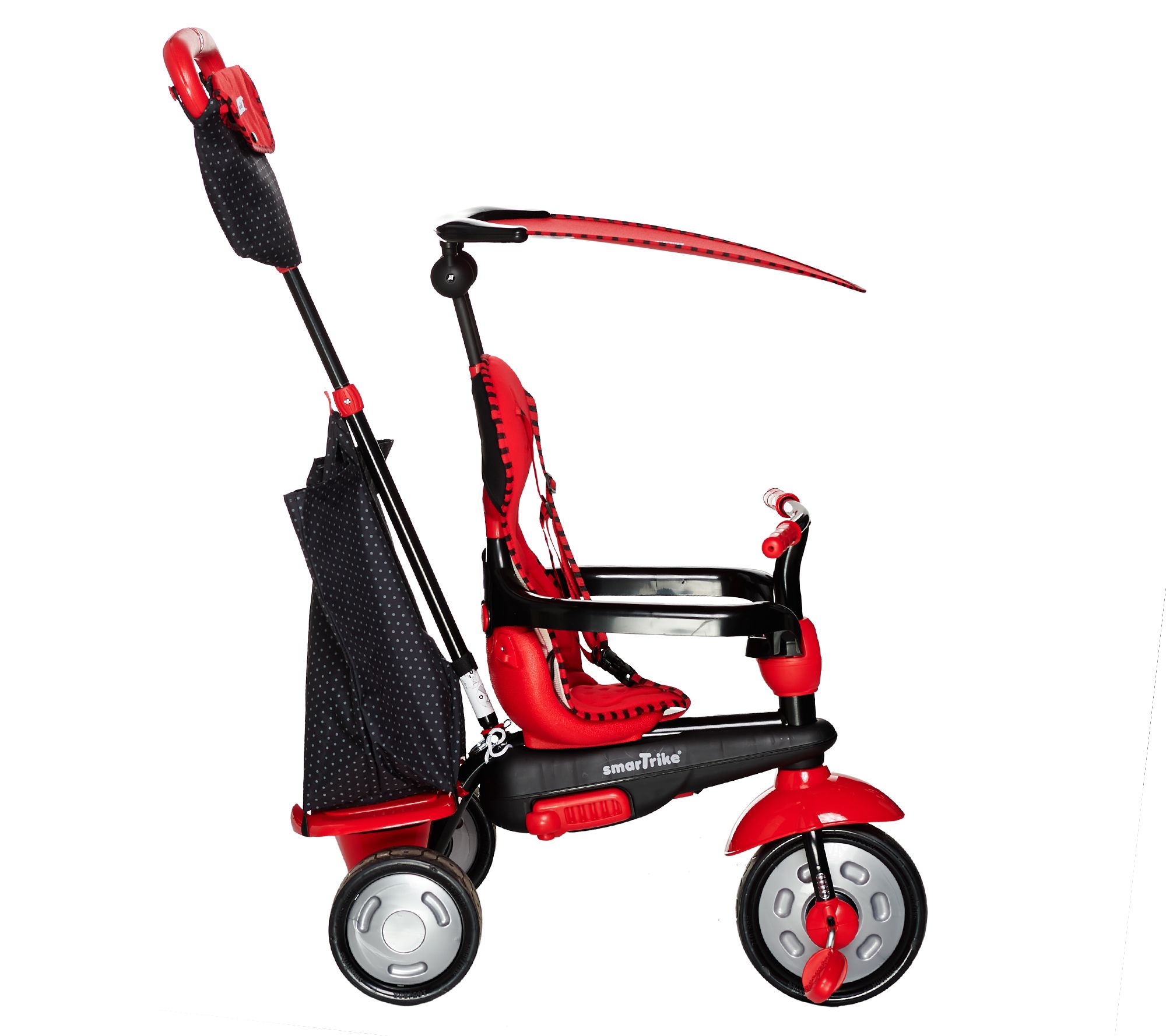 From the just-starting-to-sit-up stage to the on-the-go toddler, the Smart Trike 4-in-1 tricycle grows with your child for years of riding enjoyment. The four different configurations accommodate your child's developing balance and motor skills, converting from high-back support with a footrest and sun canopy all the way to a traditional tricycle. From Smart Trike.