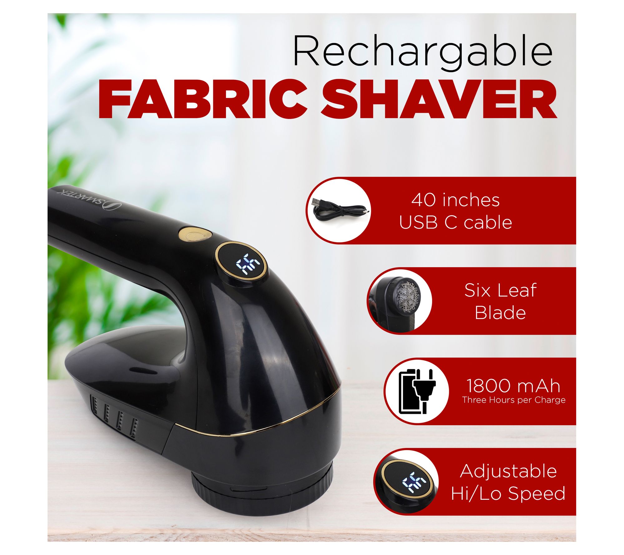It's time to bring new life to your favorite fabrics with the SmarTek rechargeable fabric shaver. Easily trim away unwanted fuzz, lint, and pills from clothing and upholstery to give them a fresh new look. With its LED display and detachable bin, maintaining your wardrobe has never been easier.