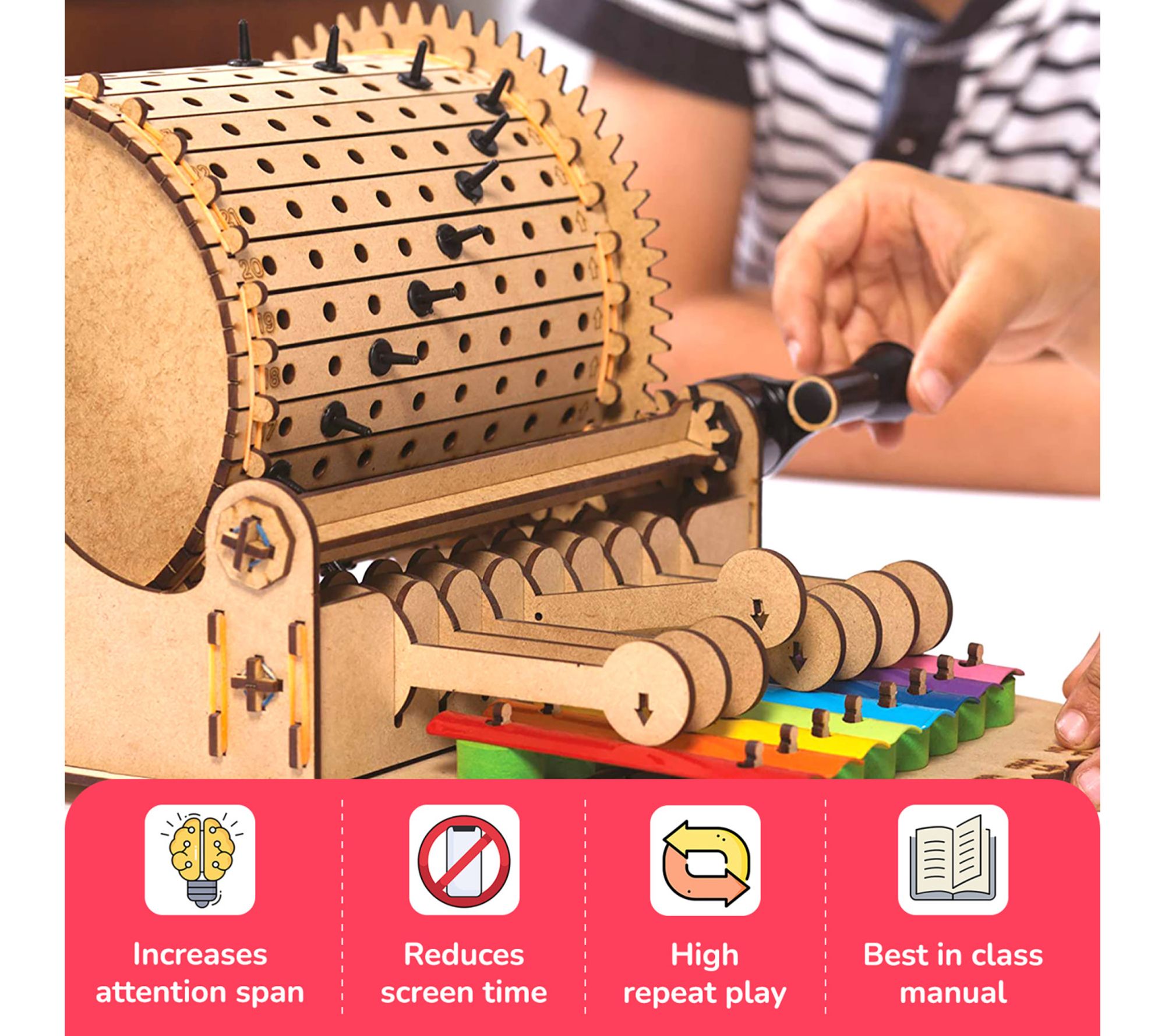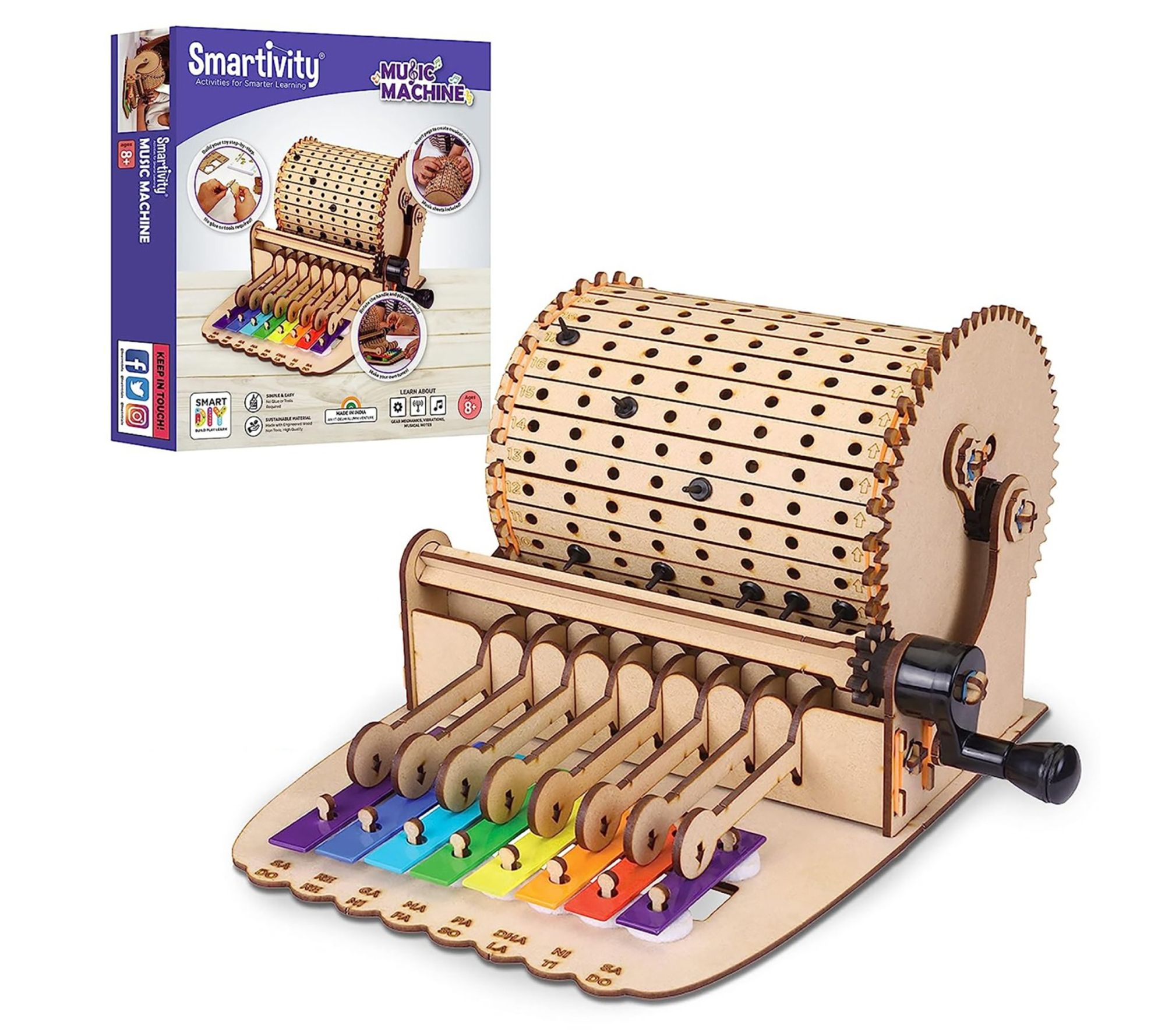 Discover the joy of music and learning with the Smartivity mechanical xylophone music machine. This educational kit allows children aged eight and up to build their own xylophone from scratch, incorporating unique features like a ratchet pawl mechanism and gears. Engage in a hands-on experience that blends STEM principles with the fun of music. From Smartivity.
