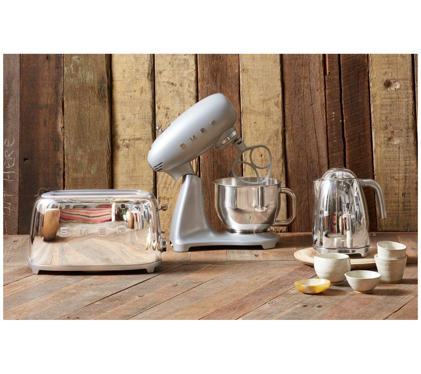 Featuring a cool, retro-inspired aesthetic, this 1.7-liter electric kettle offers sleek styling, seven temperature levels, and a keep warm setting. From Smeg.