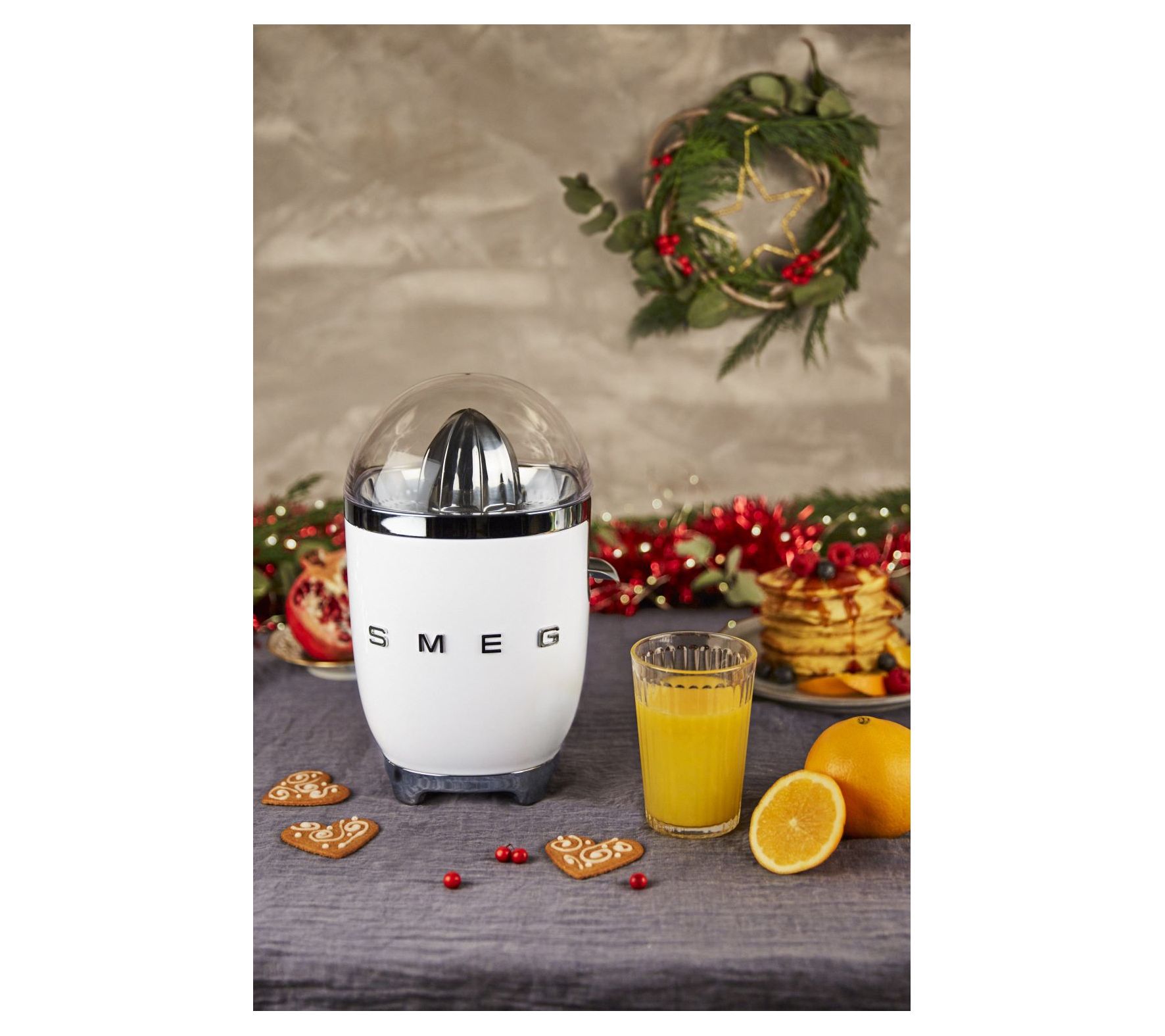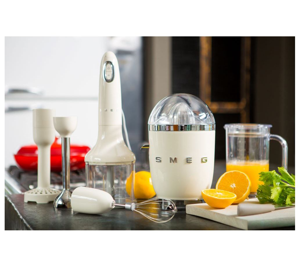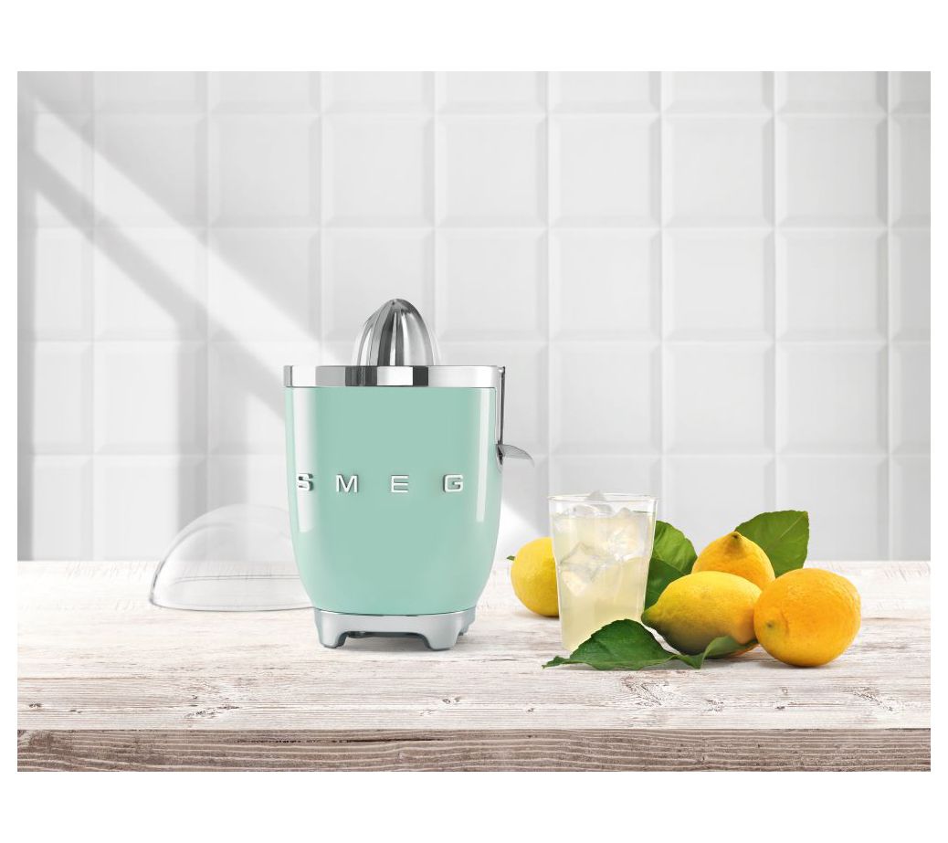 Enjoy chic retro style in your kitchen with this vintage-inspired electric juicer on your counter that will easily squeeze your favorite fruits to make delicious fresh juice to quench your thirst. From SMEG.