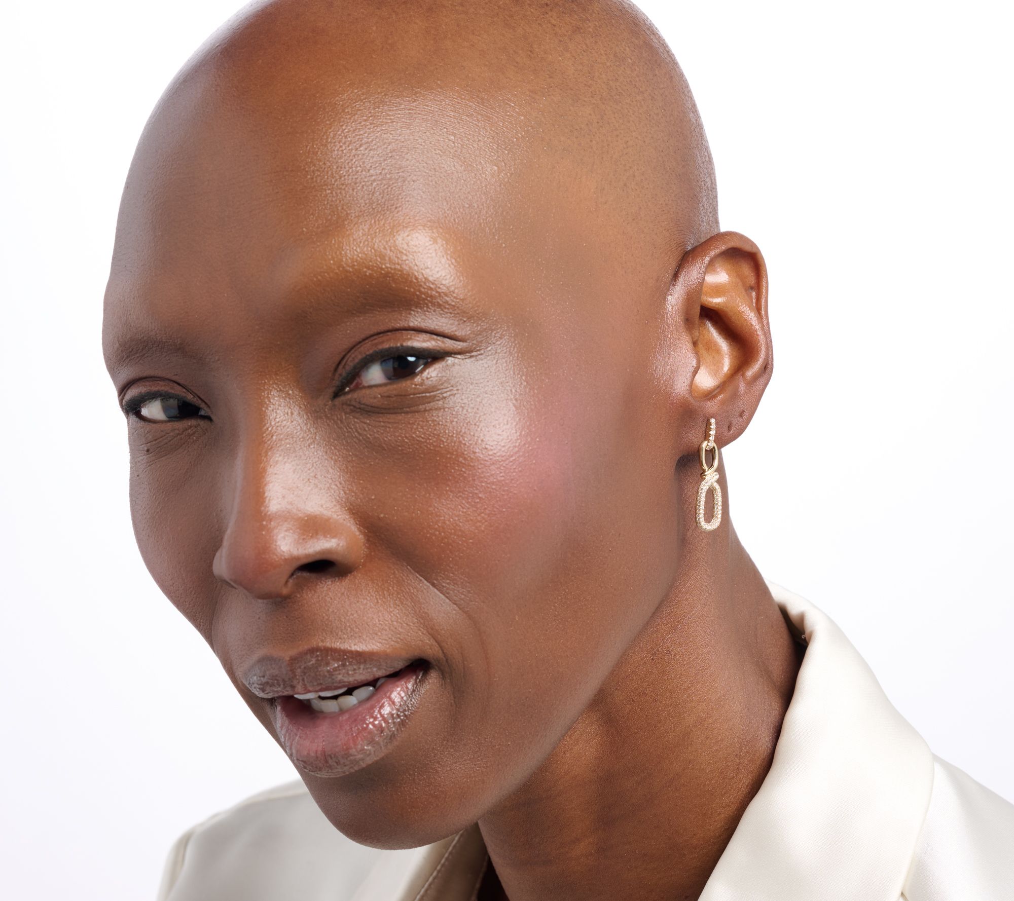 Chain link drop design; pave-set lab-grown diamonds; polished finish