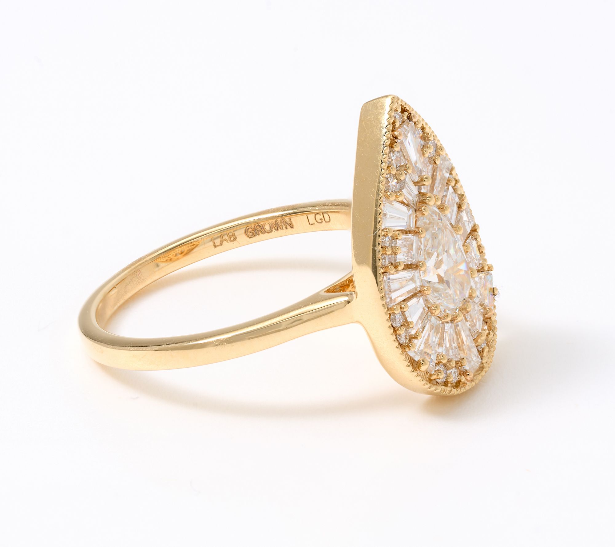 Pear-cut cluster of lab-grown diamonds; pave mosaic design