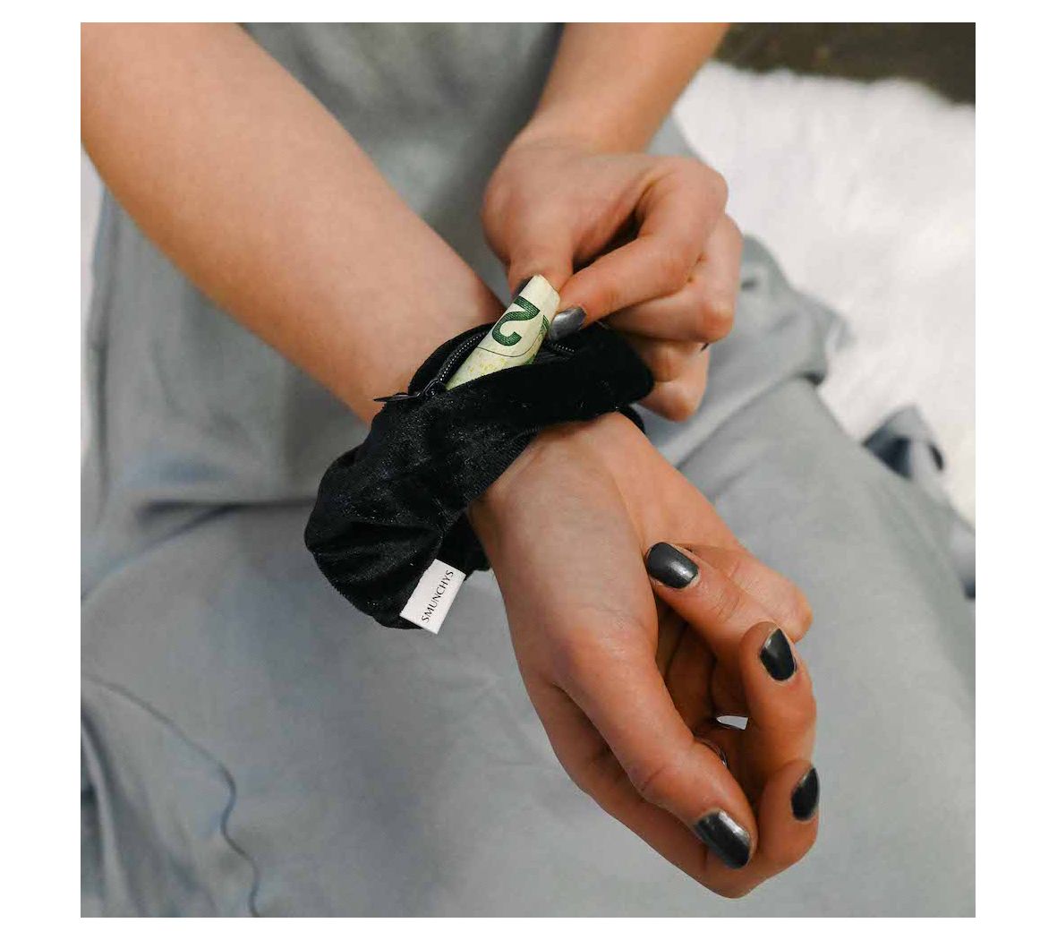 • Each scrunchie features a zippered pocket