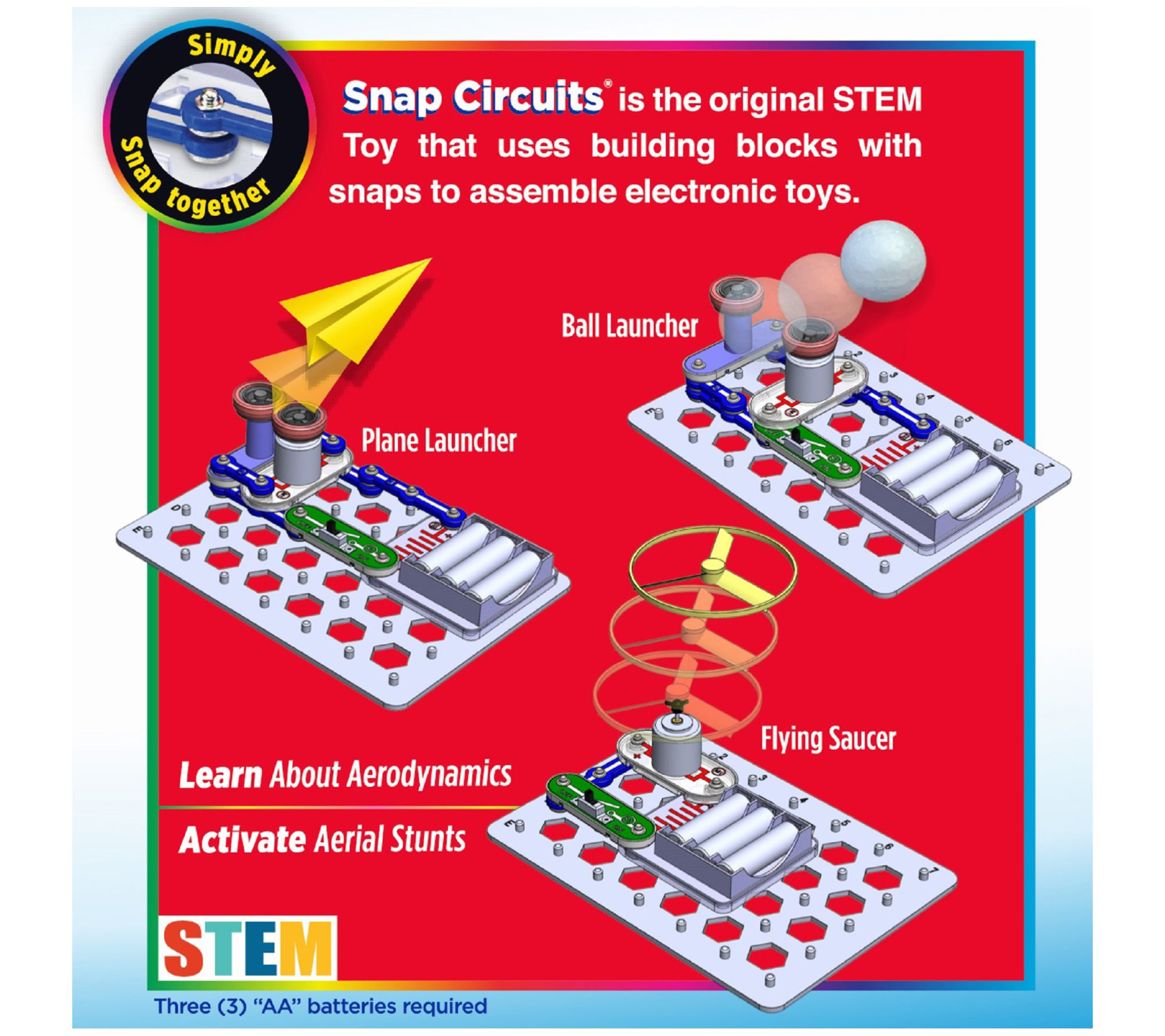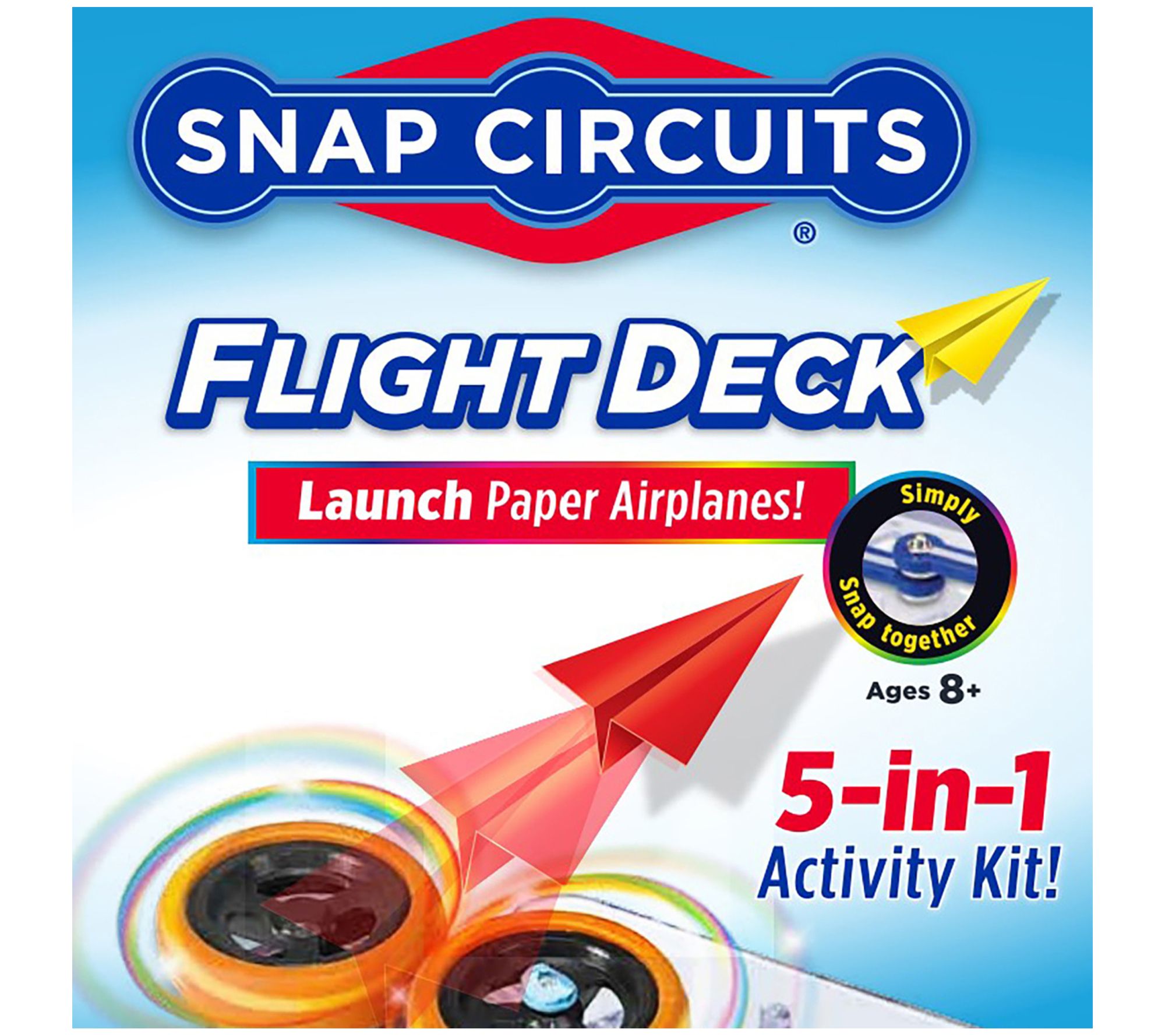 Discover the wonders of electricity and physics with the Snap Circuits Flight Deck STEM Educational Activity Kit. Perfect for young engineers, this kit offers five unique projects, including building and launching a paper airplane and creating artistic patterns on a spinning wheel. From Snap Circuits.