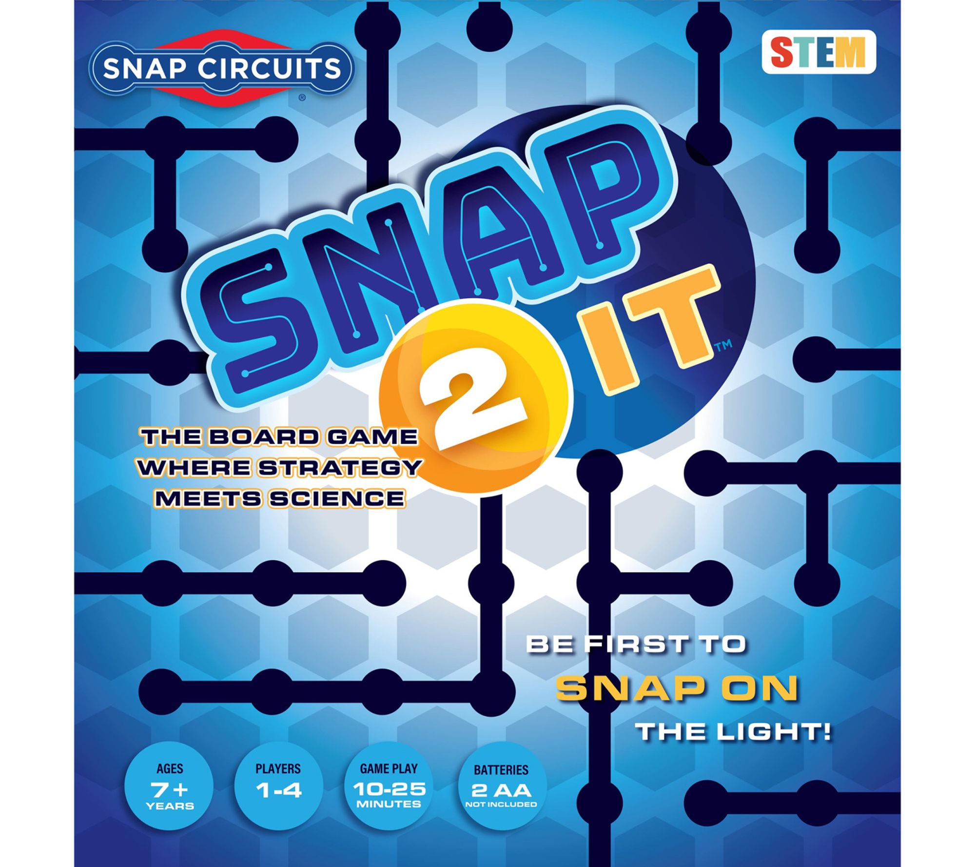 Plan your path and power up the fun with the Snap Circuits Snap-2-It STEM board game. Perfect for family game night, this engaging game combines learning and play as you race to complete a circuit between your light and the battery. With options to play offensively, defensively, and use wild cards, every game is a new adventure. From Snap Circuits.