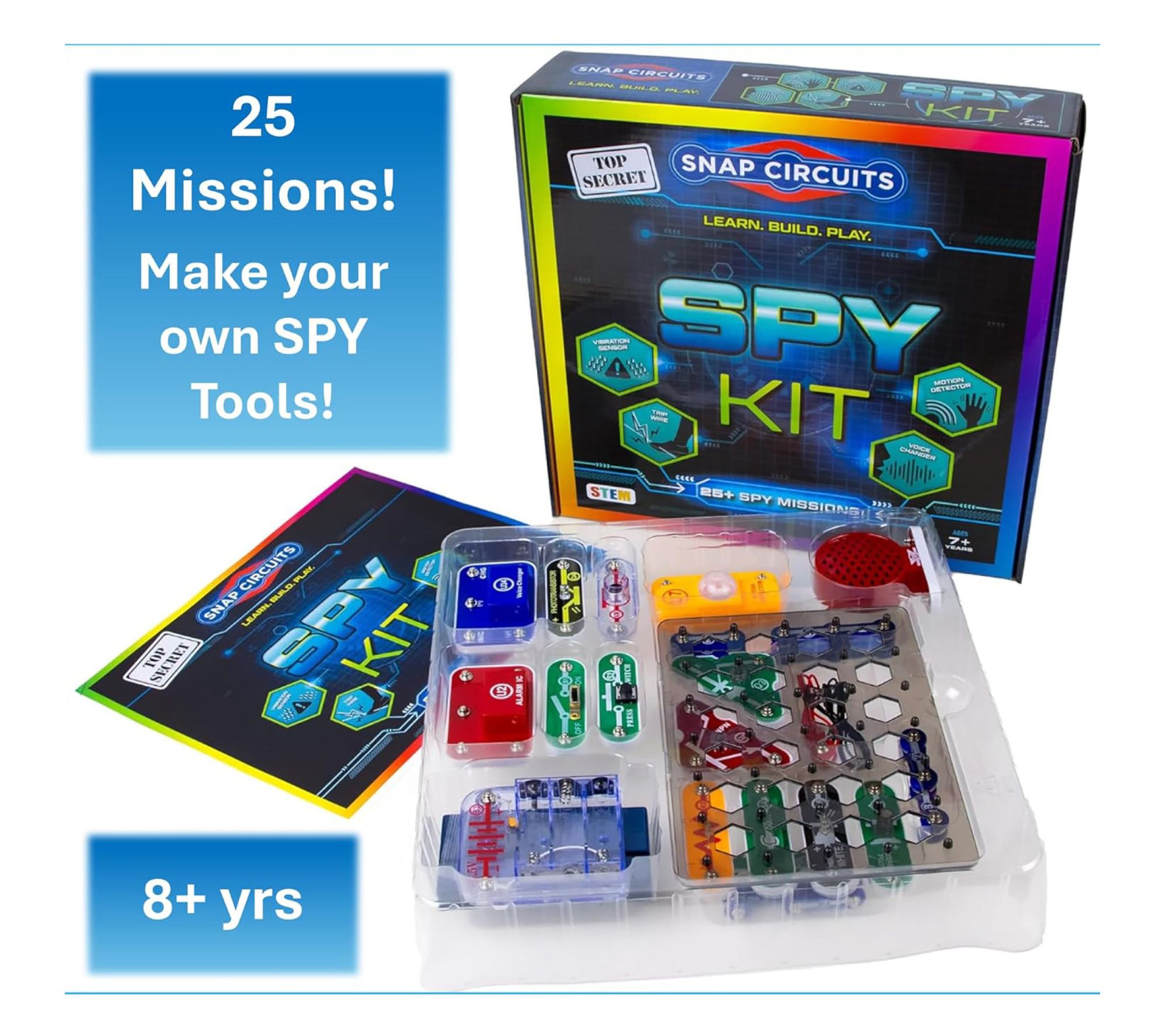 Channel hours of curiosity into hands-on spy adventures with this educational circuit board kit. Young detectives can build their own spy gadgets, set up motion sensors, send coded messages, and experiment with a real voice changer, all while learning the principles of electronics through easy snap-together components. Whether tackling solo missions or working with friends, this interactive STEM toy sparks imagination and builds skills. From Snap Circuits.