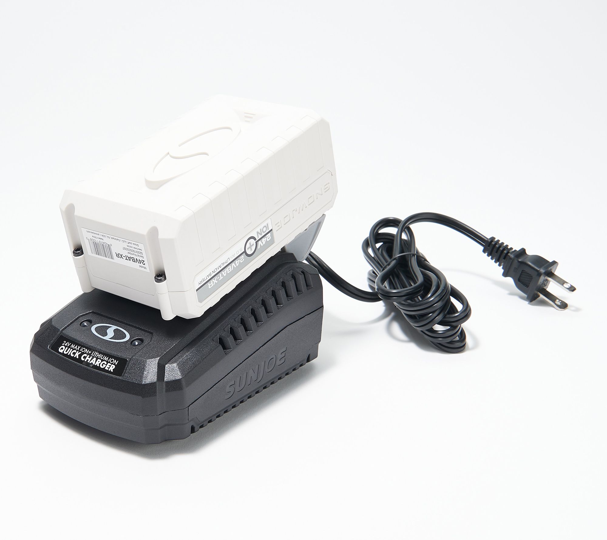 Includes 24V-SS11-XR-QC snow thrower, iON+ 24V lithium-ion battery, and quick charger