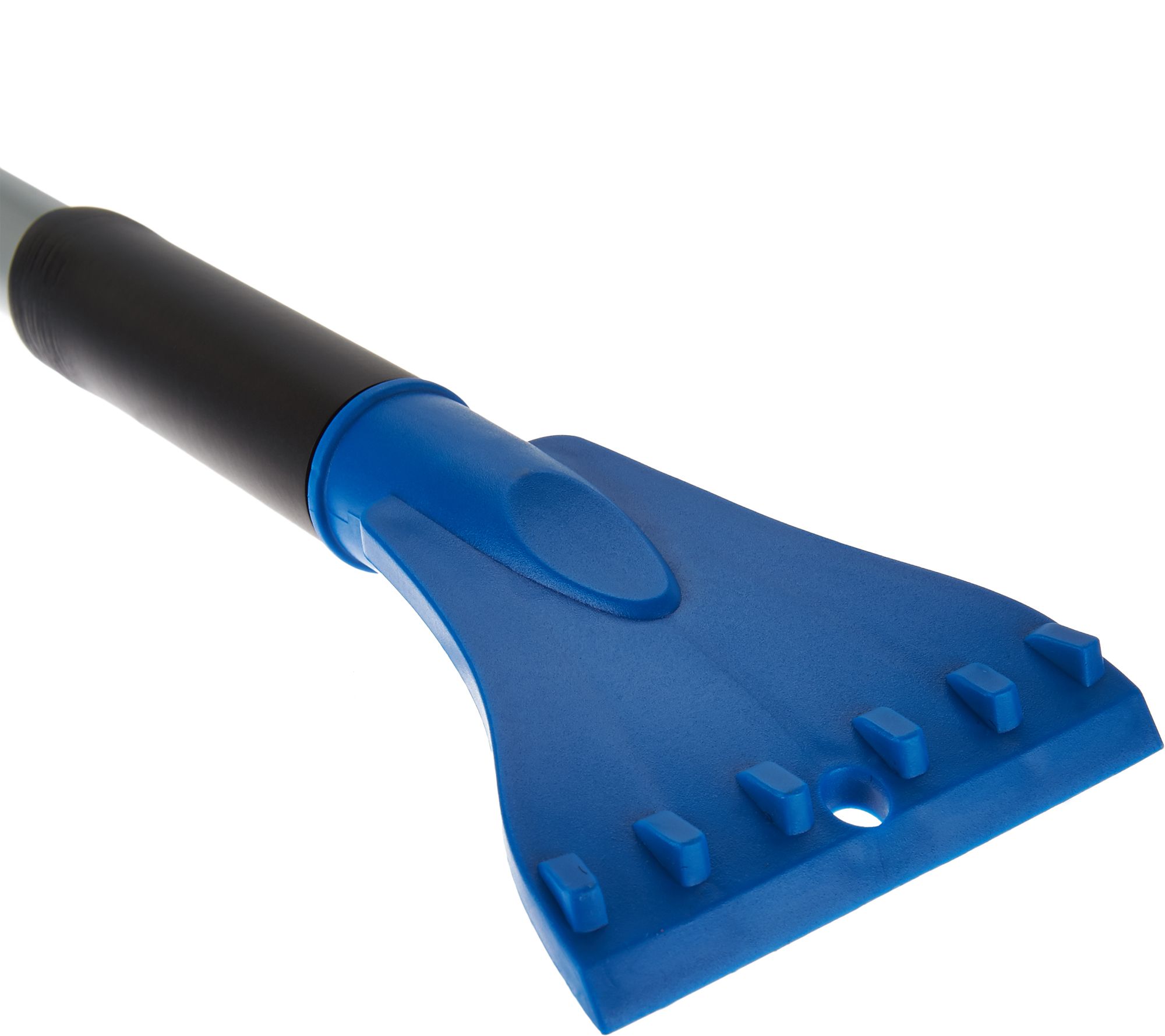 Non-abrasive foam head on one end, ice scraper on other end
