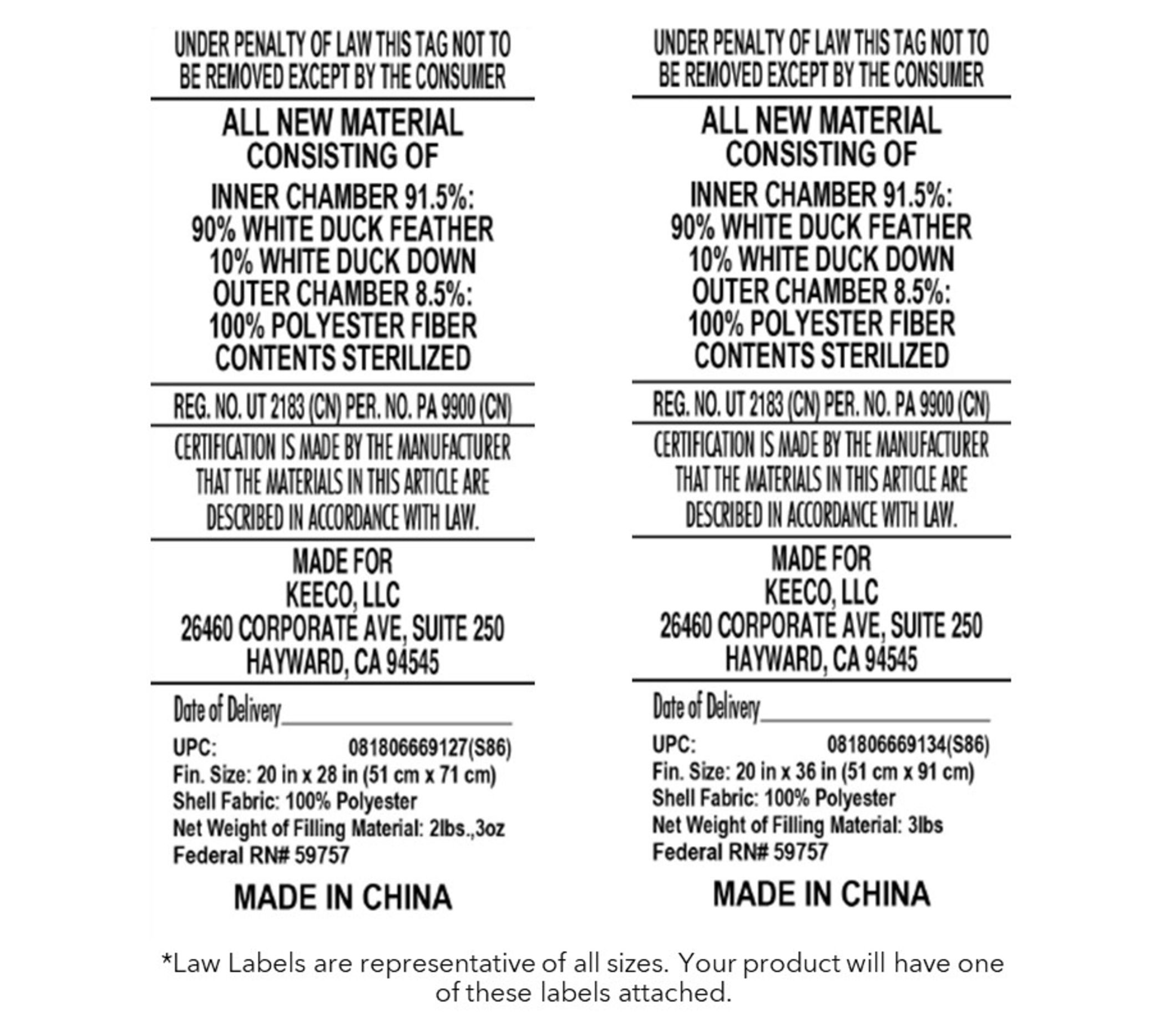 • 100% polyester with 90% white duck feather/10% white duck down fill