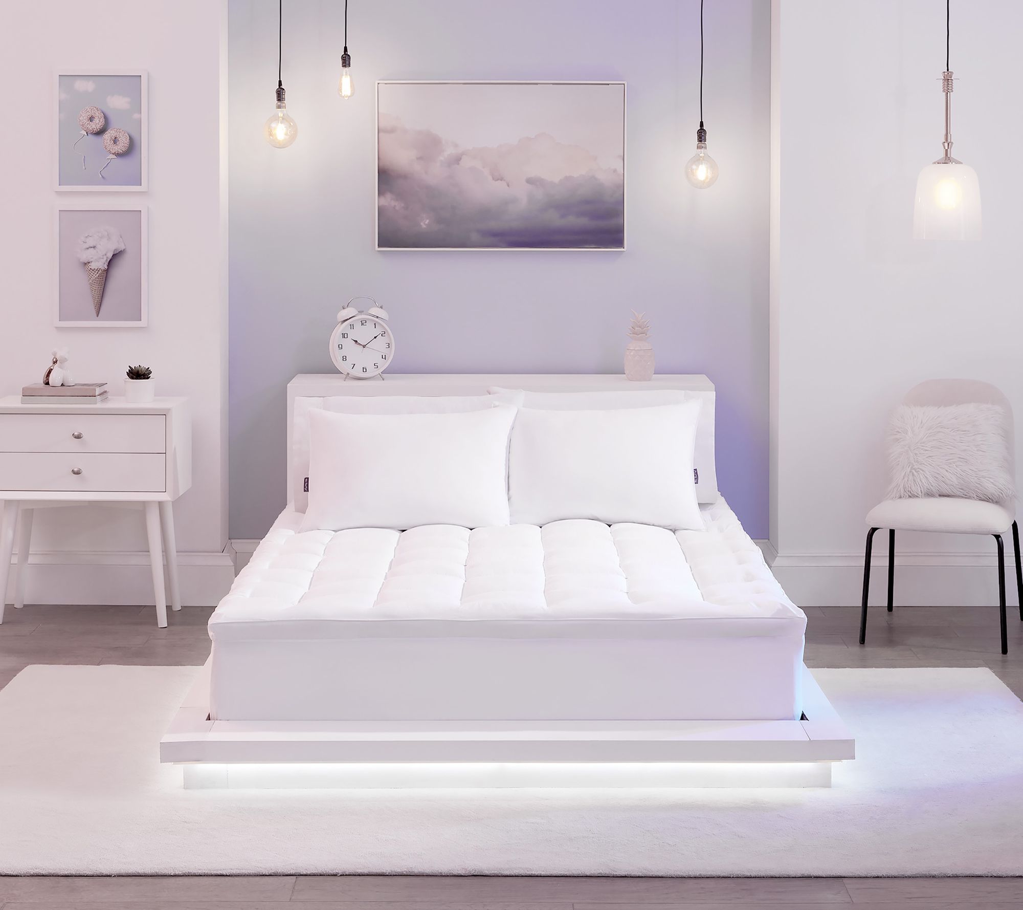 Add an extra layer of softness and comfort to your mattress with this oh-so-plush mattress topper that cradles you with coziness. From So Fluffy.