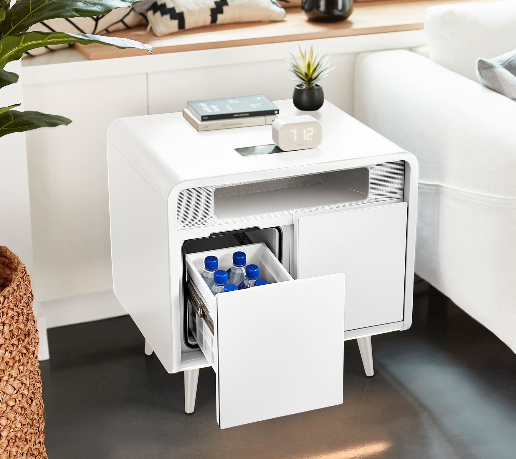Wishing you had a cool drink by your side but equally determined not to leave your couch or bed? This smart side table provides a savvy solution, featuring a thermoelectric cooler drawer (hello, beverages and small bites), built-in Bluetooth speakers (when you feel like jamming out or winding down) and plenty of ports to charge your bevy of devices. From Sobro.