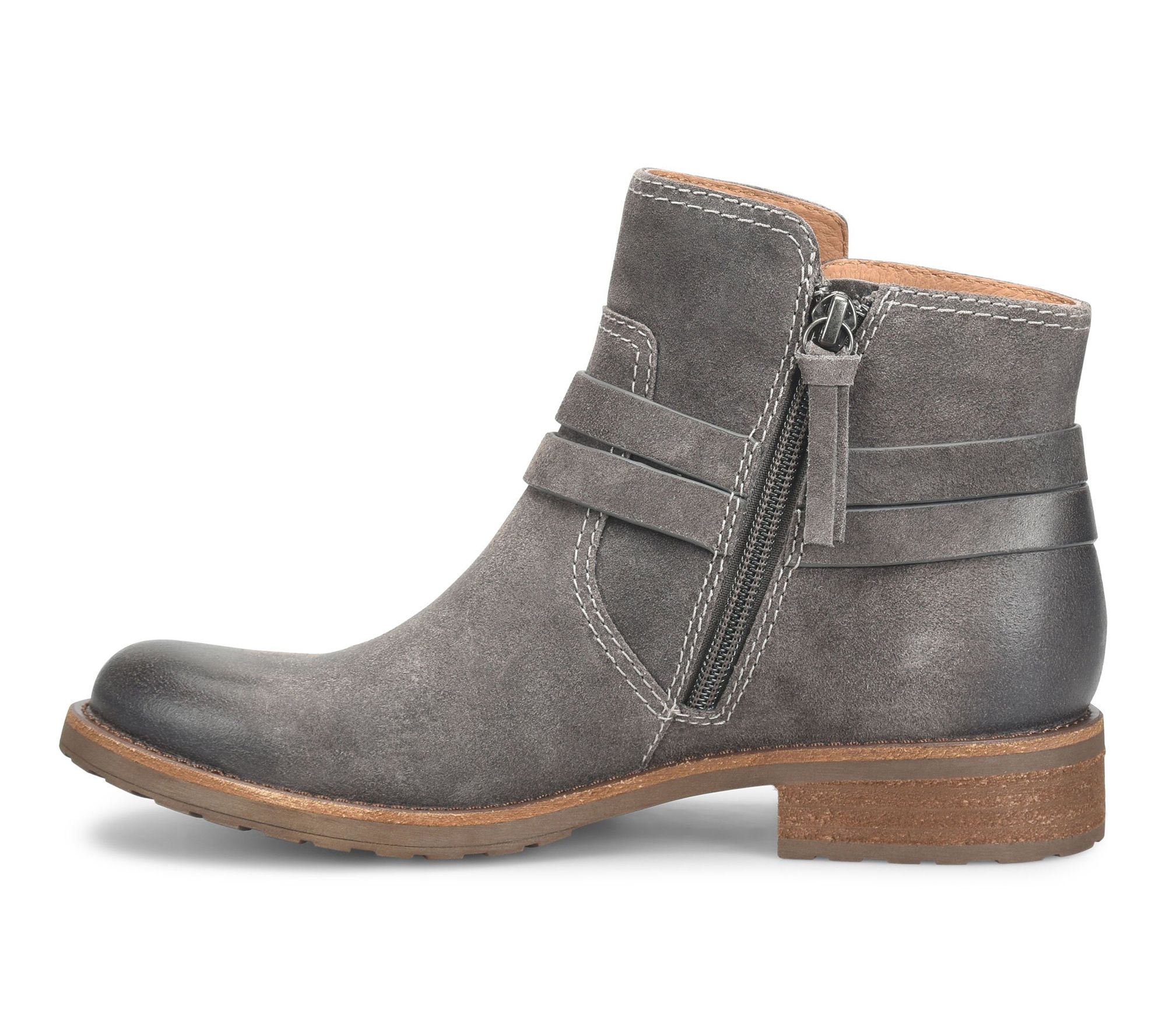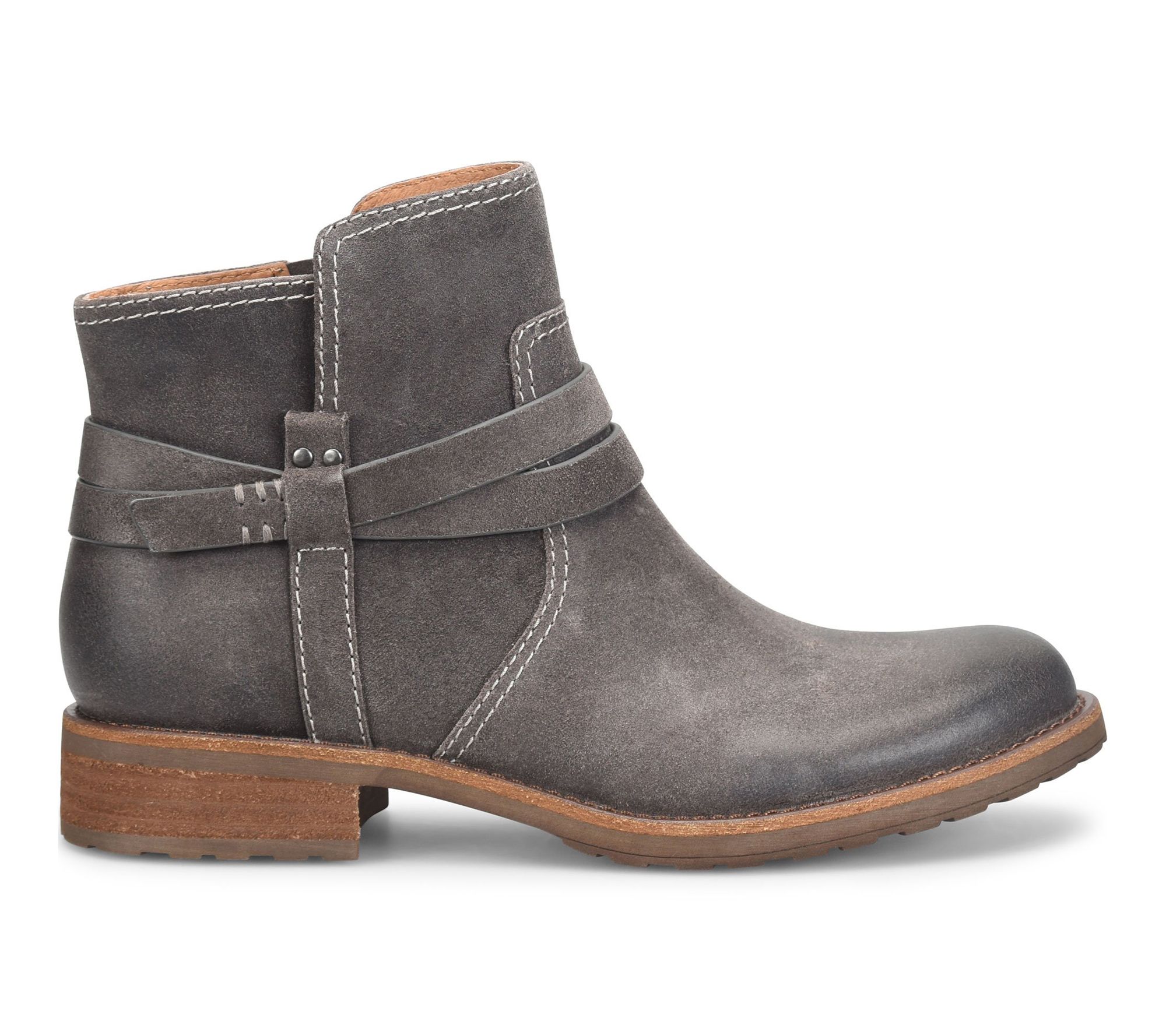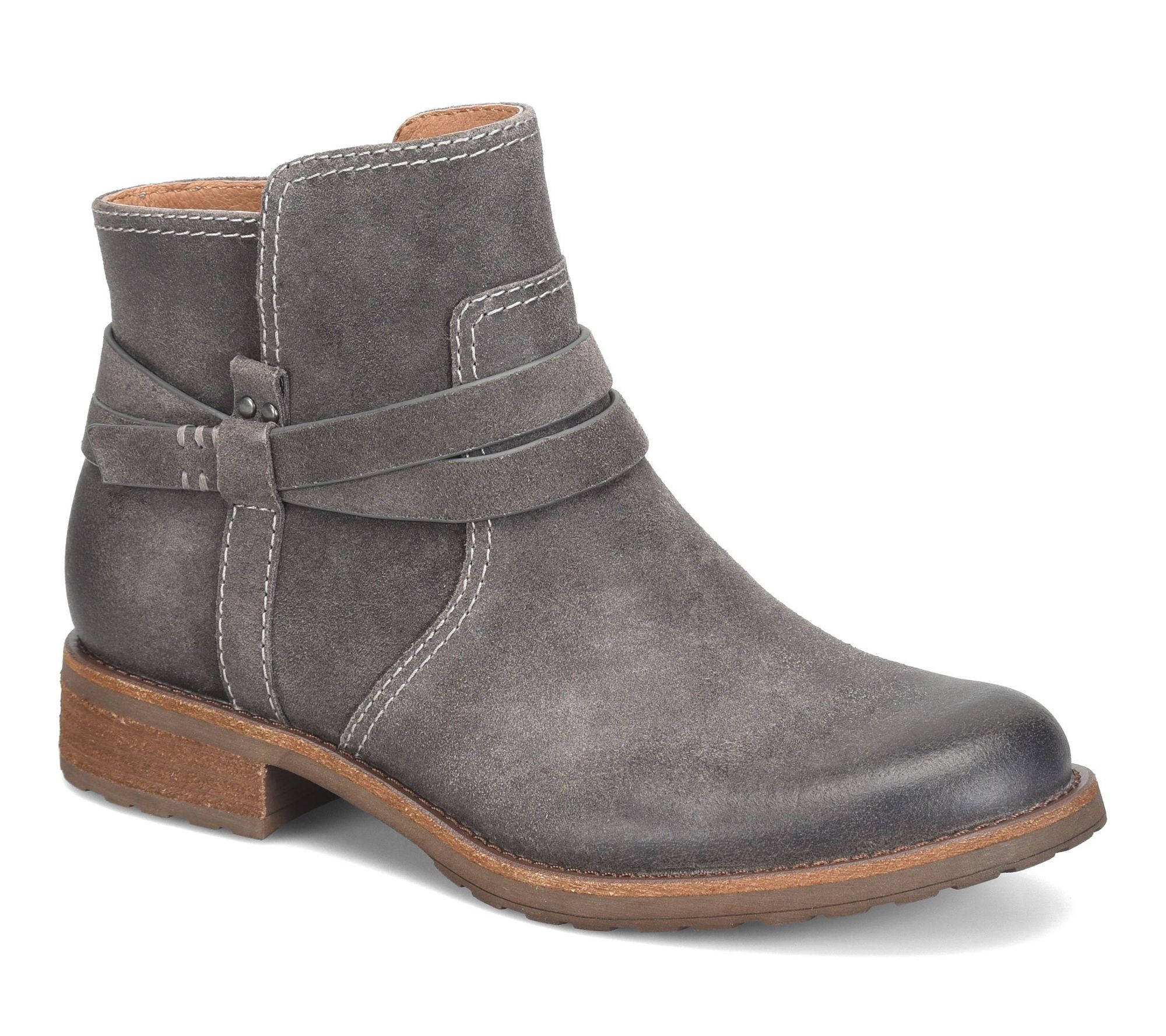Stroll through busy mornings or unexpected drizzles with these Italian suede ankle boots, crafted to offer refined style and comfort no matter the forecast. With hand-finished artisanal detailing and a low-heel design, this leather bootie pairs effortlessly with jeans or dresses, bringing a rustic-chic vibe to your favorite fall and winter ensembles. From Sofft.