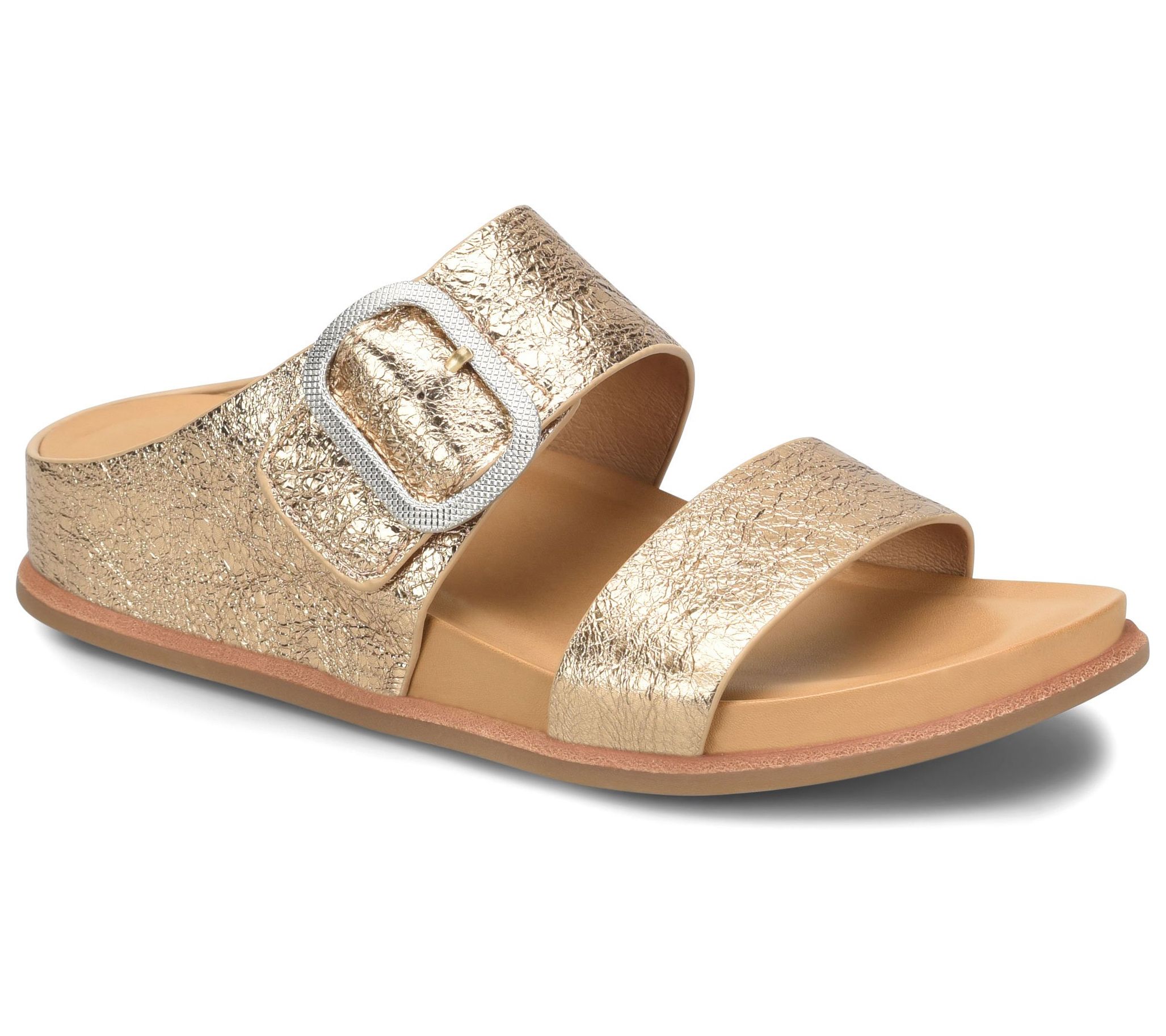 Embrace those fun summer moments in this fresh Aidah slide, designed with eye-catching style and plush, sink-in comfort, with an embossed buckle that adds a touch of glam. From Sofft.