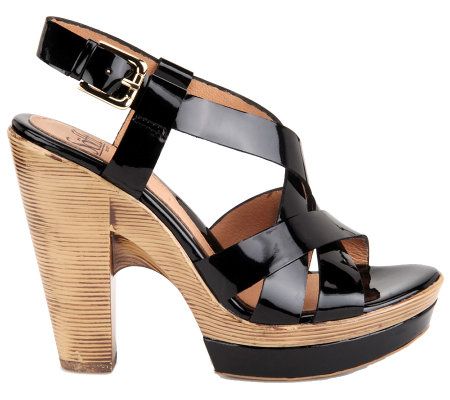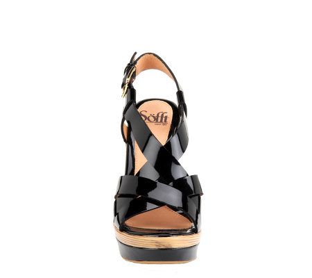 Sky-high sass. Put a little spice in your step with these patent leather platform sandals. Flaunting an approximately 4-1/2"H heel, they'll dramatize any date-night ensemble. From Sofft.