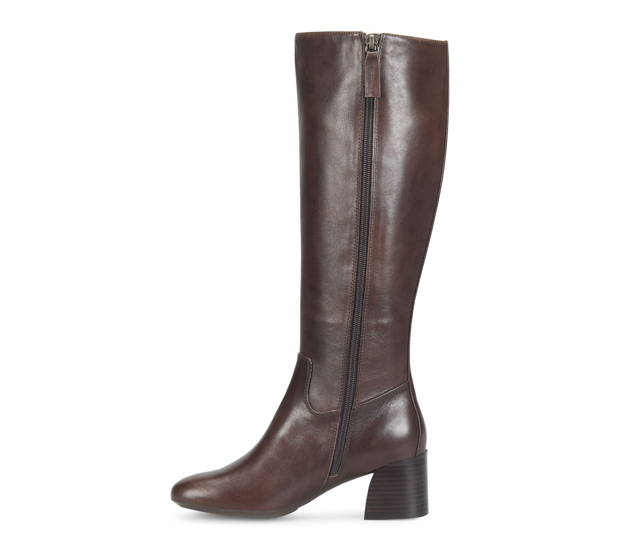 Elegant lines and rich leather give these tall boots effortless versatility for work, weekend errands, or outdoor gatherings. Smooth zip entry and refined details create a polished, comfortable look with any outfit -- from cozy jeans to your favorite dress. From Sofft.