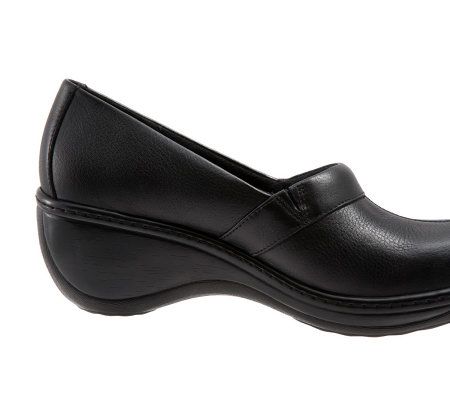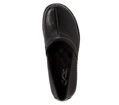 Walk on. Just slip on these covered-heel clogs and go. A padded collar provides comfort, and a slight bumped toe gives you extra room so your feet can keep up with your busy schedule. From SoftWalk.