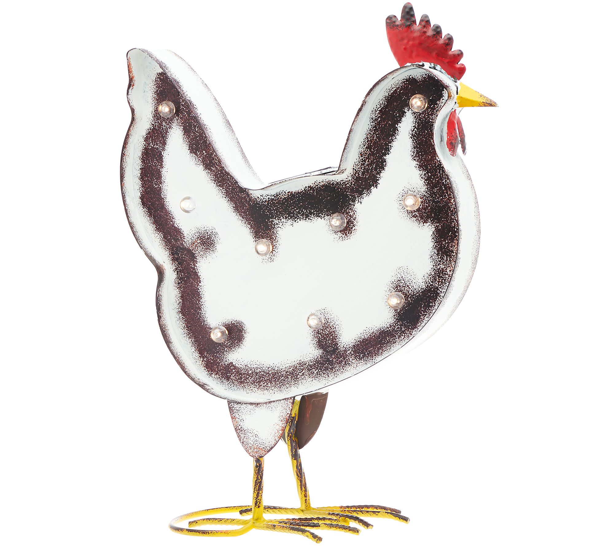 Turn your landscape into a barn yard with this animal statue. LEDs decorate its metal design, automatically turning on at dusk to cast a warm glow for you to enjoy.