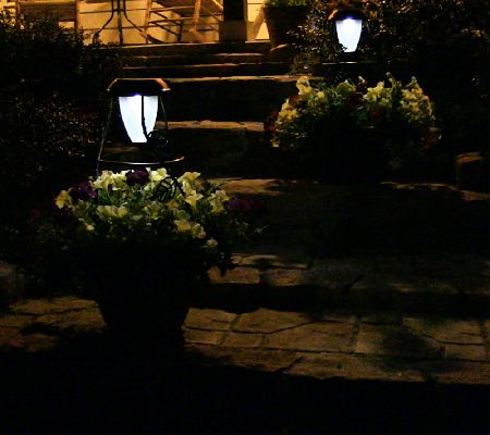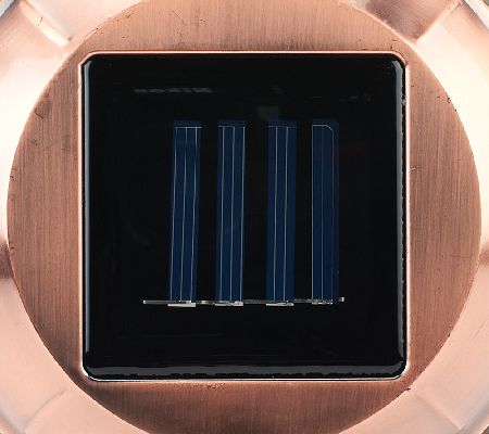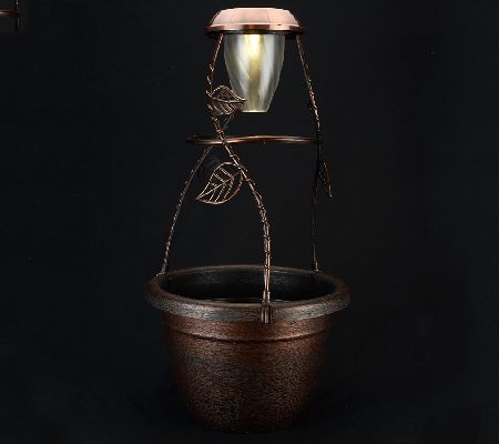 How does your garden glow? A solar-powered light illuminates this decorative piece when the sun goes down, spotlighting whatever you're growing in the planter. The discreet solar panel runs the light by harnessing the power of the sun. From SolaRadiance.