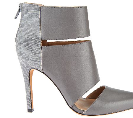 • Lizard-embossed leather, cutout detail, ankle height, covered heel with full zipper