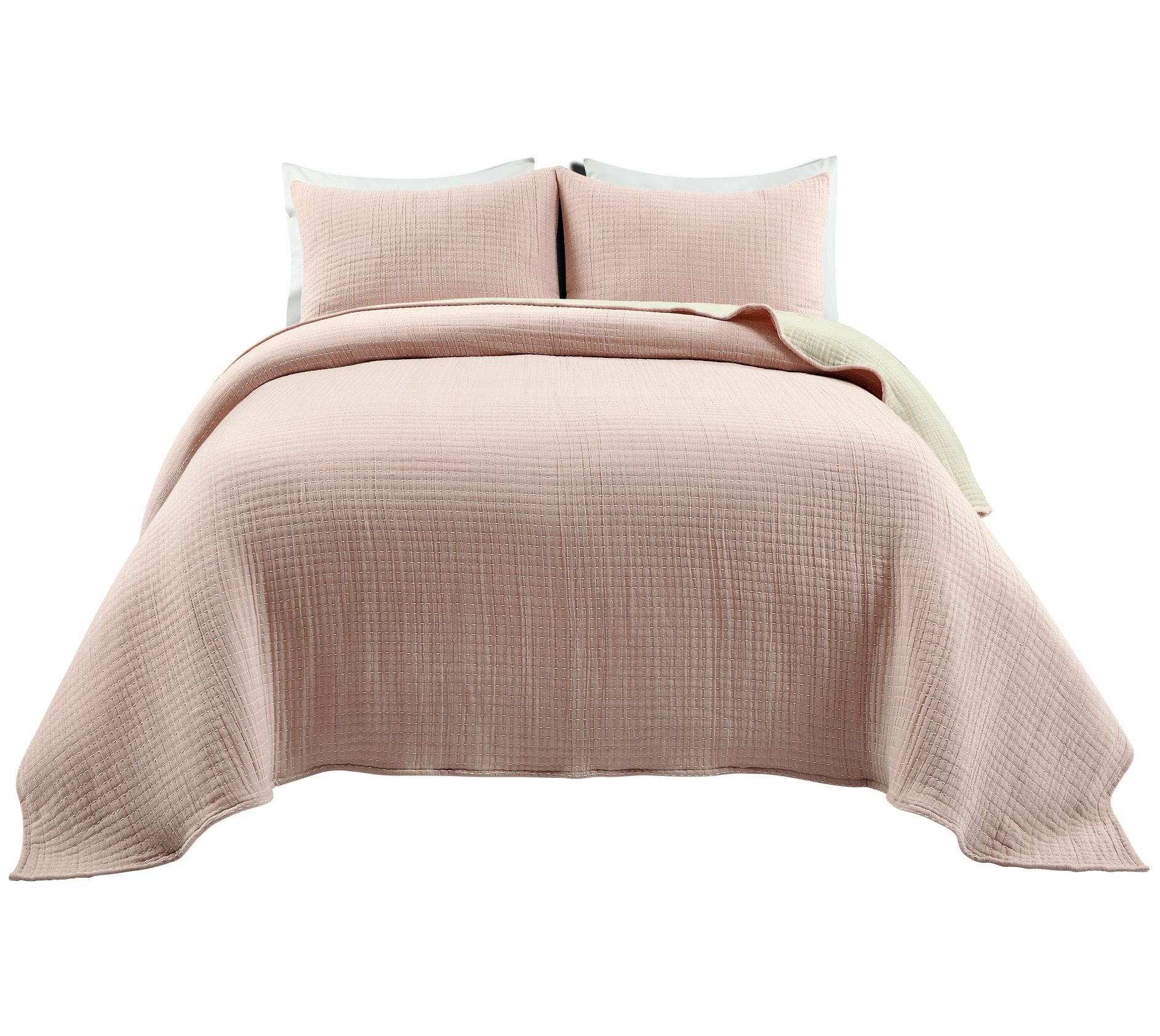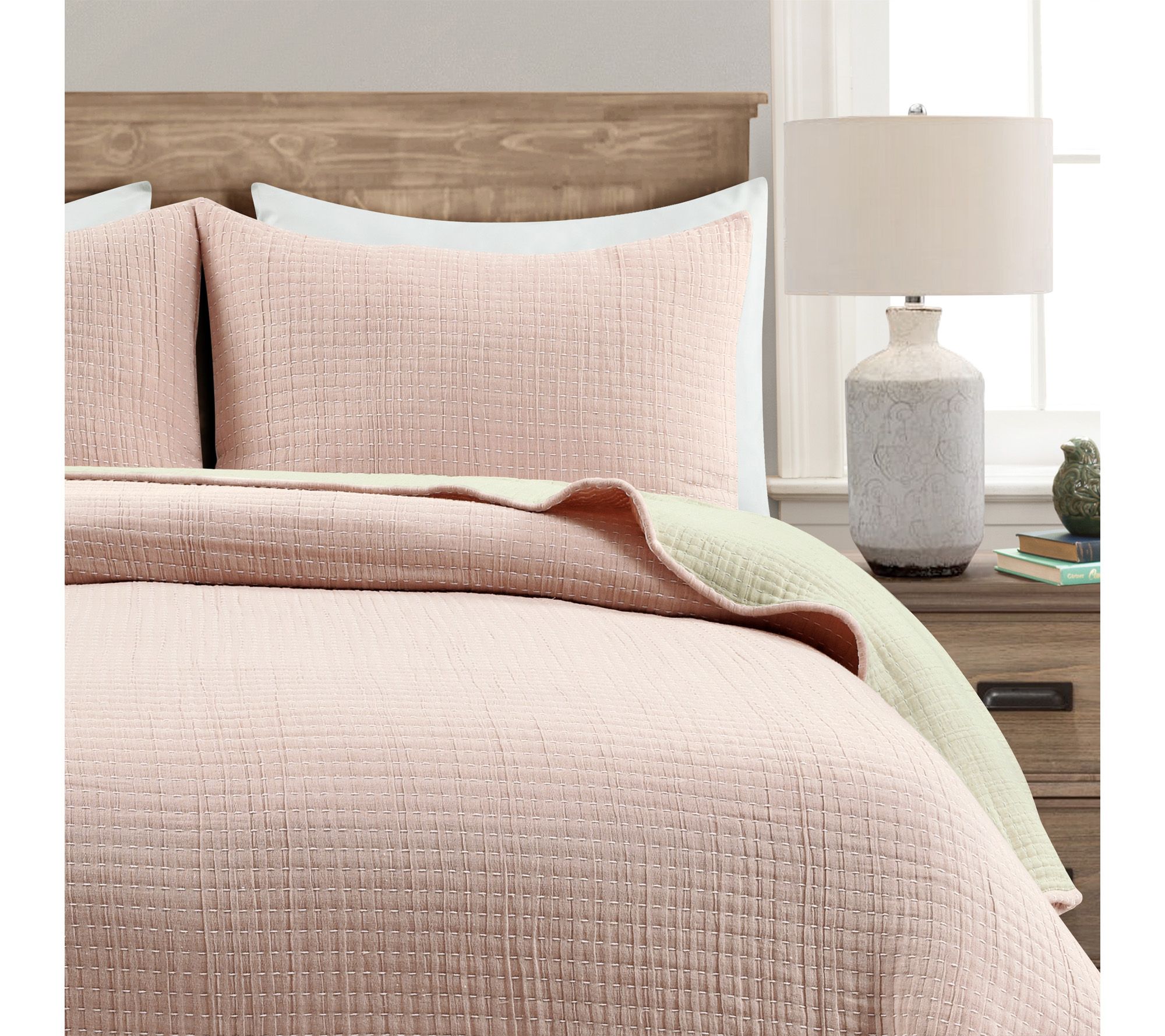 Complement your minimalist decor with the simplicity of this Kantha quilt set. Pick-stitch detailing fills your space with texture while the solid-color design creates a calm and soothing oasis. From Lush Decor.