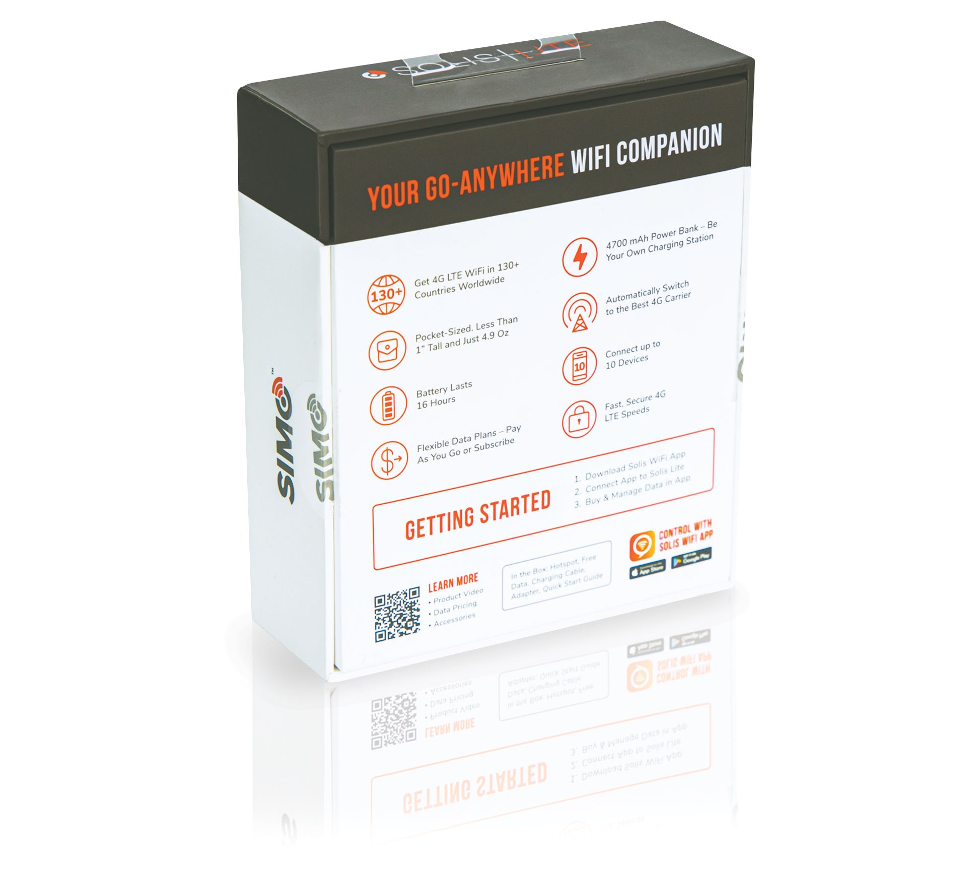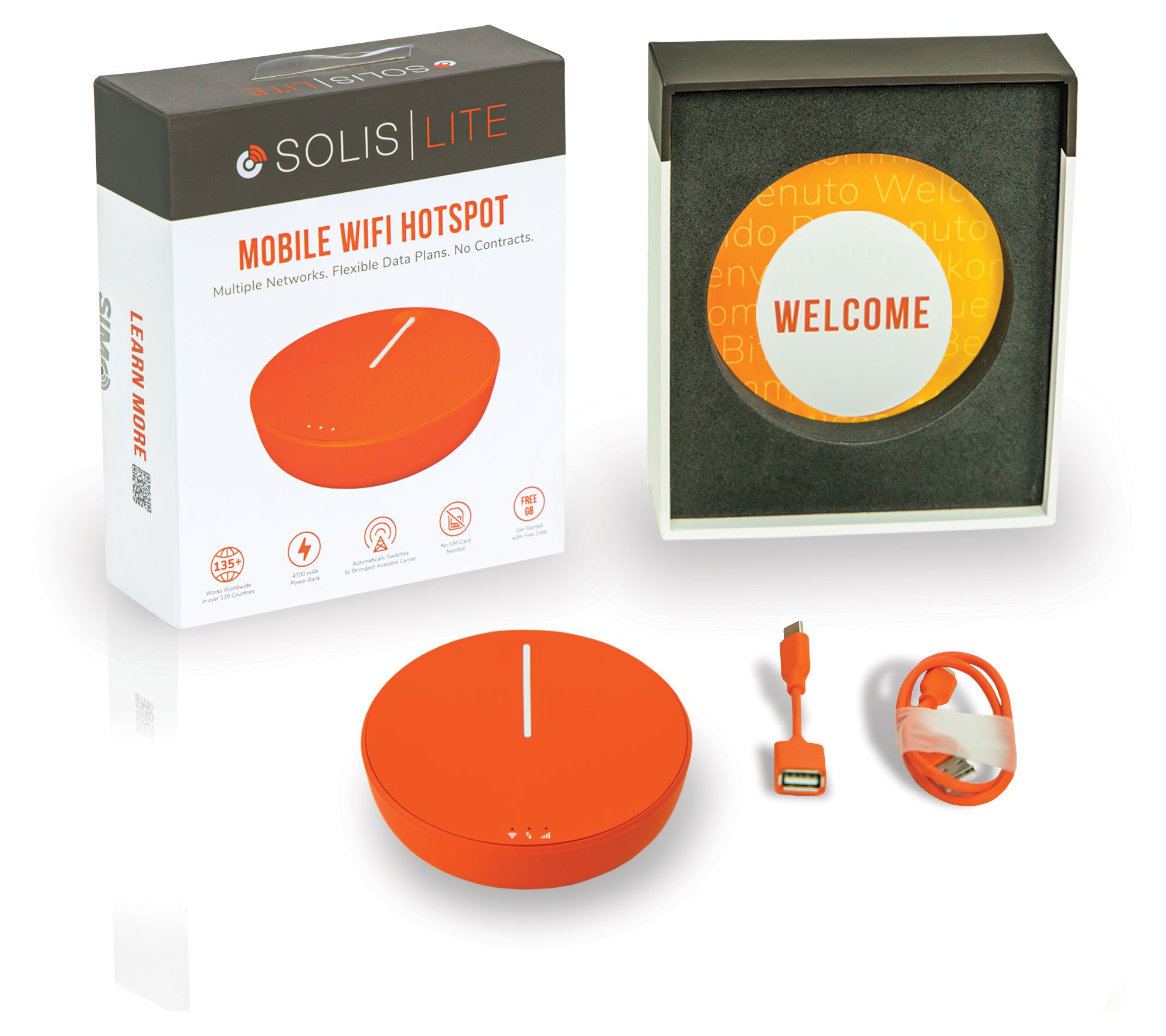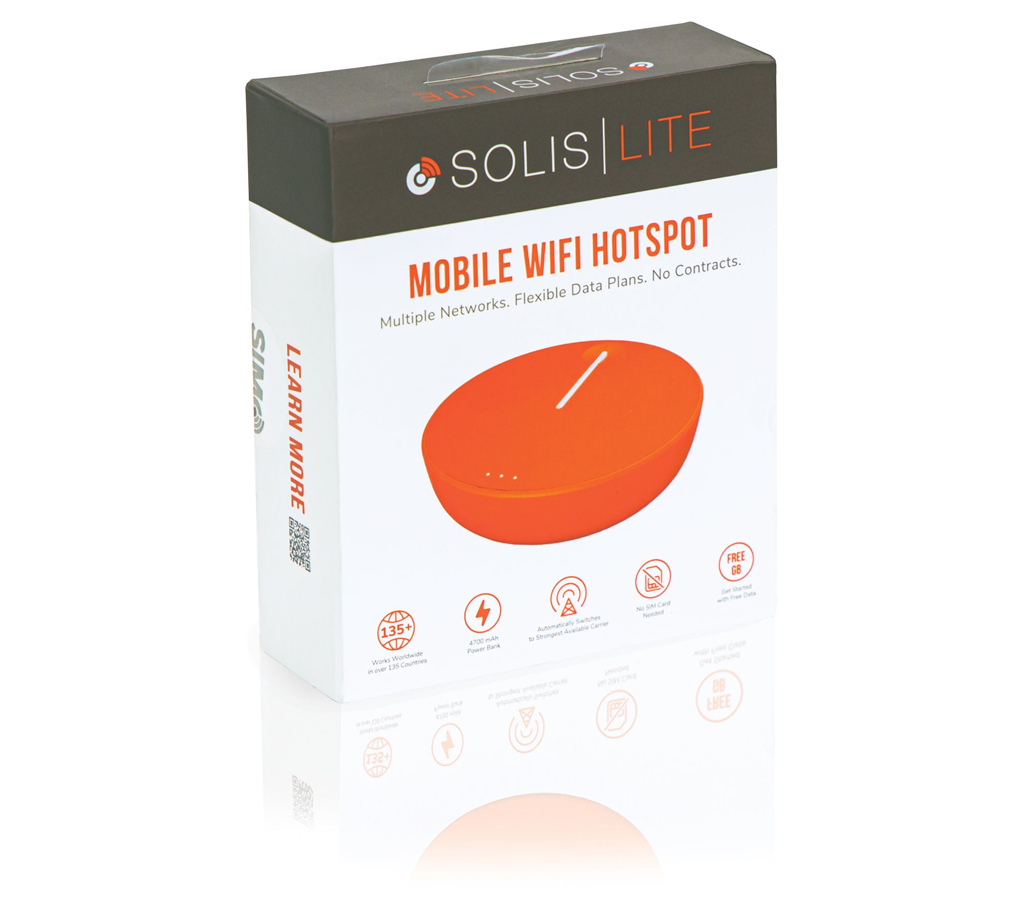 The Solis Lite mobile Wi-Fi Hotspot provides connection coverage in a portable, pocket-sized device. Get internet access anywhere, anytime, and keep your devices charged and on the go, too, with the convenient power bank. From Solis.