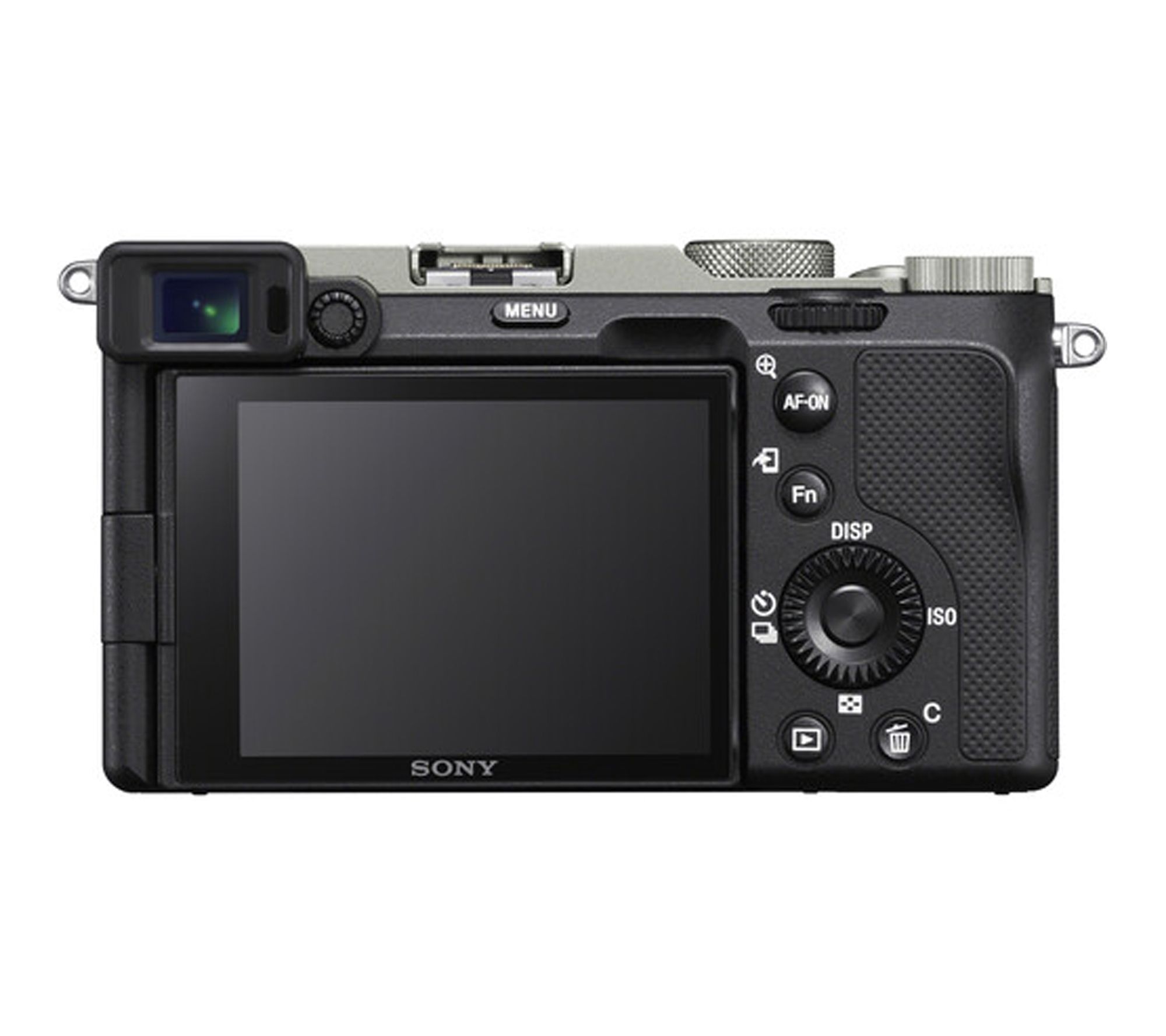 Includes a7C mirrorless camera (silver), NP-FZ100 battery (2280mAh), AC adapter, USB Type-A to Type-C cable, shoulder strap, ALC-B1EM body cap, accessory shoe cap, and soft case