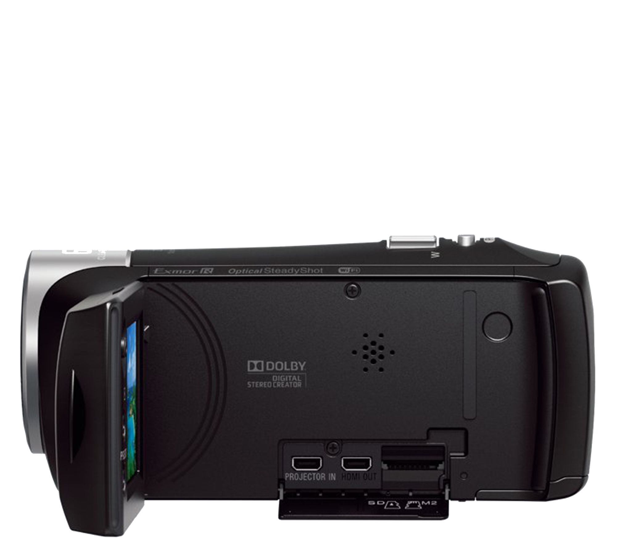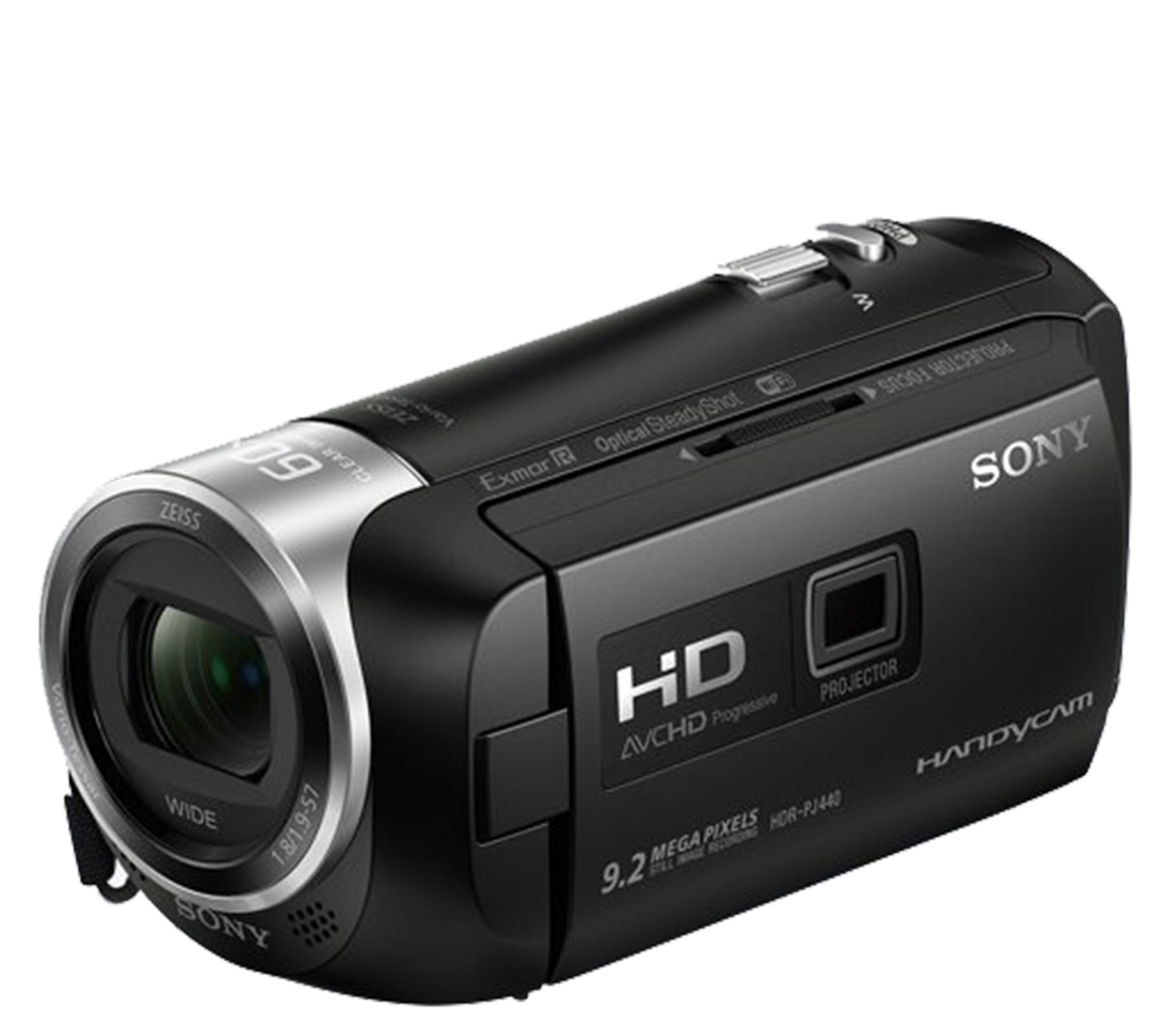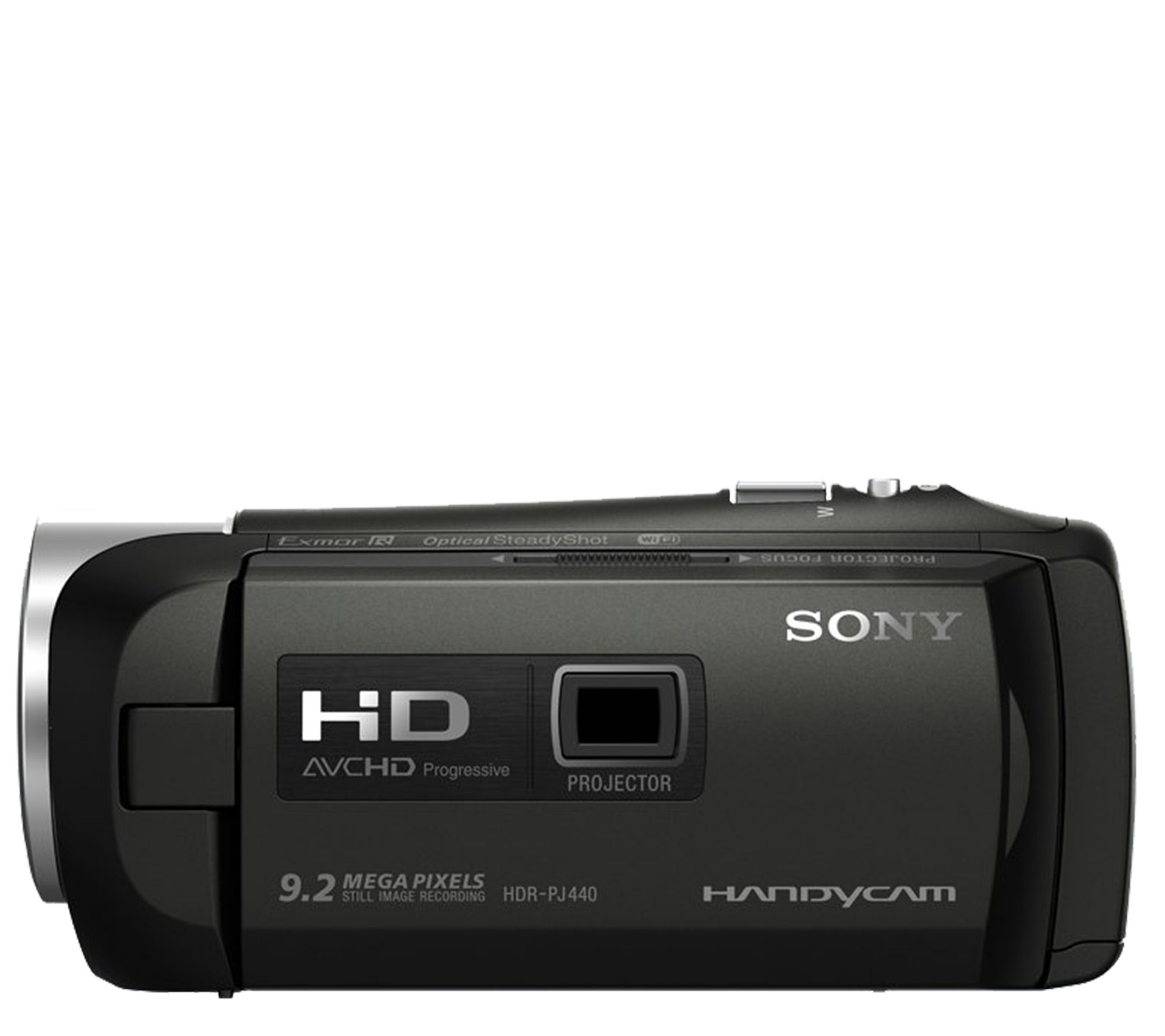 Capturing the best possible image and video is at the forefront for the PJ440 Handycam--which is plain to see from the Zeiss Tessar lens, Exmor R CMOS image sensor, and BIONZ X image processing engine. Shoot and record steadier images--even while walking--with Optical SteadyShot. Want to share photos more easily? Thanks to built-in Wi-Fi, you can do just that. And did we mention this camera has a built-in projector? It does, so you can view your videos on any surface at any time. From Sony.