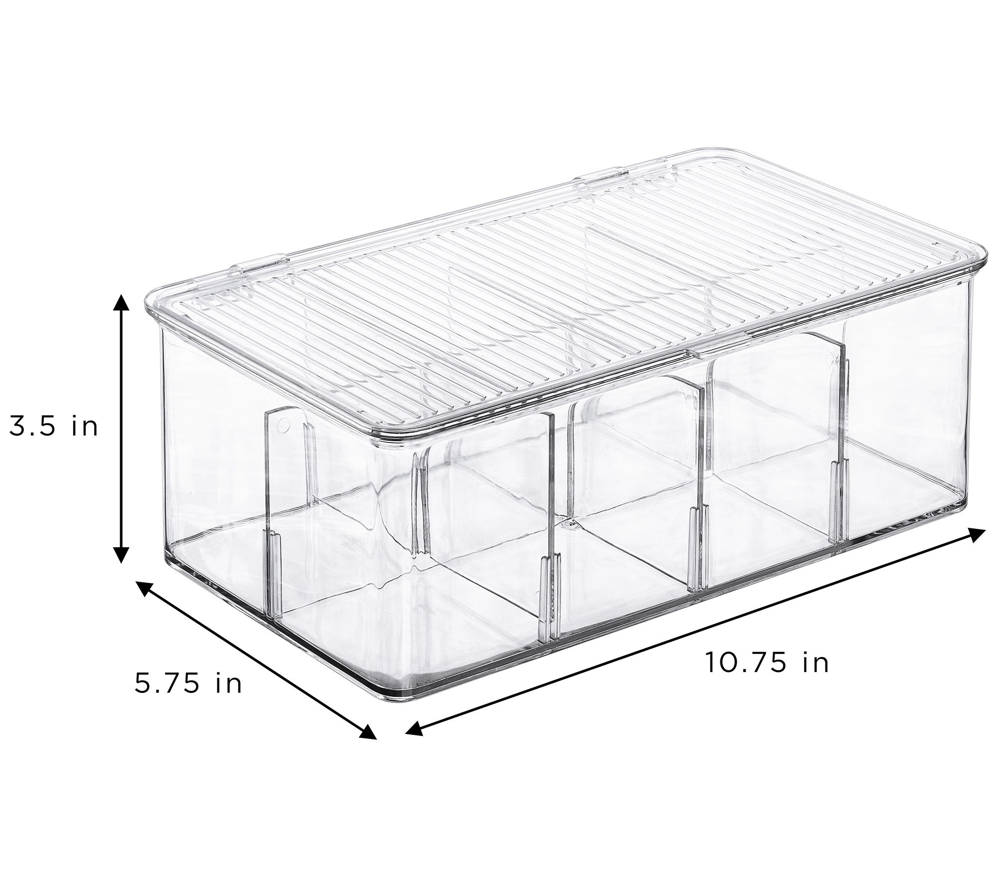 Make over your pantry or fridge in organized style with this set of divided storage bins. Each bin is stackable for space-saving convenience and is equipped with a lid to keep foods fresh and secure. From Sorbus.