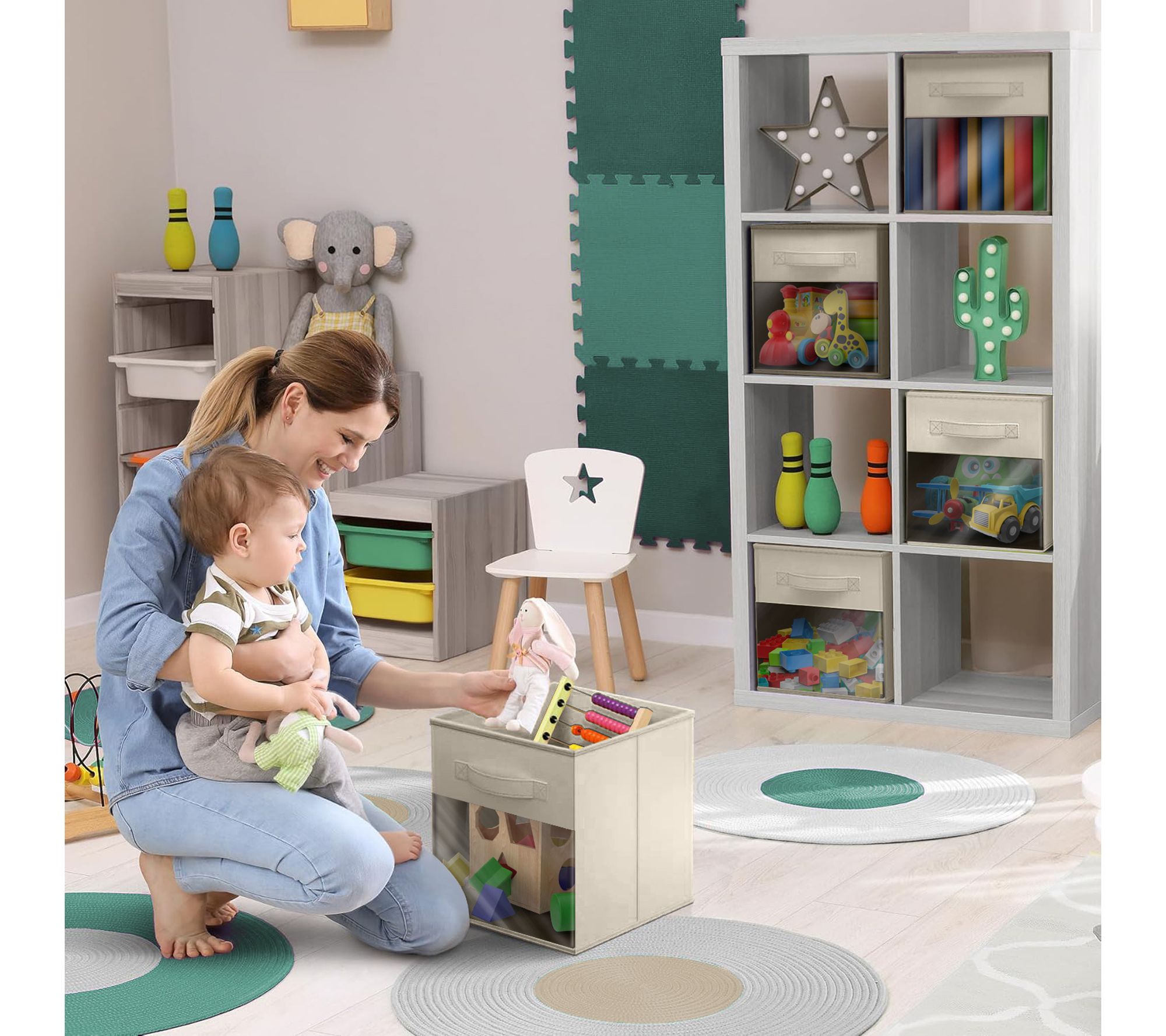 Keeping your home clutter-free is a breeze with these storage bins designed to showcase their contents through a clear window, making organization simple and stylish in any room -- from laundry essentials to kids' toys or craft supplies. The fabric storage bins easily tuck into shelves and cubbies, adding a clean look while helping you find what you need at a glance. From Sorbus.