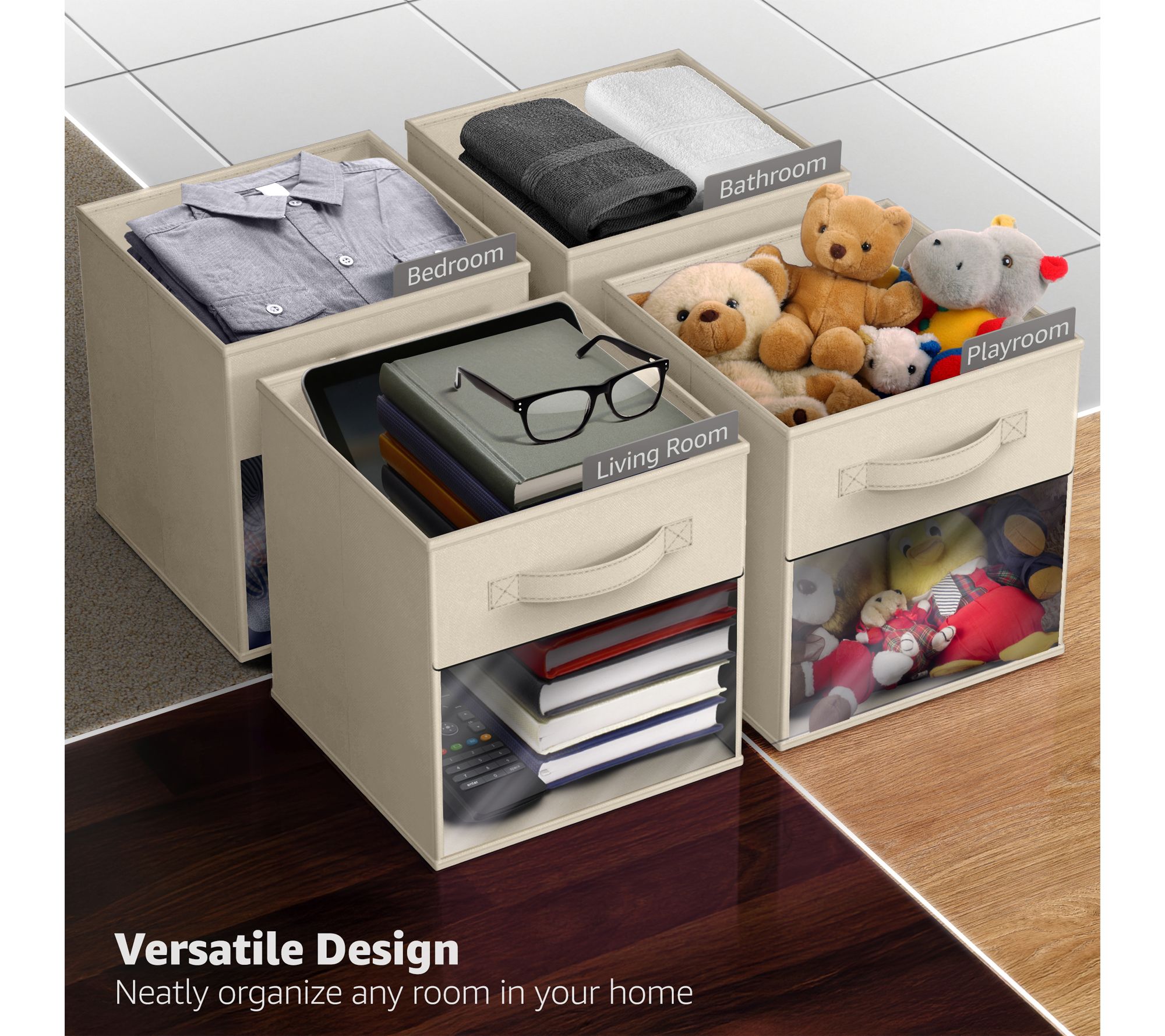 • Each bin fits most cube organizers and standard shelving units
