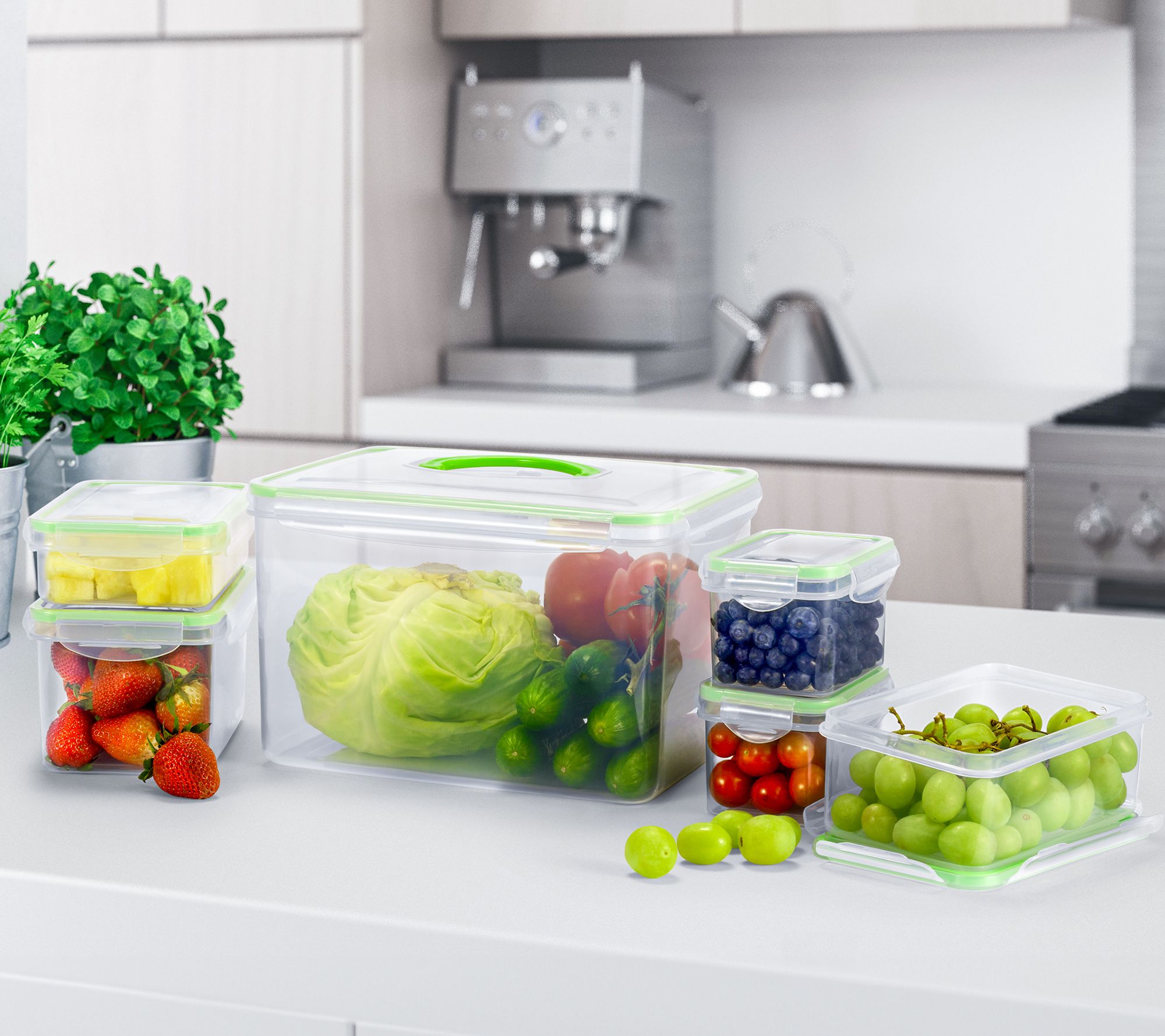 Keep your kitchen organized and clutter-free with the Sorbus 12-Piece Airtight Storage Containers with Snap-On Lids. These clear containers make it easy to see what's inside at a glance, while the snap-on lids create an airtight seal to keep your food fresh. The green handle on the extra-large container adds a stylish touch and makes carrying a breeze. From Sorbus.