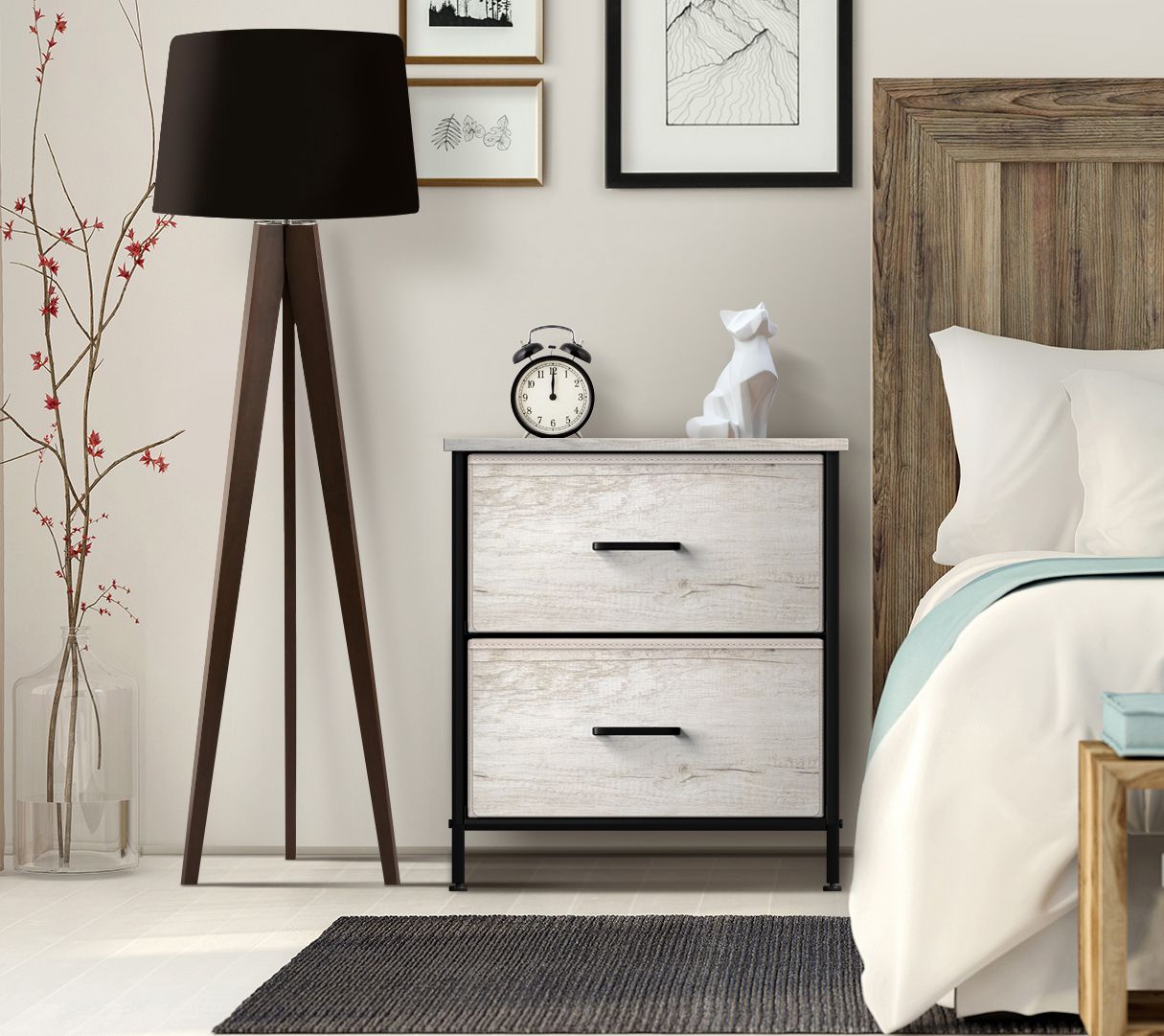 Keep your space organized with this sturdy dresser that doubles as a nightstand. It features two removable drawers with lightweight cloth interiors for easy opening and closing. From Sorbus.