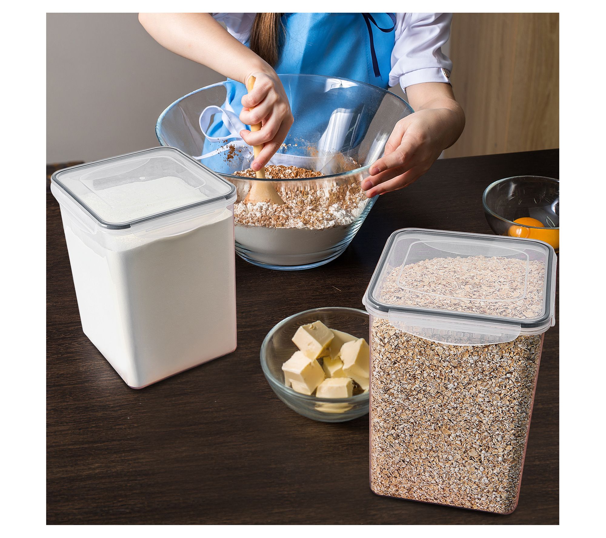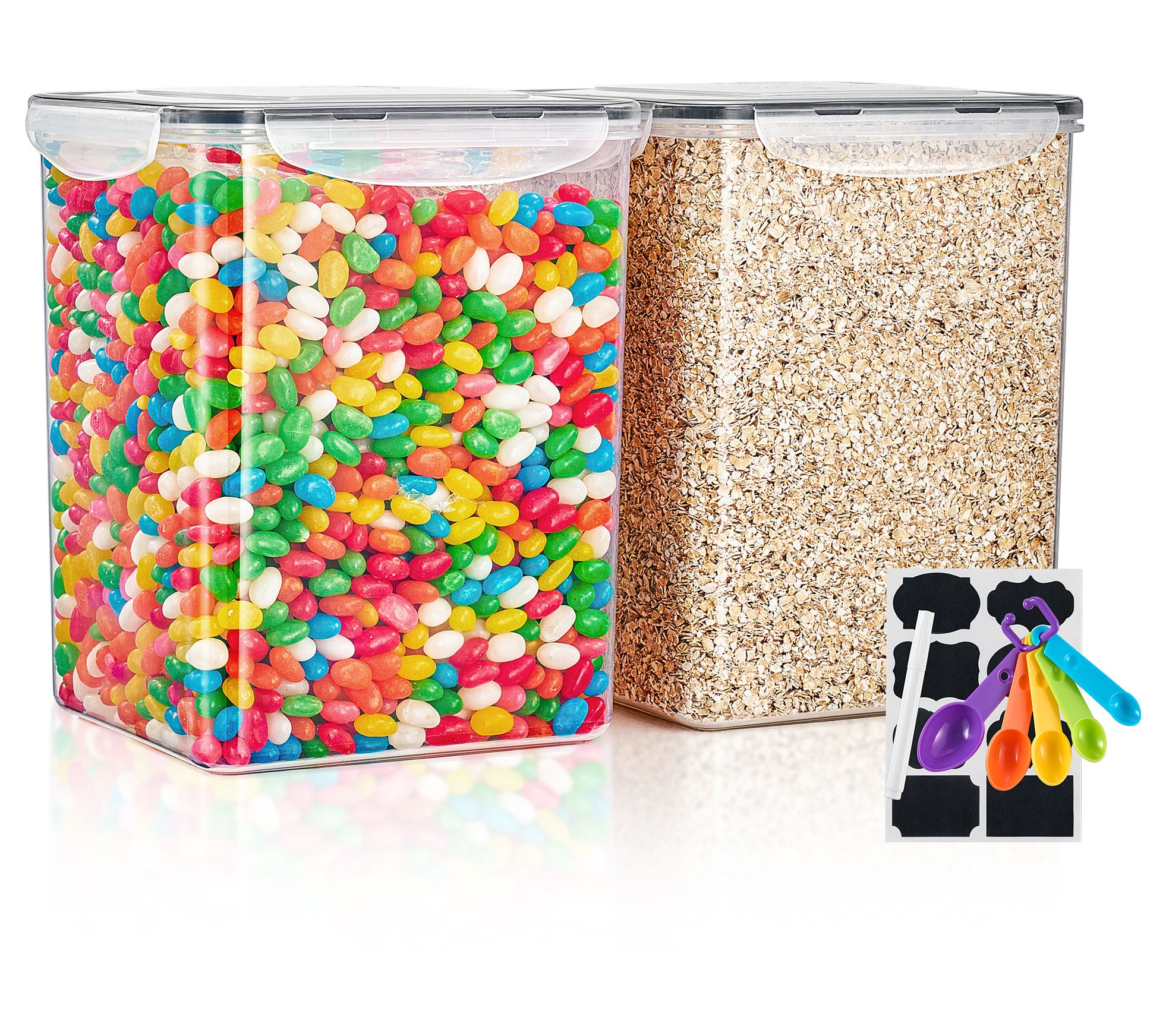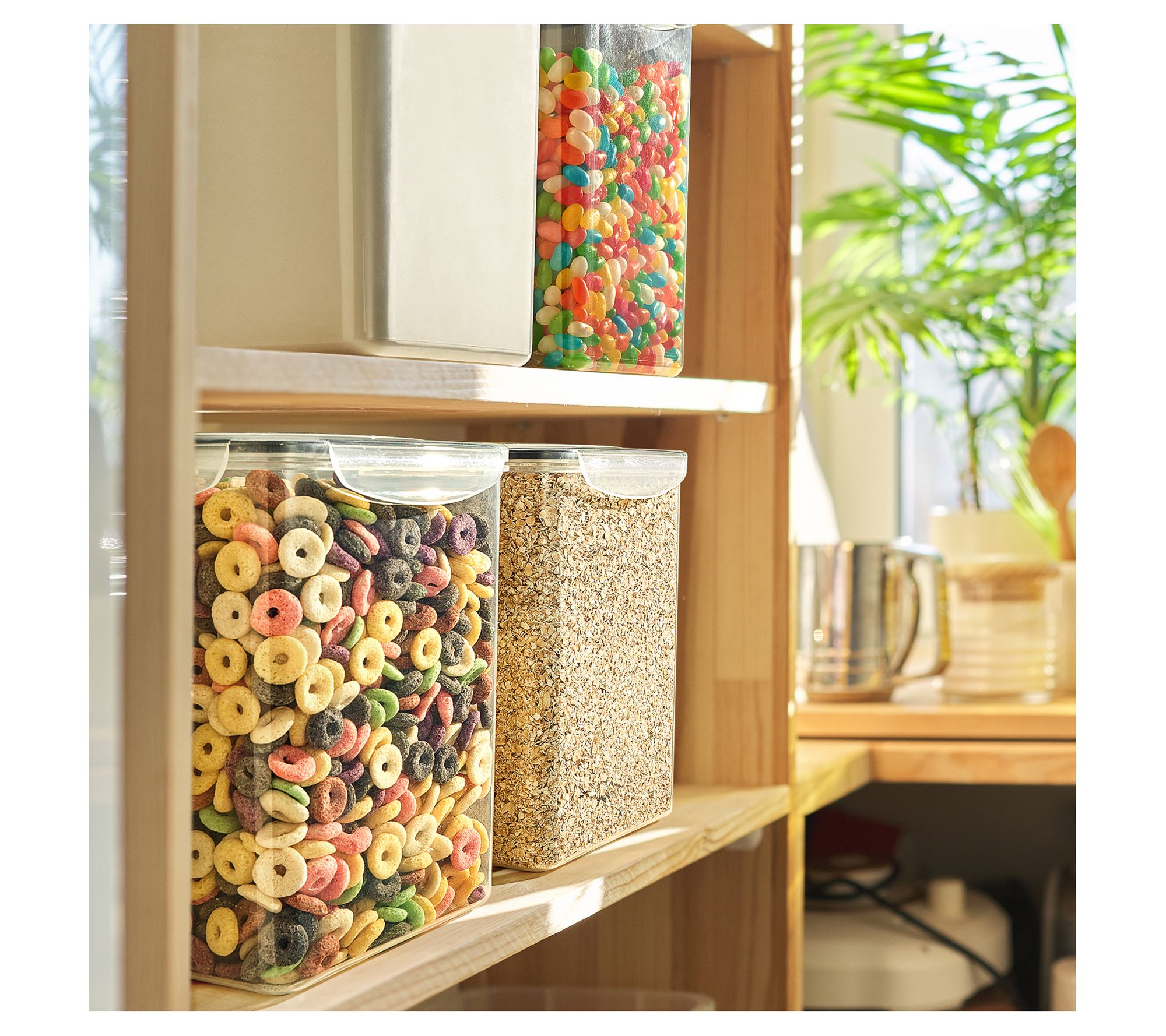 Keep your pantry organized with these food storage containers. These versatile containers are perfect for storing dry food items like flour, sugar, pasta, and more. The clear plastic design lets you see what's inside at a glance, while the four side-locking lids with silicone seals ensure freshness. From Sorbus.