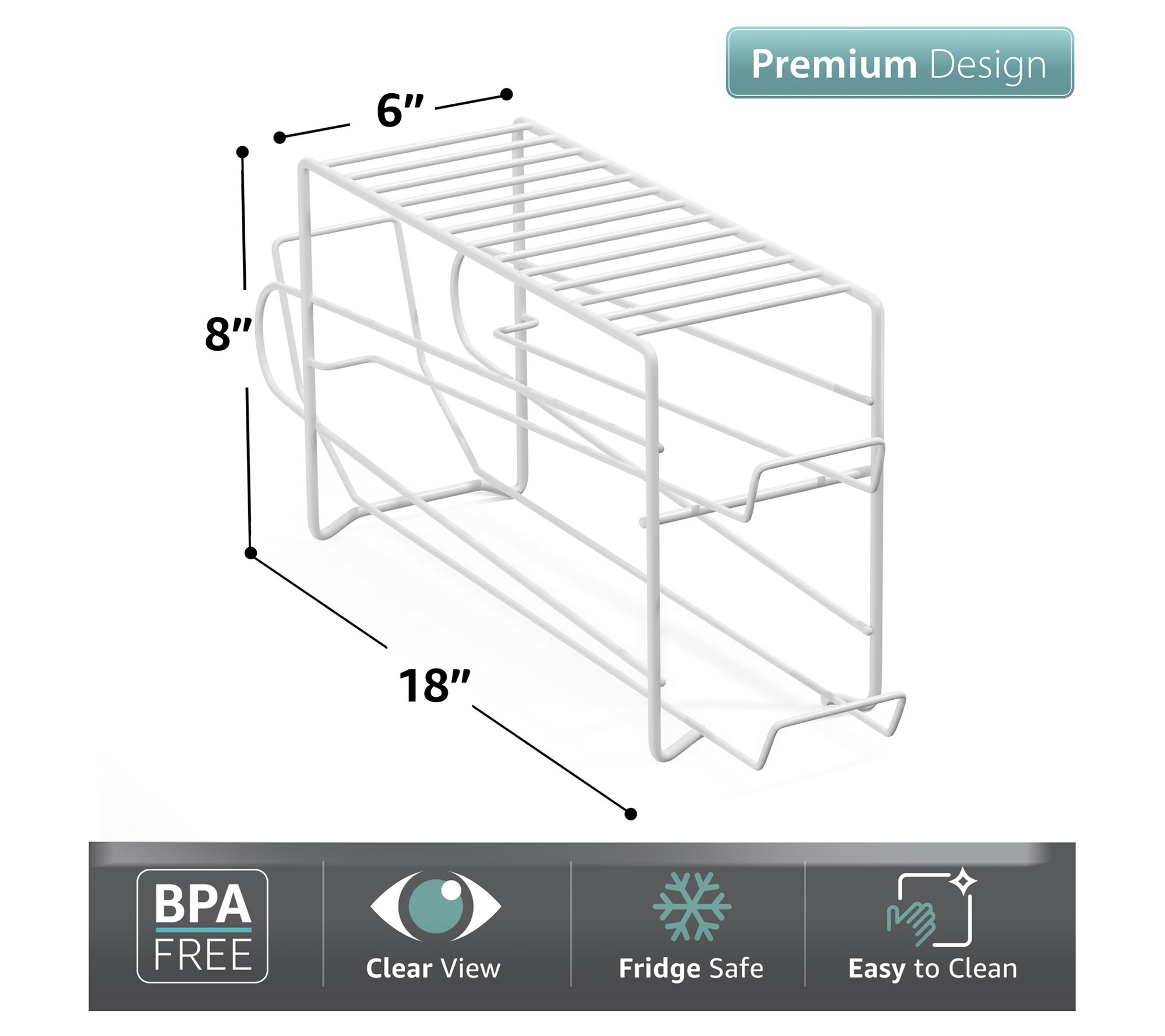 Organize your kitchen or pantry with ease using the Sorbus Fridge Can Dispenser. This sleek and efficient soda can rack holds up to 12 standard 12 oz soda cans per rack, providing easy access to your favorite beverages. The slim profile is designed to maximize storage space, and the convenient top shelf offers additional storage for small food cans or other items. From Sorbus.