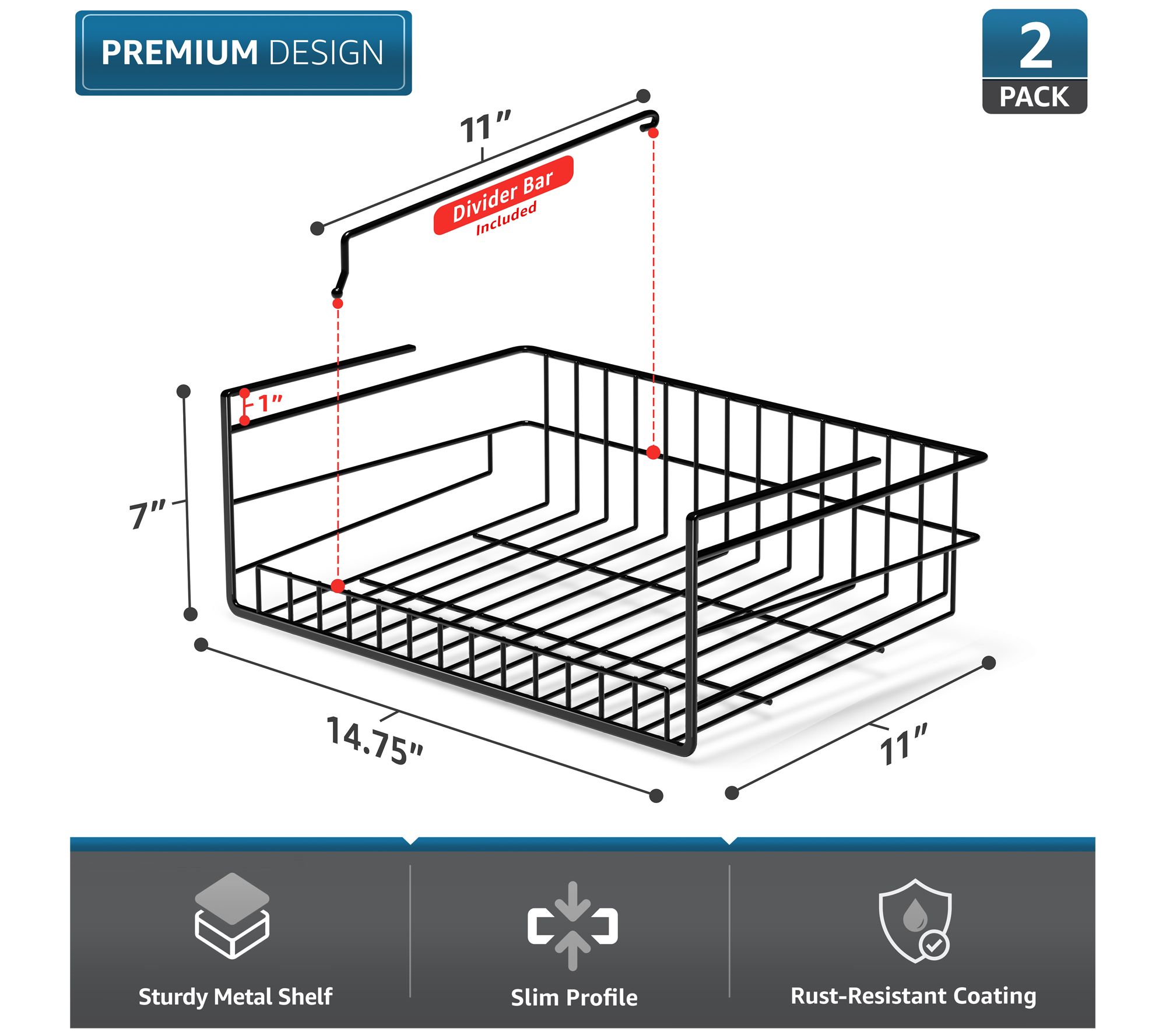 Sorbus 2-Pack Under Cabinet Can Storage Shelf with Dividers
