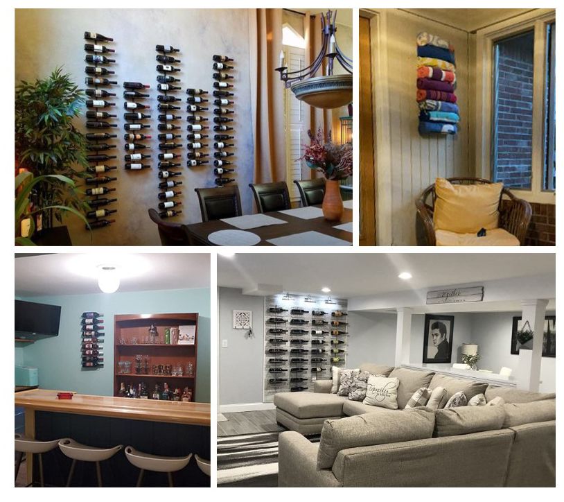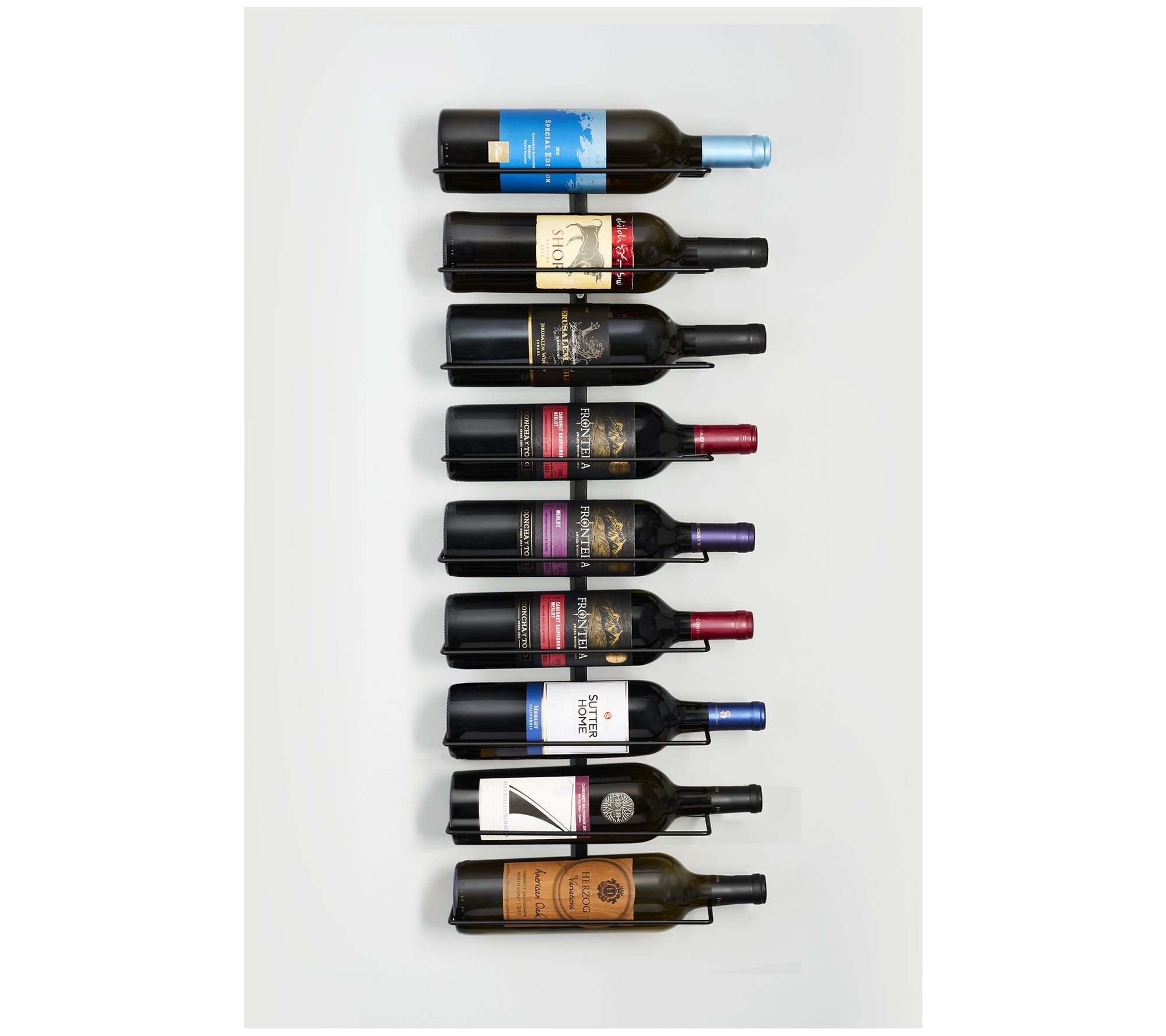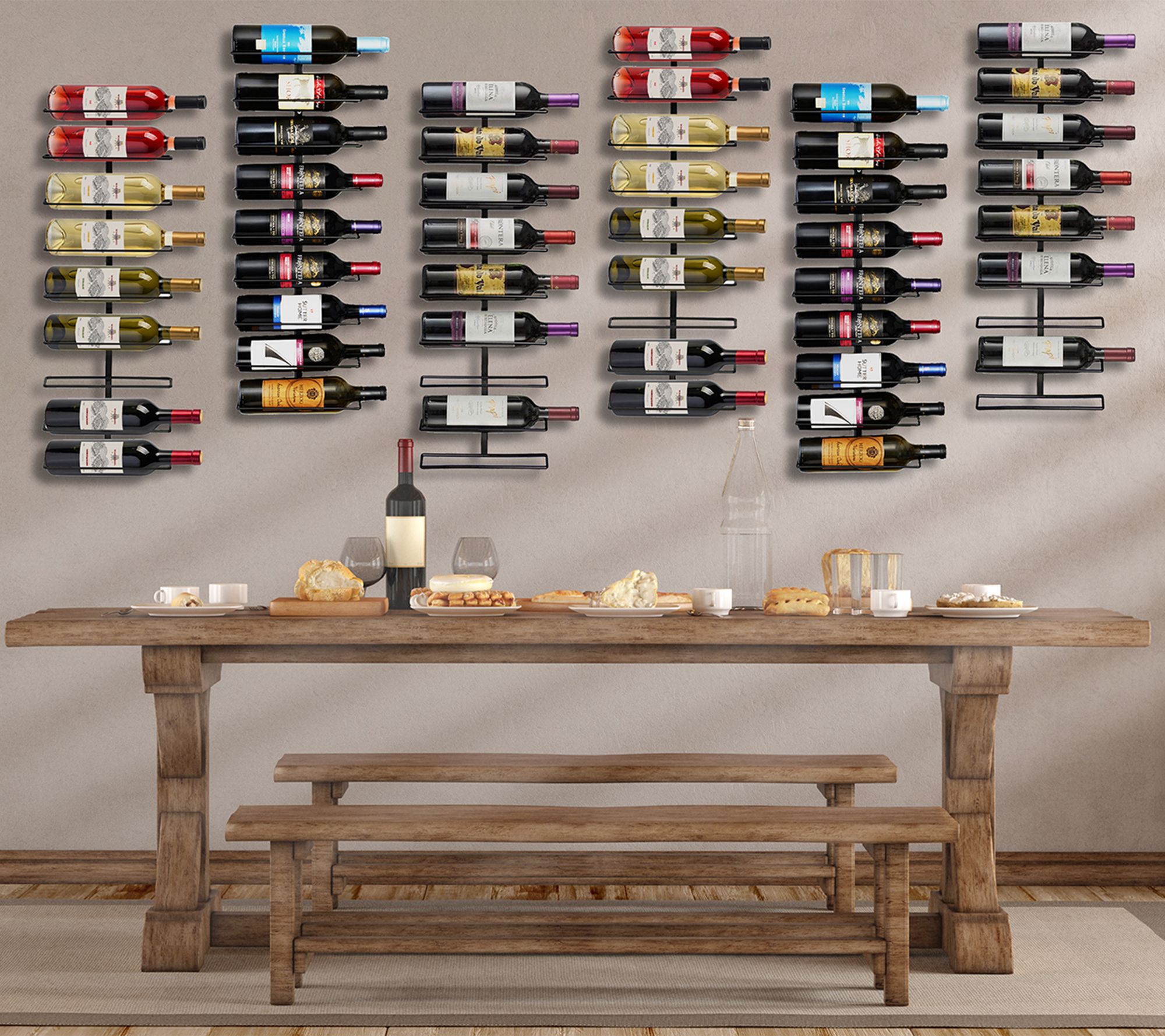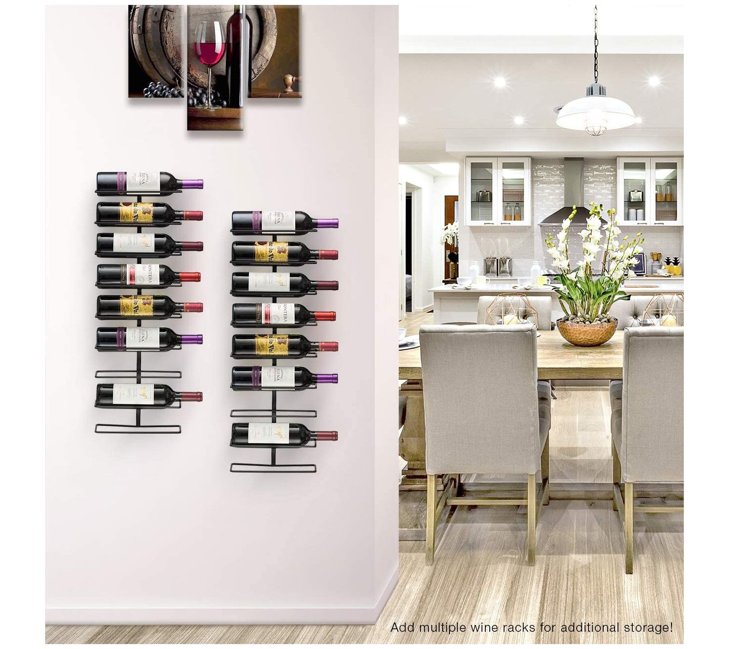 Transform your space into a stylish and functional wine display with this two-pack of wall mount wine racks. Designed to securely hold up to 18 bottles of your favorite vino, this set combines elegance with practicality, ensuring your collection is always within reach without taking up precious floor space. Its durable metal construction and sleek black finish complements any decor, making it an ideal addition for kitchens, dining rooms, or wine cellars. From Sorbus.