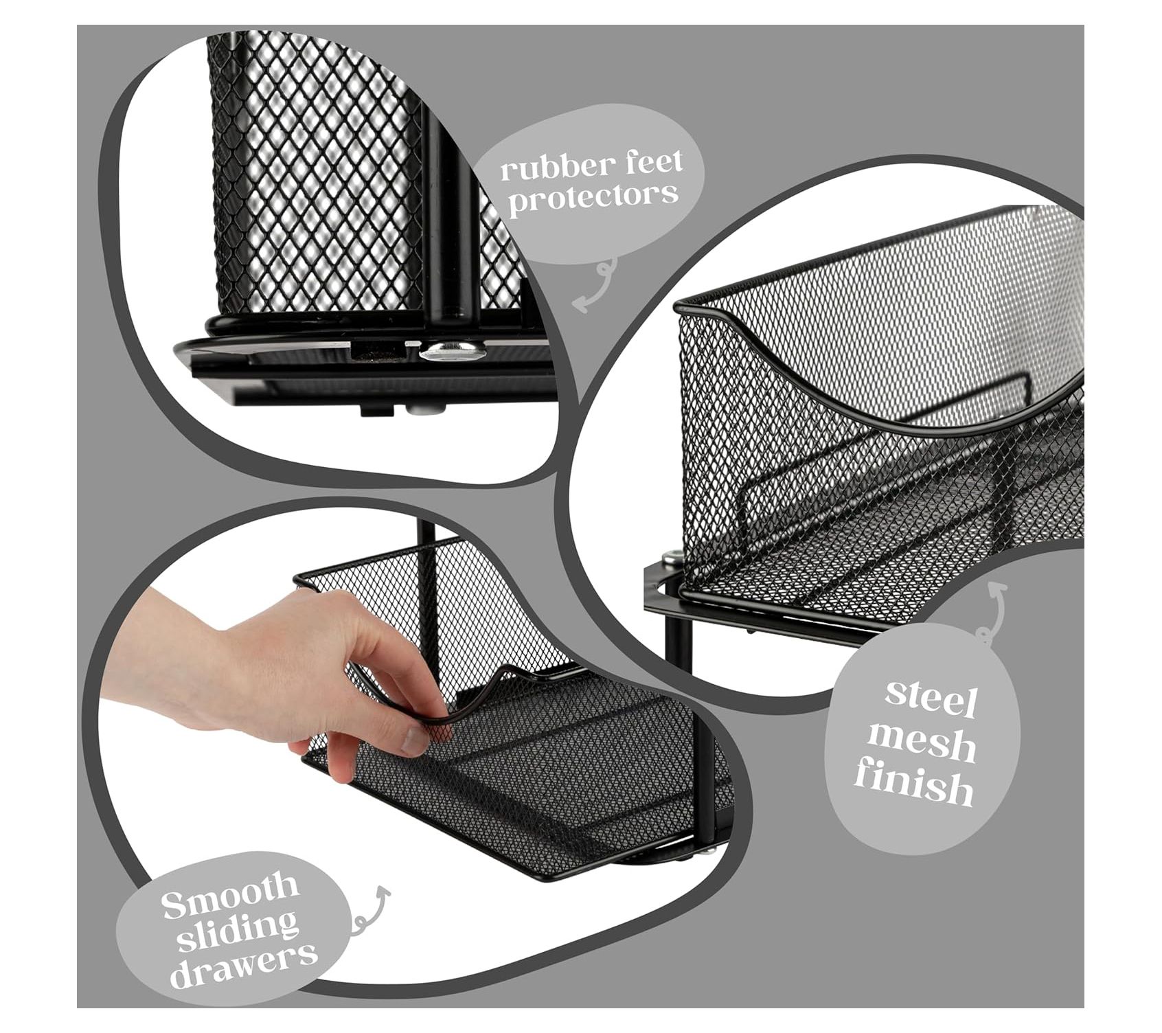• Includes two two-tier metal mesh sliding drawers and assembly instructions