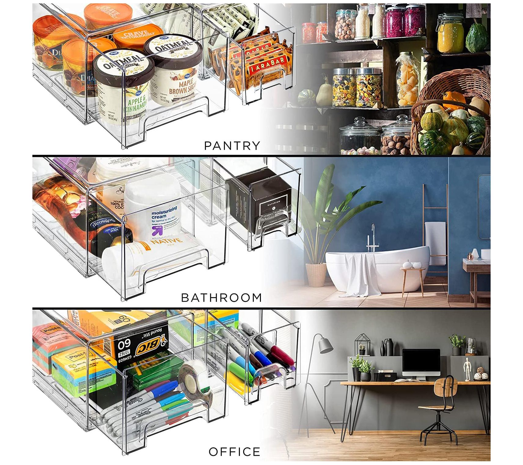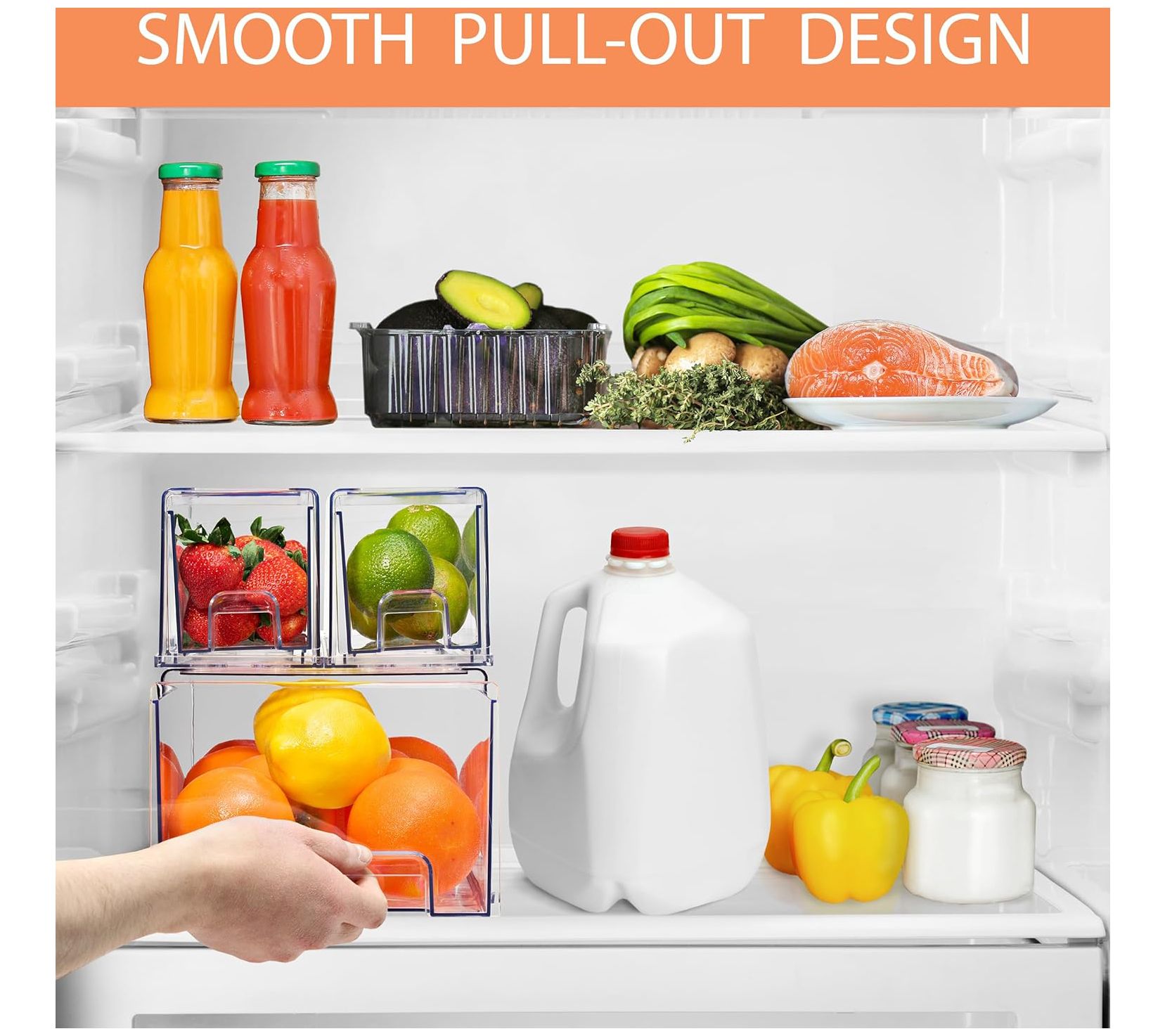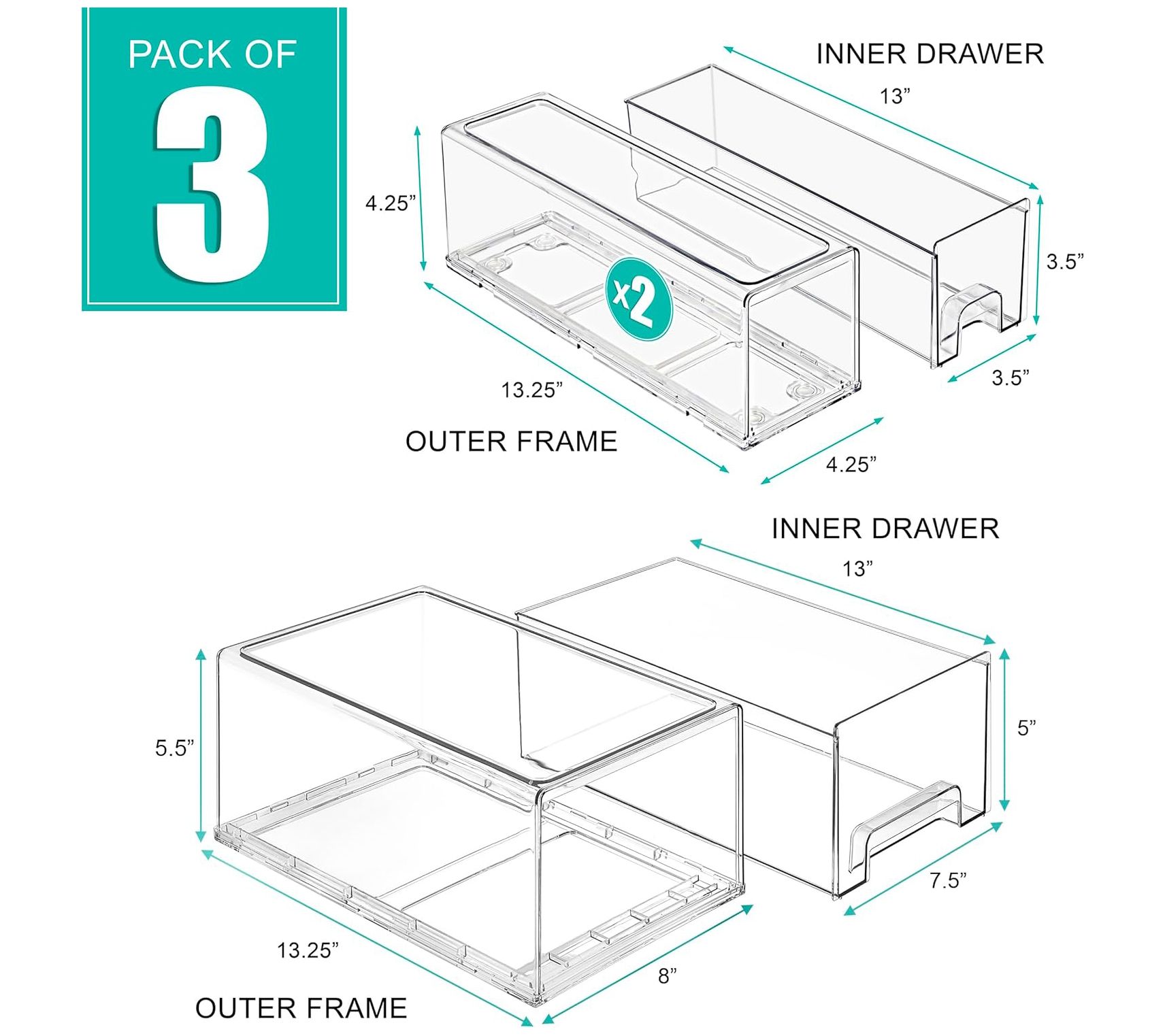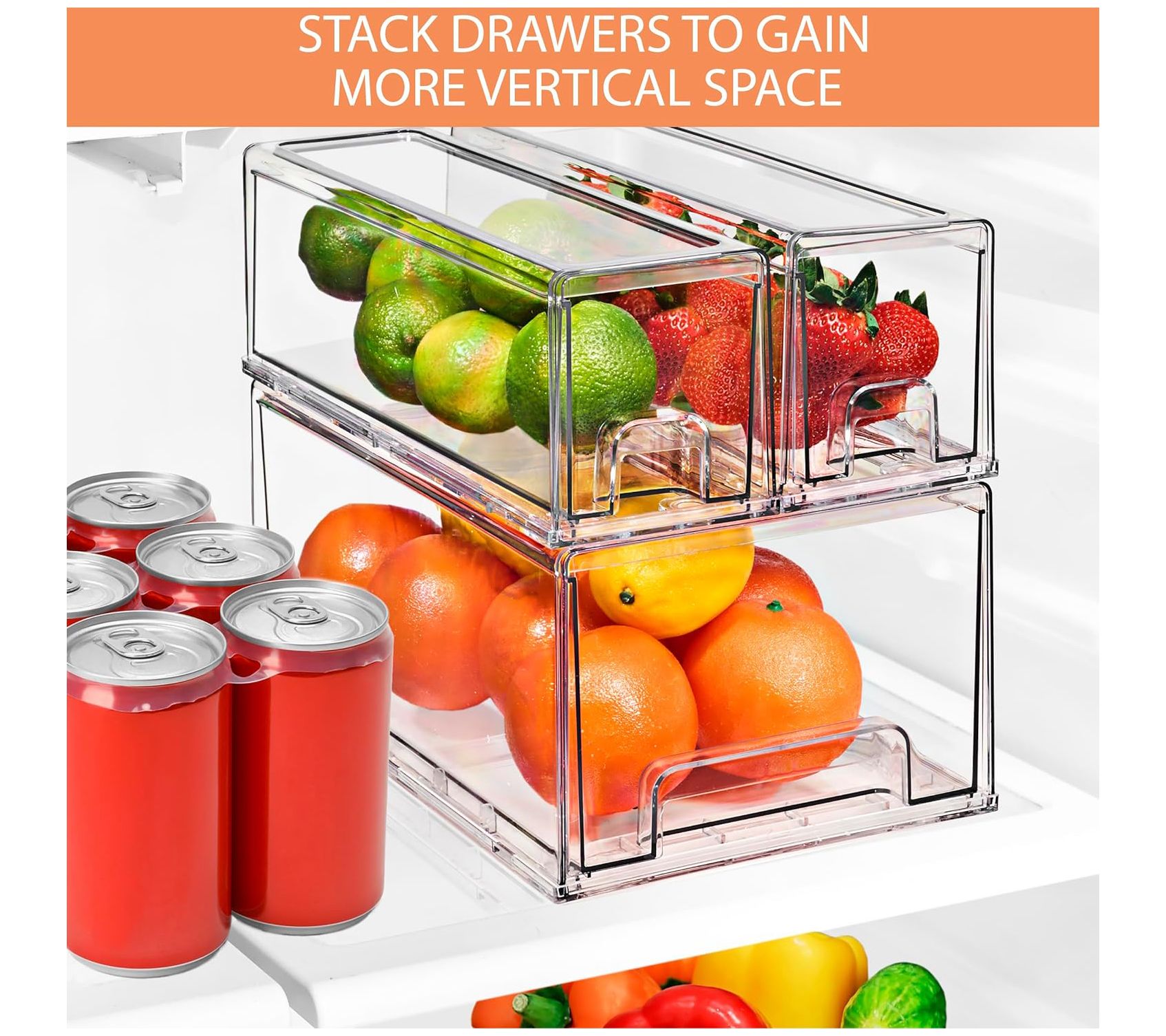 Maximize your refrigerator's efficiency with these fridge drawers designed to enhance storage and organization. This set includes one large and two small drawers, perfect for segregating fresh produce, deli meats, and more. Their clear plastic construction not only simplifies visibility but also ensures durability and ease of maintenance. From Sorbus.