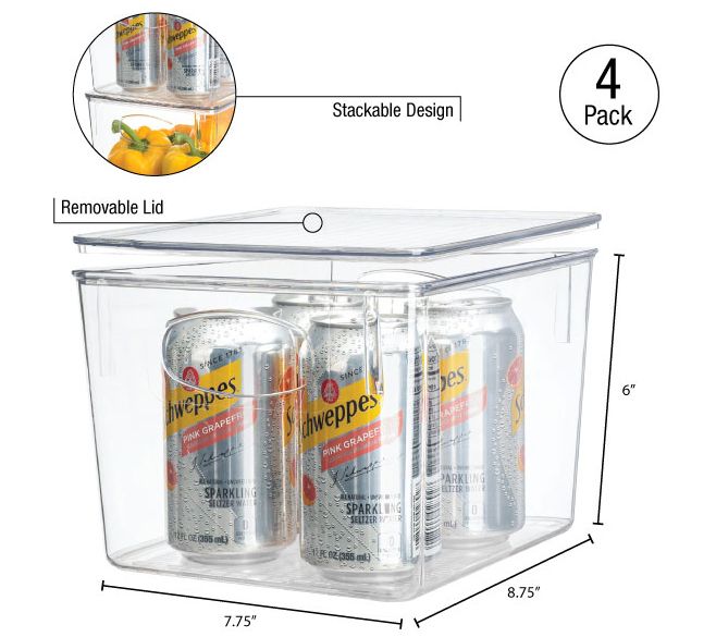 Sorbus 4 Pack Clear Fridge Bins With Handle and Lid