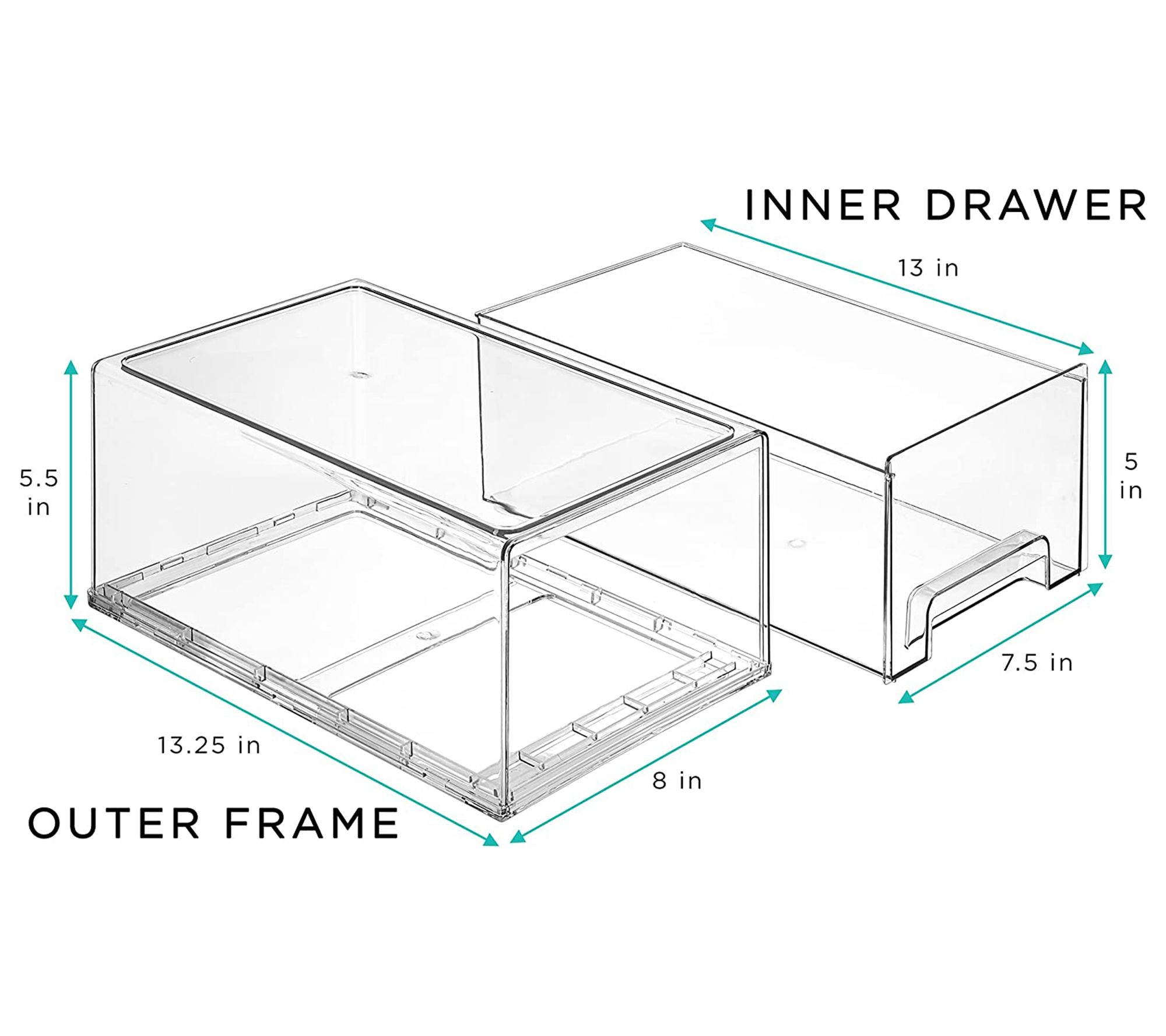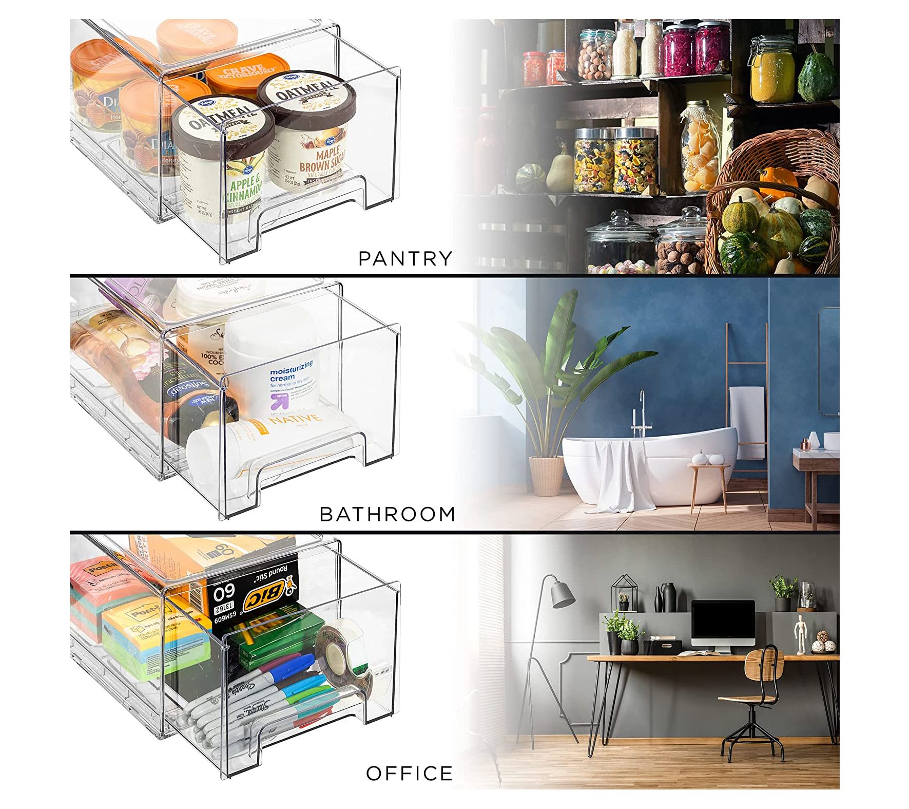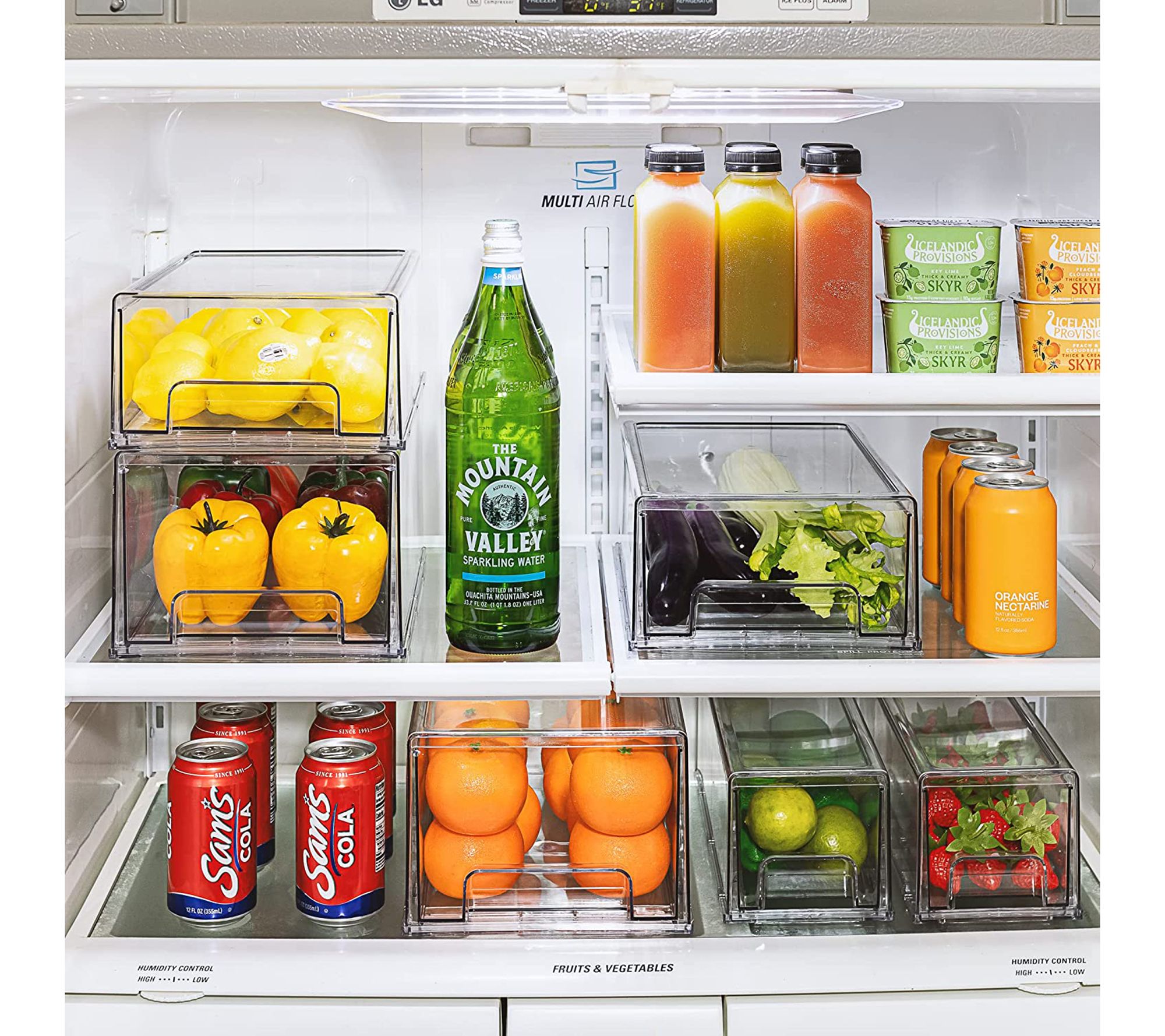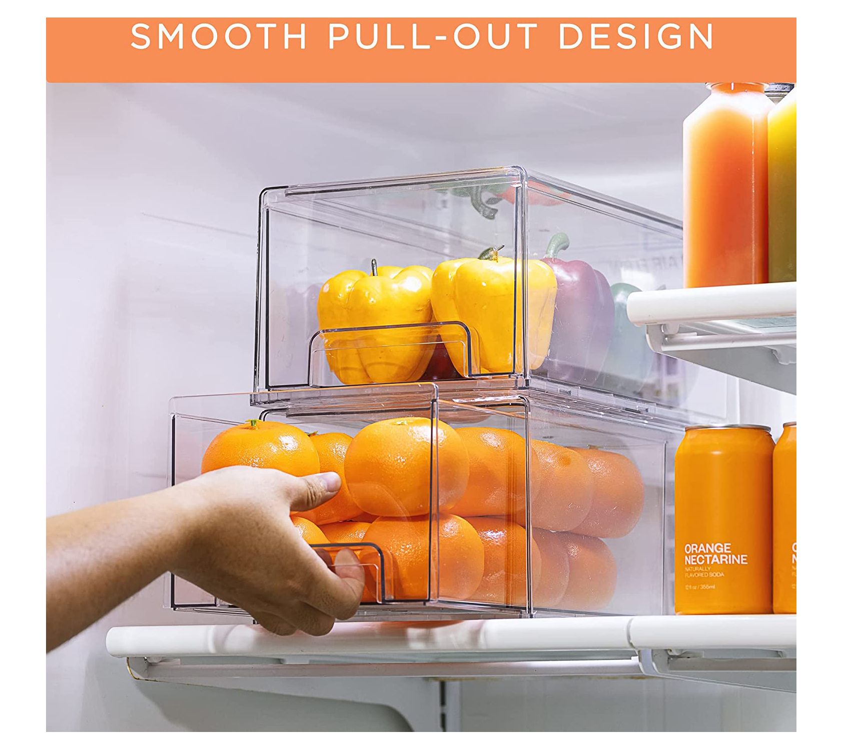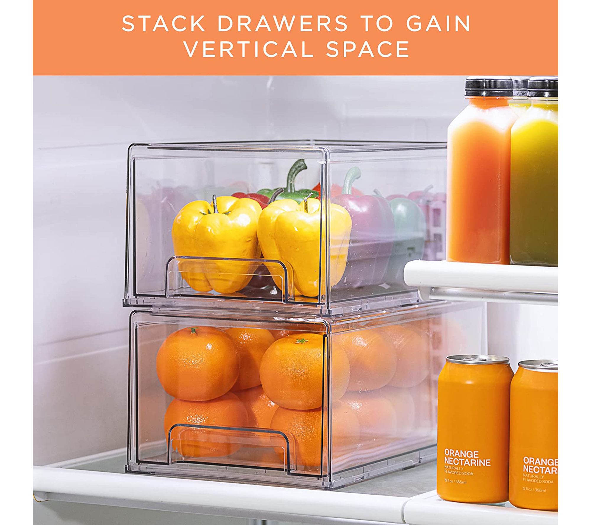 Breeze through busy mornings or meal prep with these clear pull-out drawers, making it simple to spot favorite snacks or ingredients without any fuss. Slide one out, grab what you need, and keep things tidy in both family fridges and bustling break rooms. Stacking them maximizes your shelf space to keep everything organized and within view. From Sorbus.