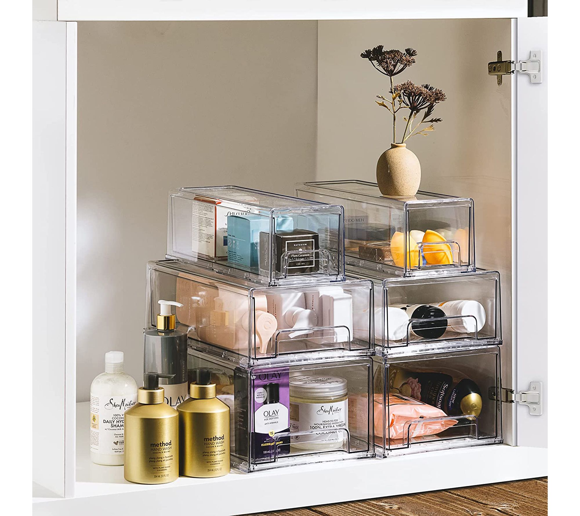 Sorbus 4-Pack Large Clear Plastic Pull Out Drawer Organizers