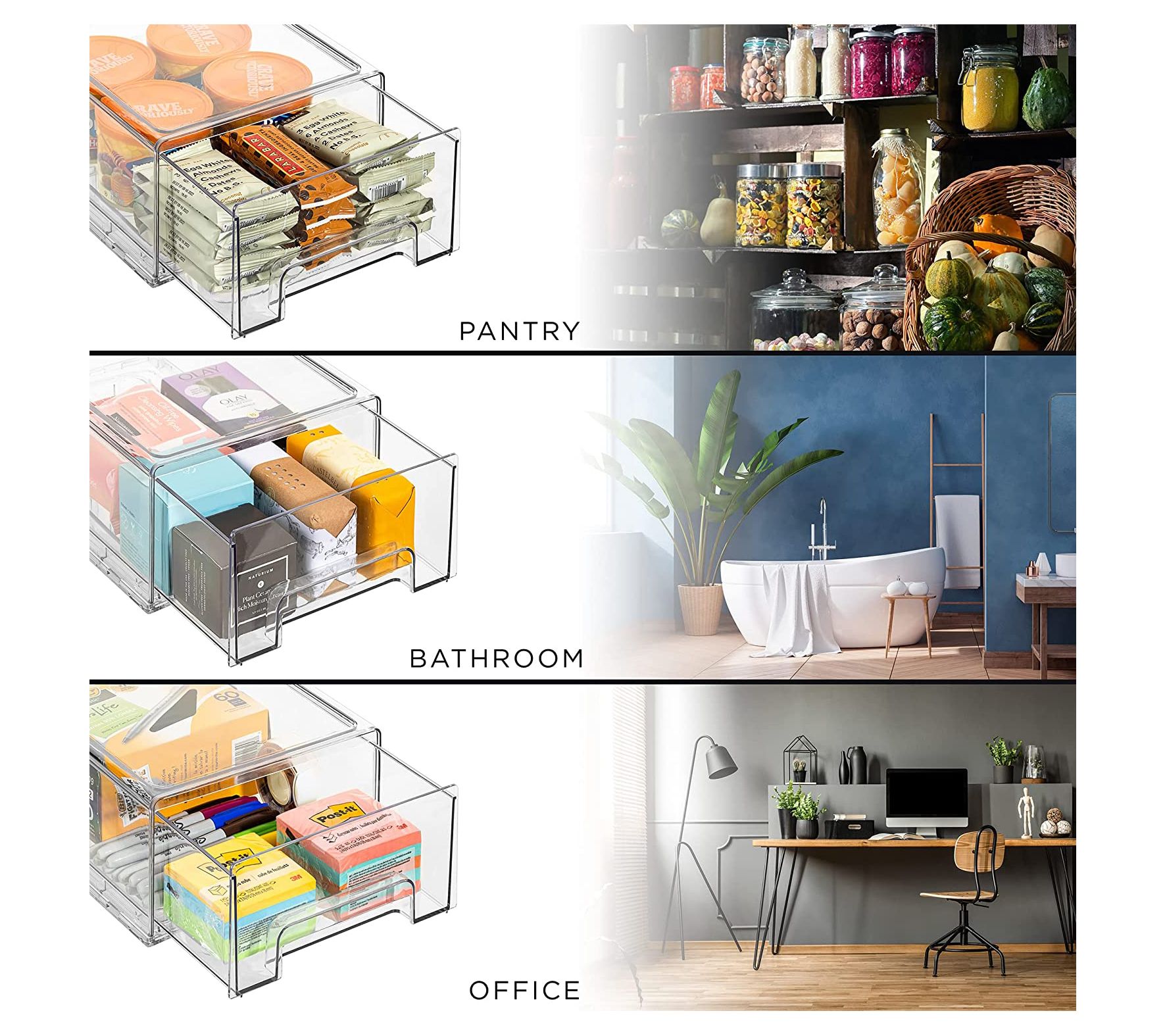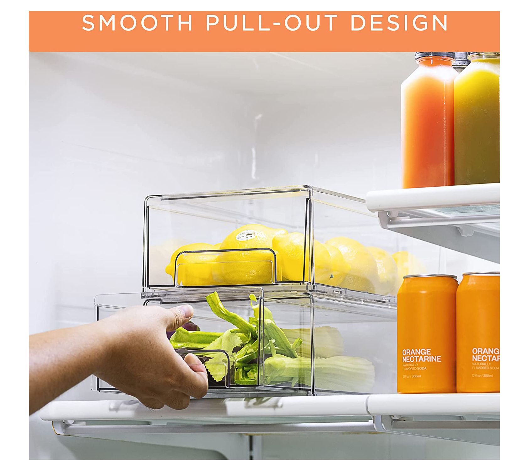 Keeping the kitchen tidy just got easier when you can pull out exactly what you need, whether you're prepping snacks or dinner ingredients. Seamlessly transition from grocery restocking to meal planning with these clear organizers that stack for flexible storage. Reach for everyday items in seconds or give your fridge a fresh look without any hassle. From Sorbus.