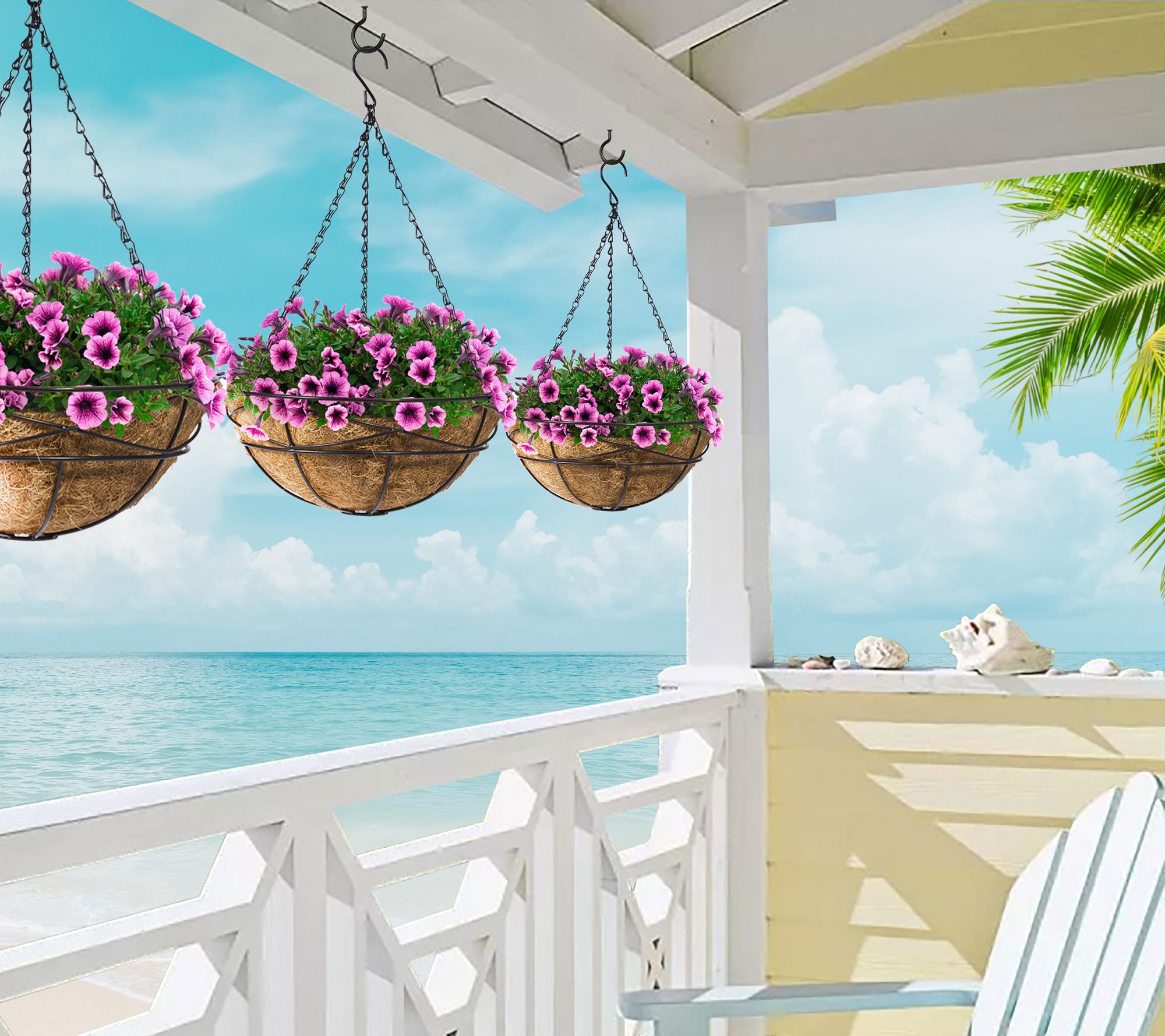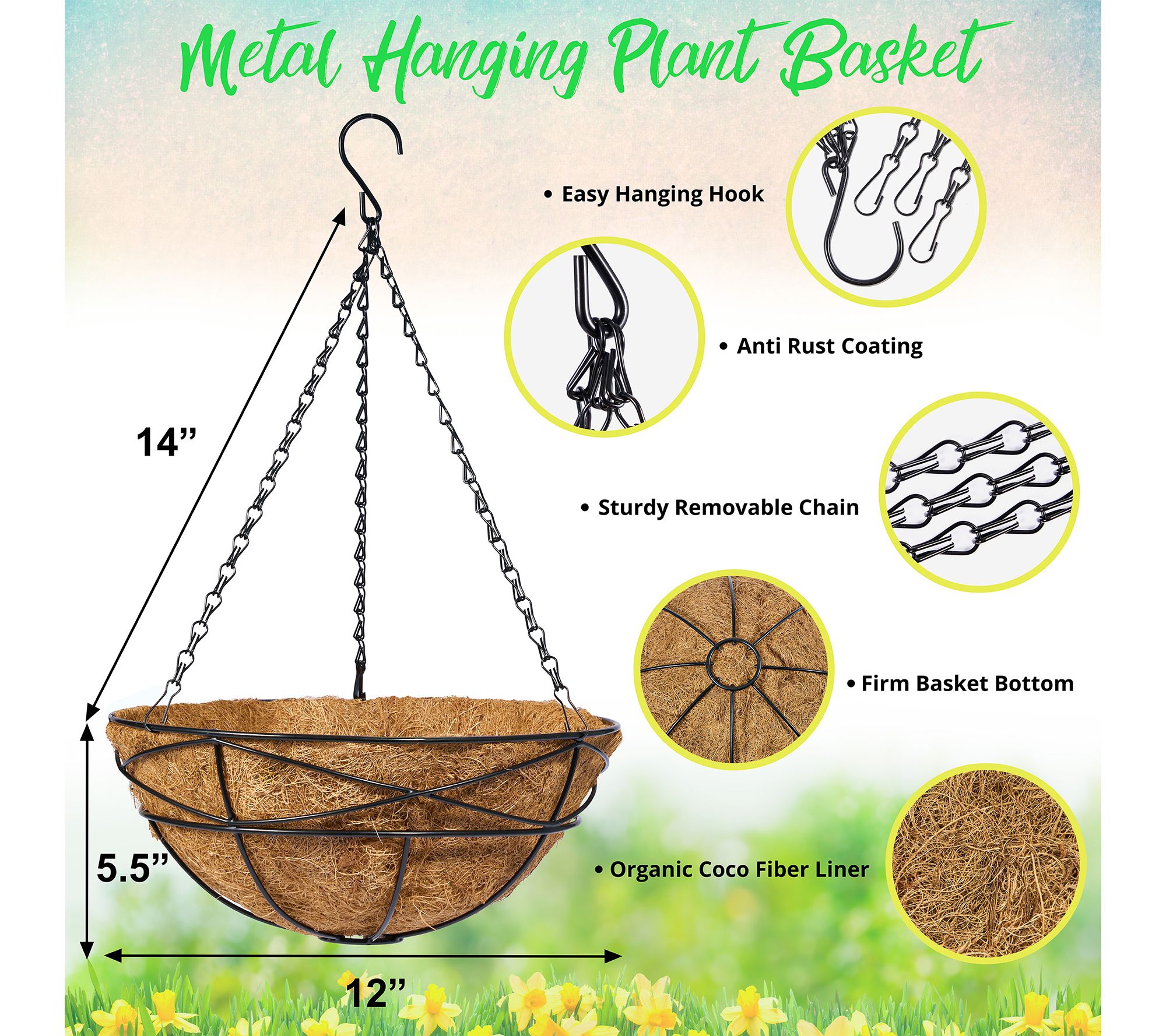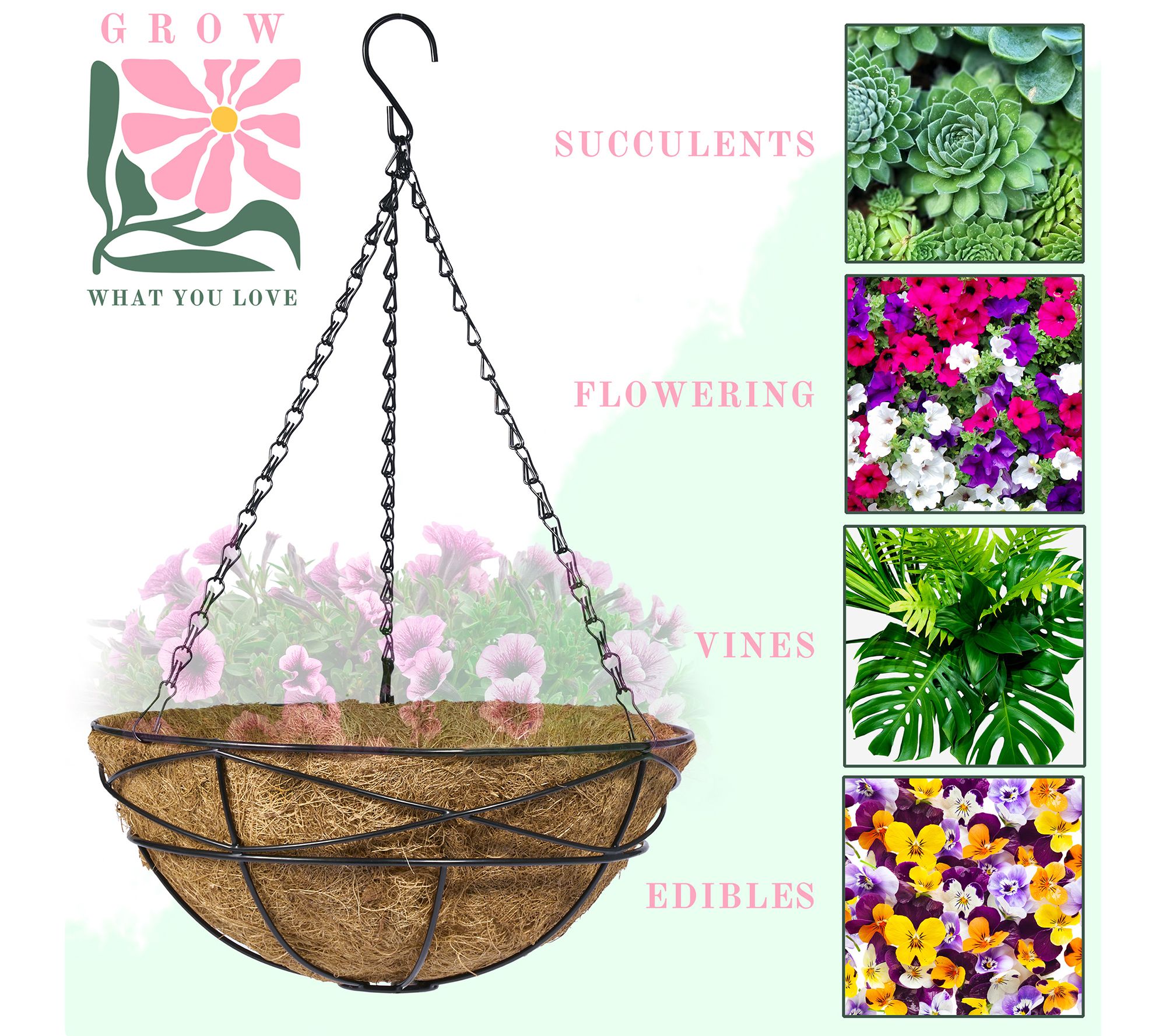 • Includes four hanging baskets, four hanging hooks, and four chains