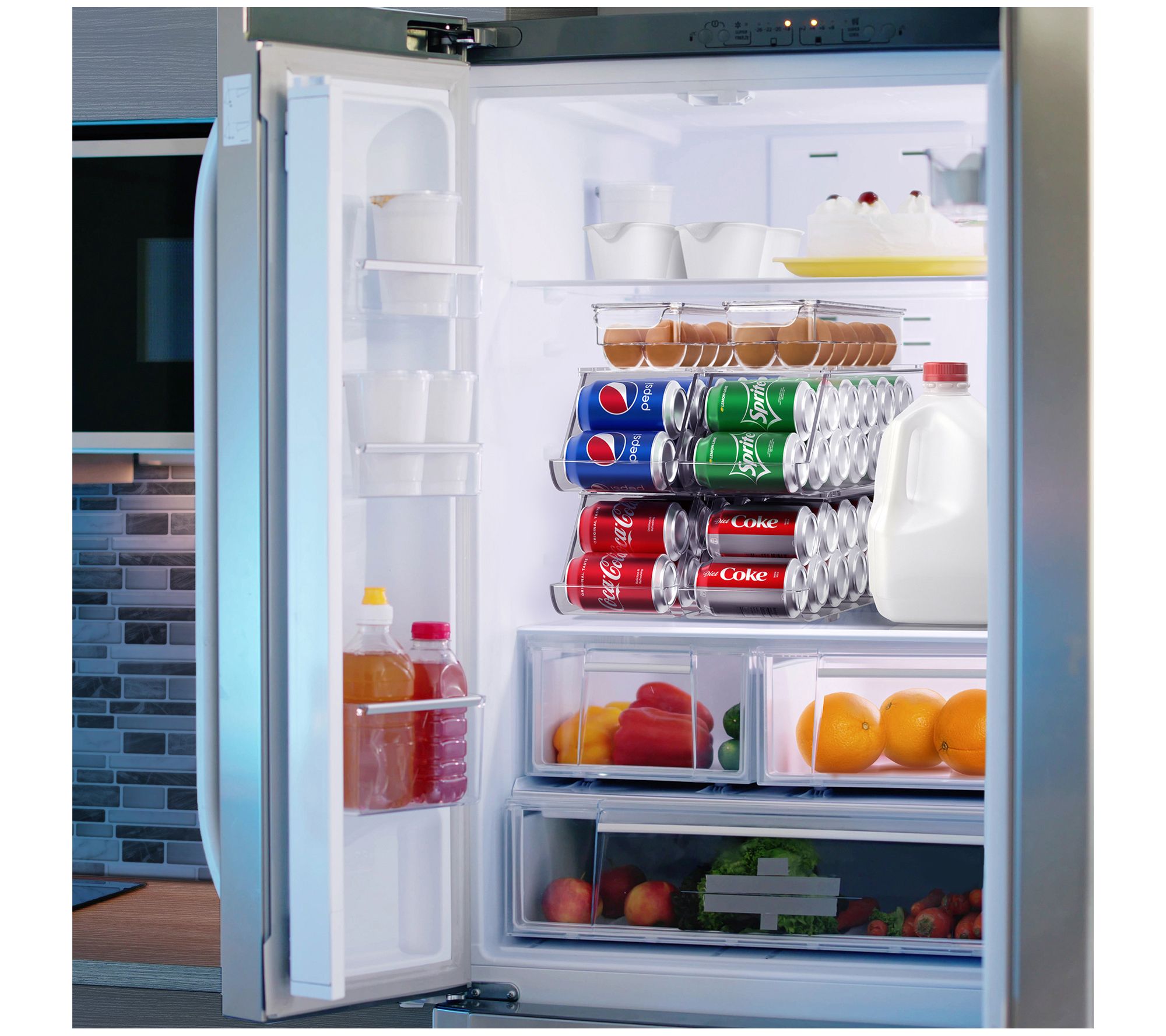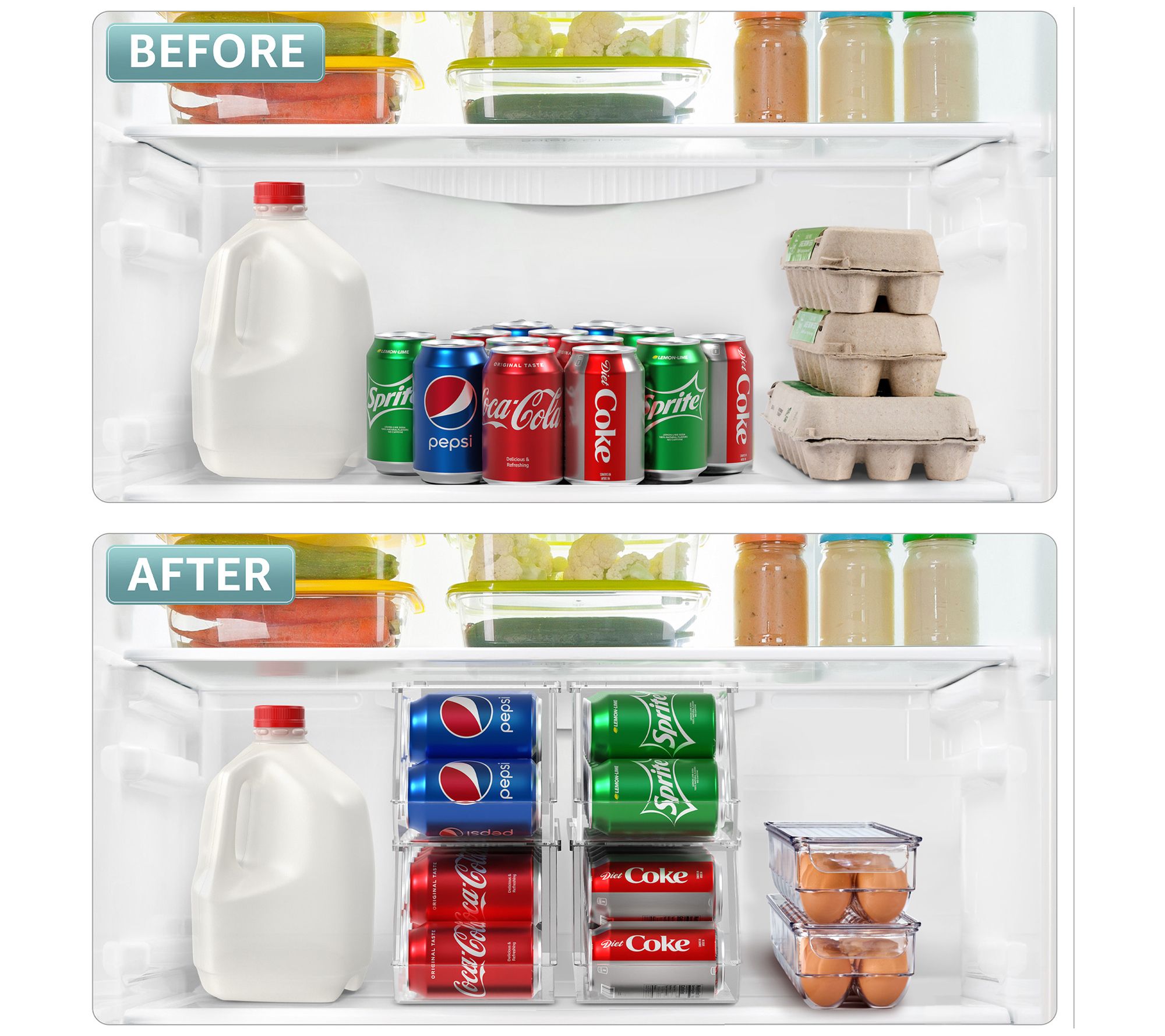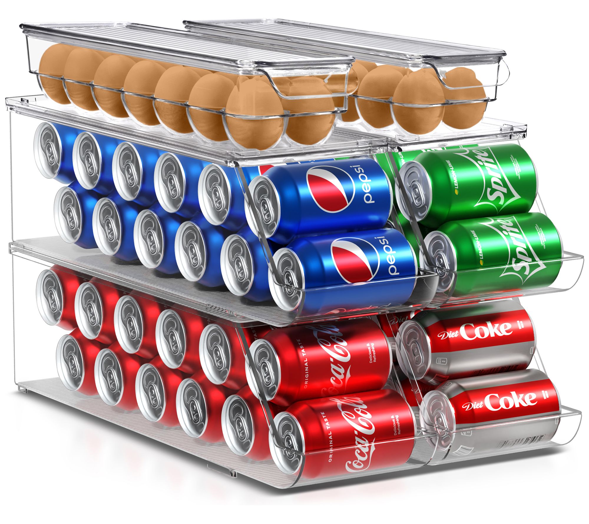 Transform your refrigerator's organization with the Sorbus 4 Stackable Can Holder and 2 Egg Holders with Lid. This innovative set not only streamlines your fridge space but also adds a touch of style. The can dispenser effortlessly arranges your drinks, ensuring they're always within reach, while the egg holders safely cradle up to 24 eggs, keeping them intact and accessible. Crafted from durable materials, this set is a practical addition to any kitchen, making it easier to find what you need without the clutter. From Sorbus.